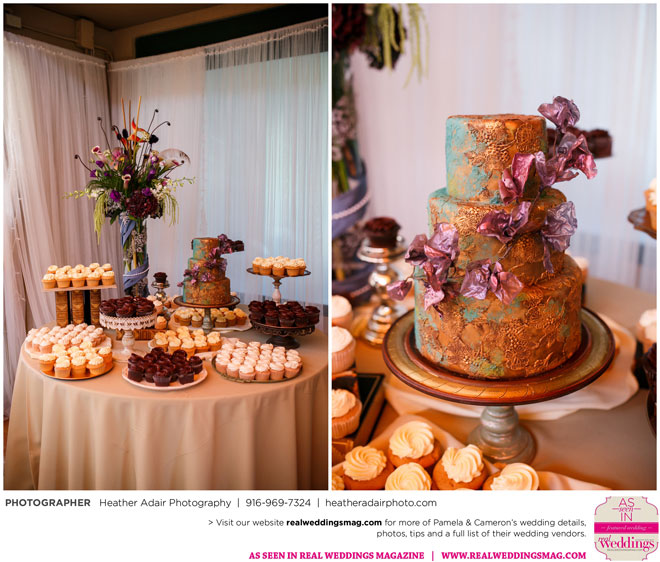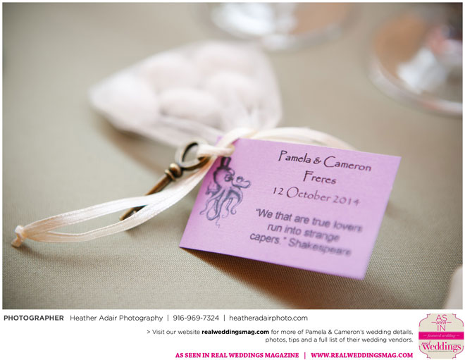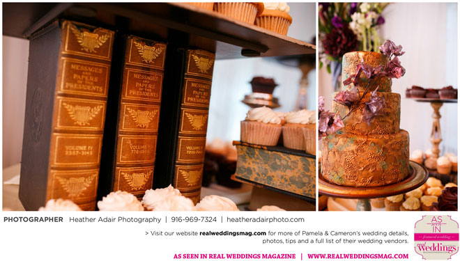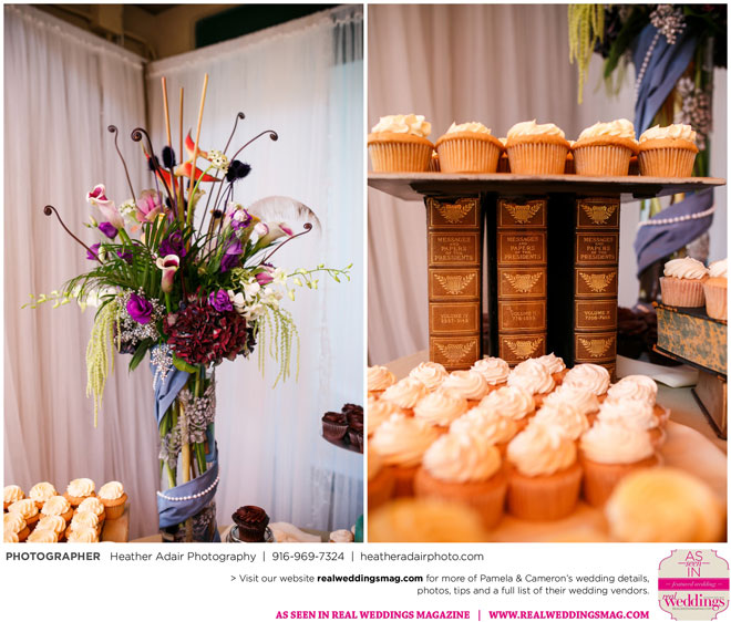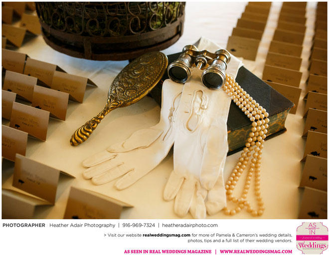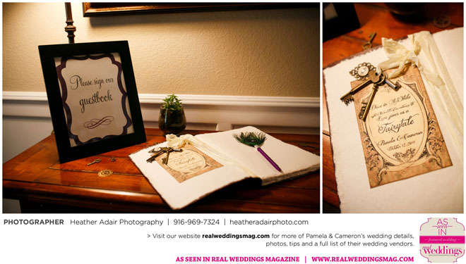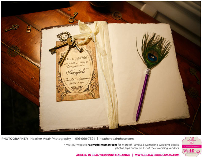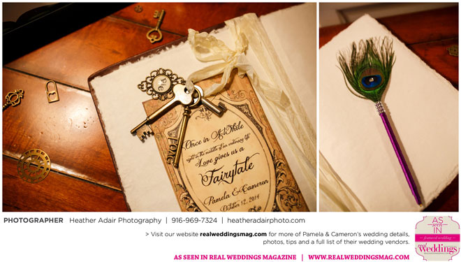 And since their theme was so visual, the couple encouraged guests to dress up as well. “Pamela had the great idea to ask people to come in costumes to help engage them,” Cameron says. “I was more hesitant, but we put that out there in the invitation and people started calling us and our families up to find out how to make costumes for themselves. It was amazing to see how excited people got with wanting to get dressed up!”