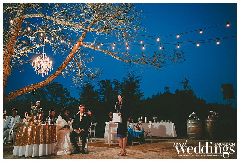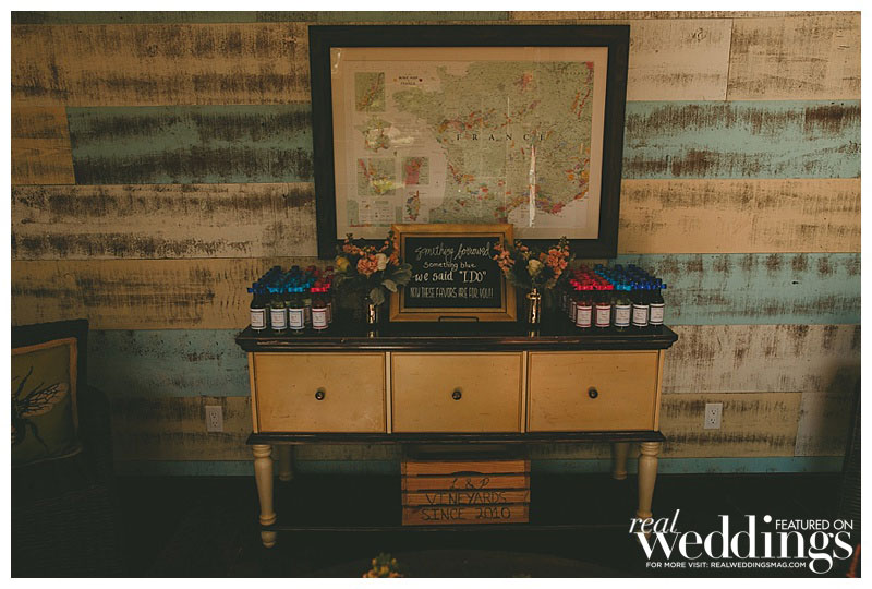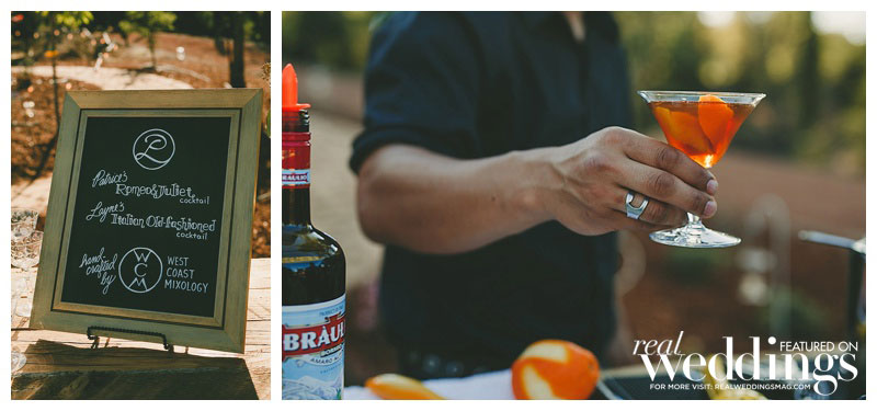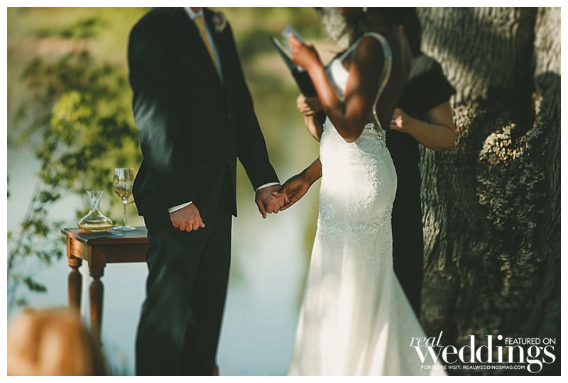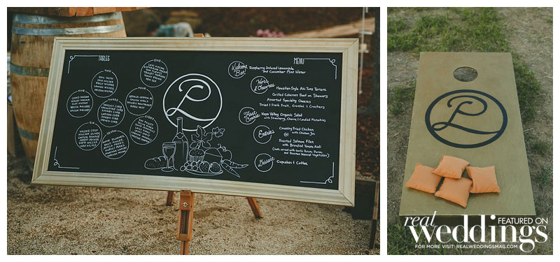 When it came to the wedding theme, says Patrice, “we wanted a casual yet elegant feel—something that took advantage of the beautiful outdoors and elements of our love of travel.” So, in addition to having the save-the-date cards made from branches, and featuring cornhole games on the lawn at the reception, these two chose a simple, rustic spot to exchange their vows—under a blue oak tree on the private vineyard’s grounds. Of the ceremony, Layne says “my favorite part was that it was short and sweet!”