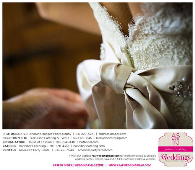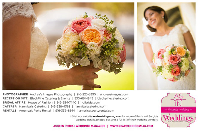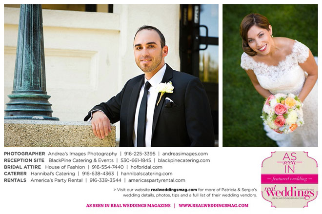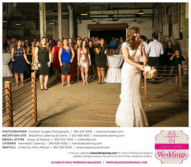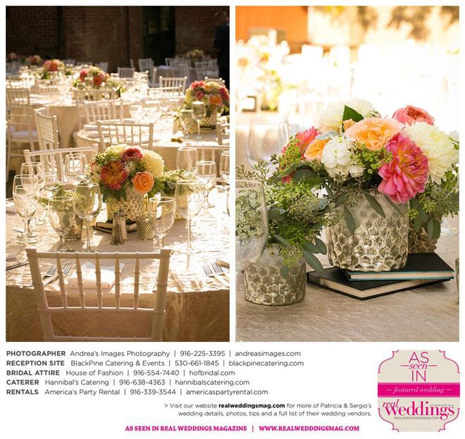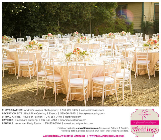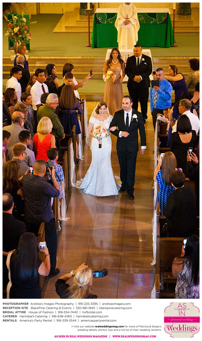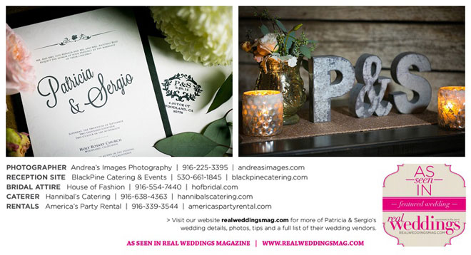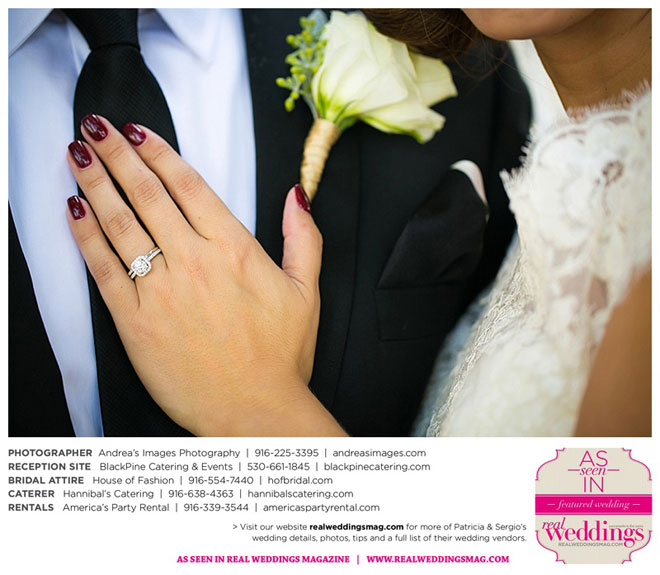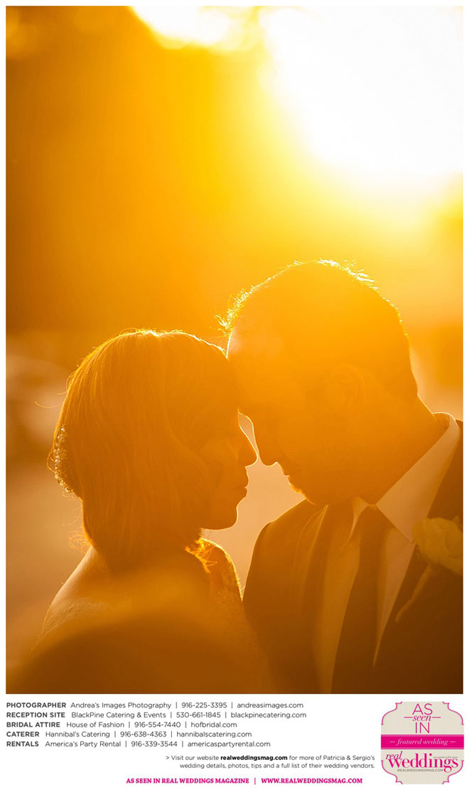 The wedding was held at the Holy Rosary Catholic Church in Woodland—the same place Patricia’s parents were married 47 years ago. A bilingual ceremony allowed them to celebrate their mutual heritage as second generation Mexican Americans. Patricia’s most special moments were when her father became touchingly emotional as he handed her off to Sergio, and when Sergio passed on traditional wedding coins (arras de boda) during the ceremony that Patricia’s mother had handed down to them, symbolizing commitment, confidence and trust.