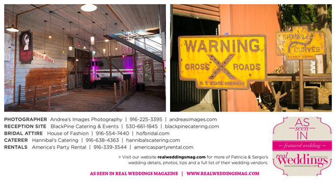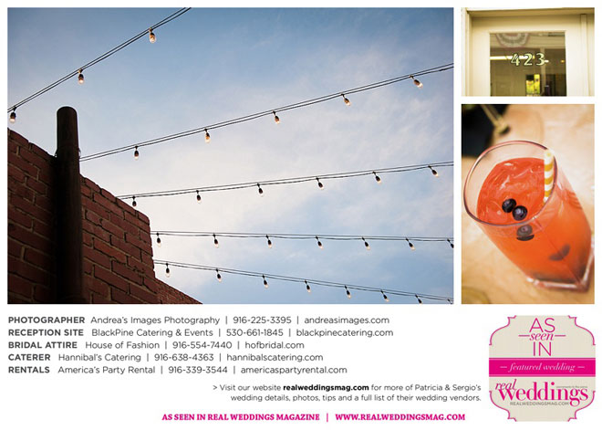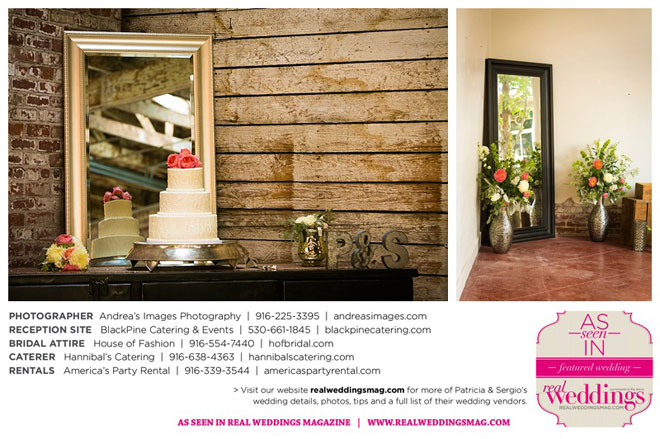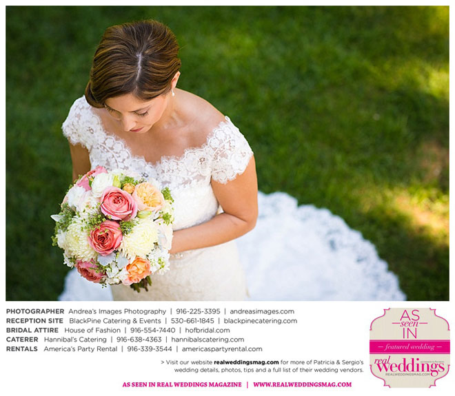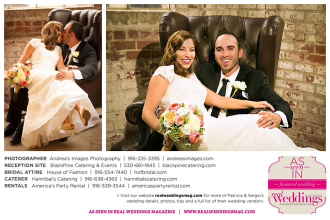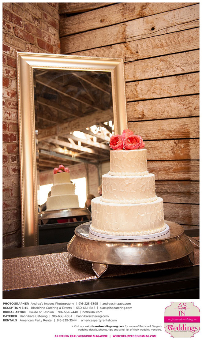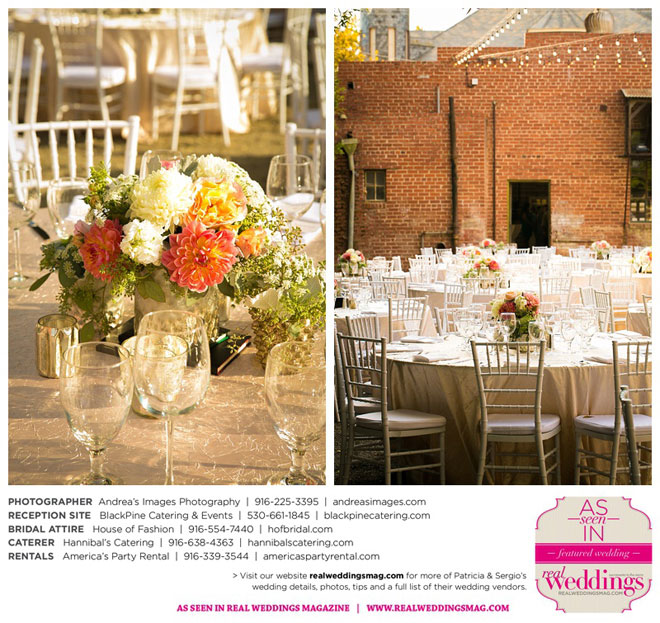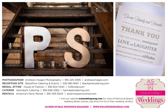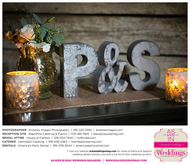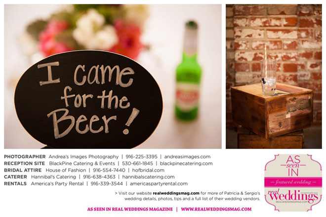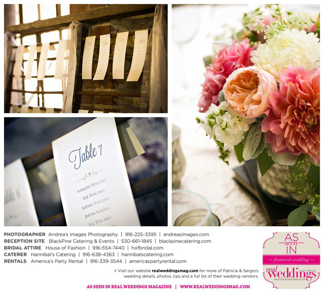 The wedding was held at the Holy Rosary Catholic Church in Woodland—the same place Patricia’s parents were married 47 years ago. A bilingual ceremony allowed them to celebrate their mutual heritage as second generation Mexican Americans. Patricia’s most special moments were when her father became touchingly emotional as he handed her off to Sergio, and when Sergio passed on traditional wedding coins (arras de boda) during the ceremony that Patricia’s mother had handed down to them, symbolizing commitment, confidence and trust.