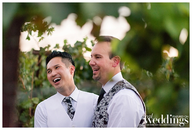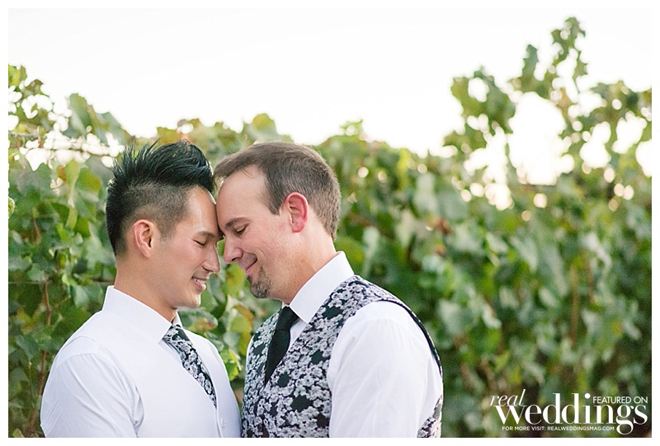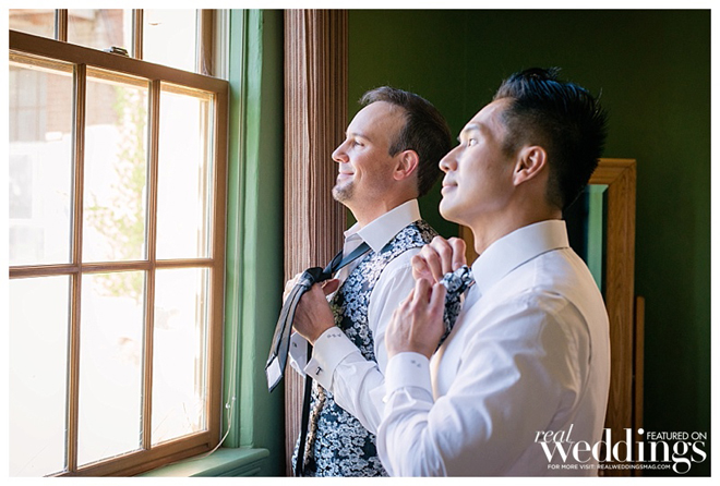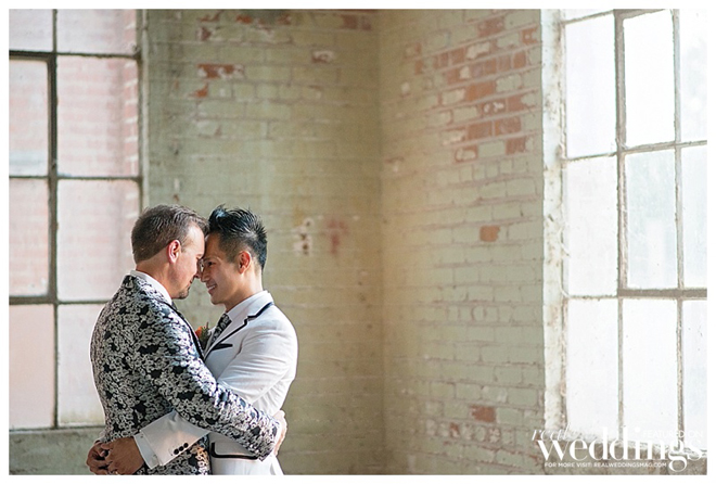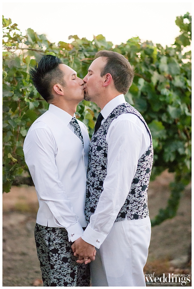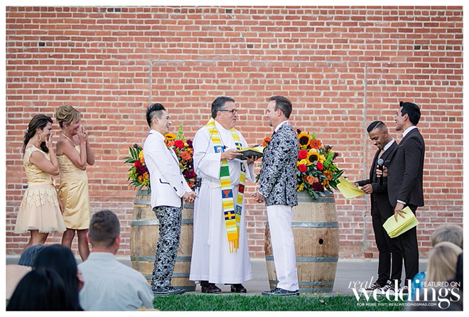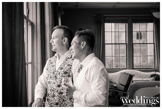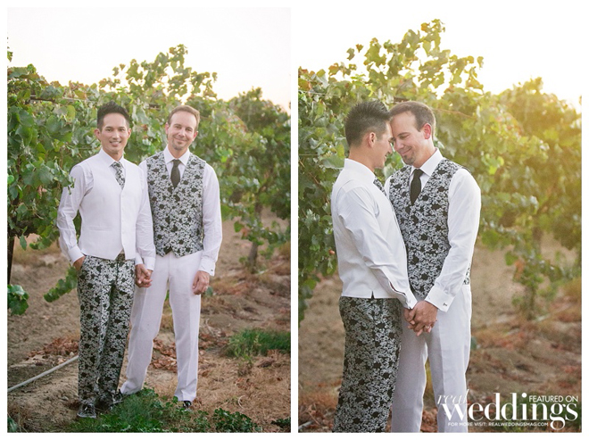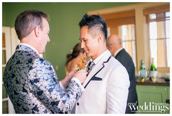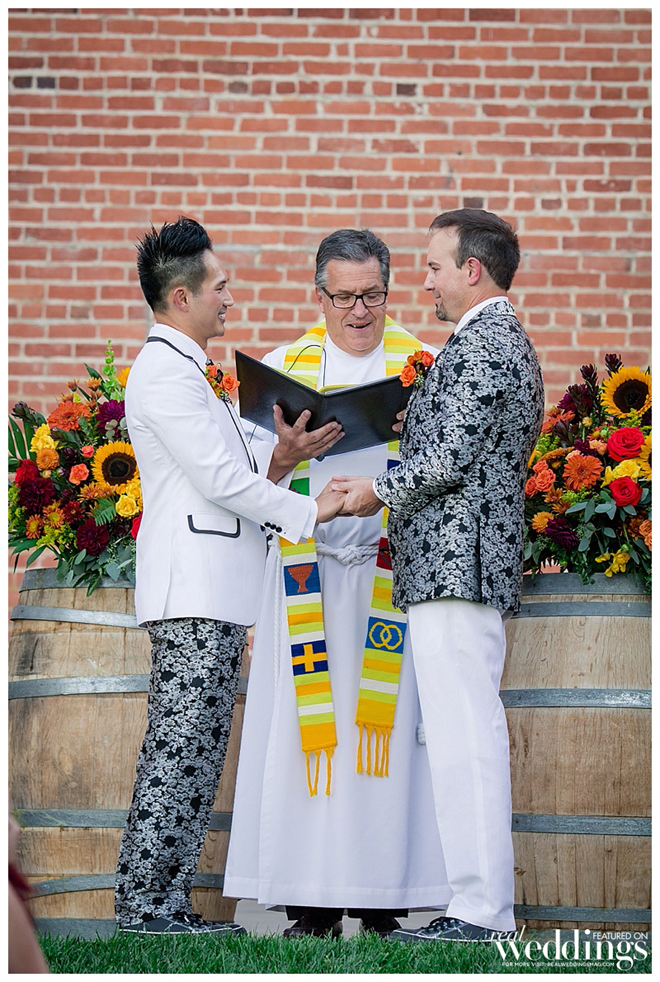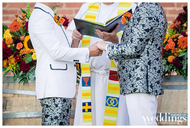 The grooms were styled to perfection! Inspired by floral suits they saw in a magazine ad, the grooms decided to have their attire custom tailored. “My suit was a white jacket with floral trousers,” says Petey. “Tony’s was a floral jacket with white trousers. We wanted our suit to complement its counterpart like we complement each other in life.”