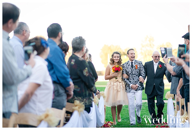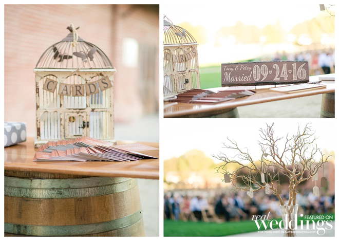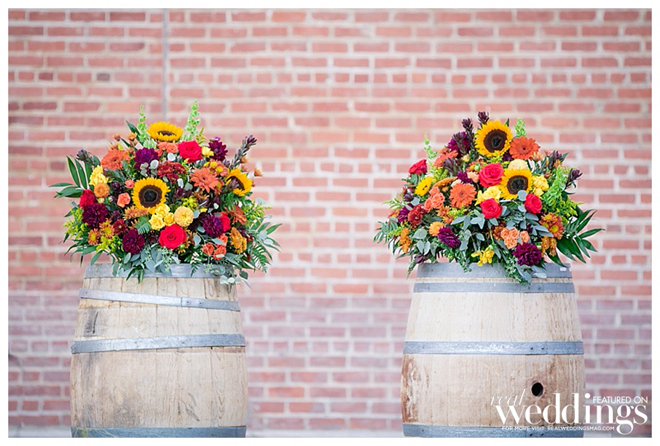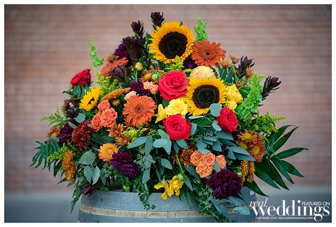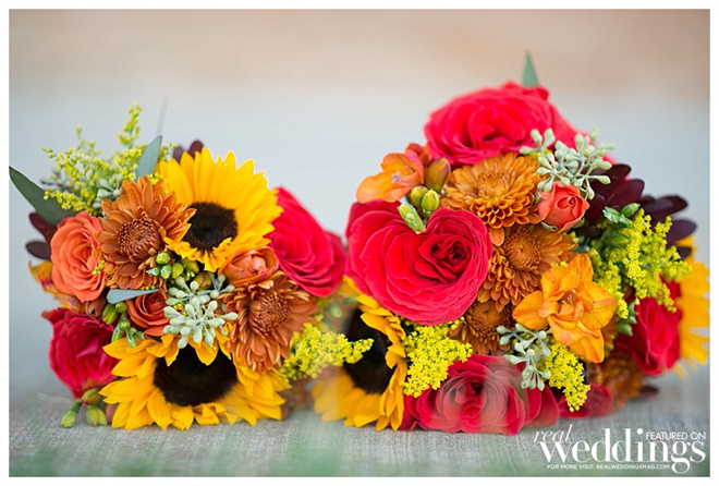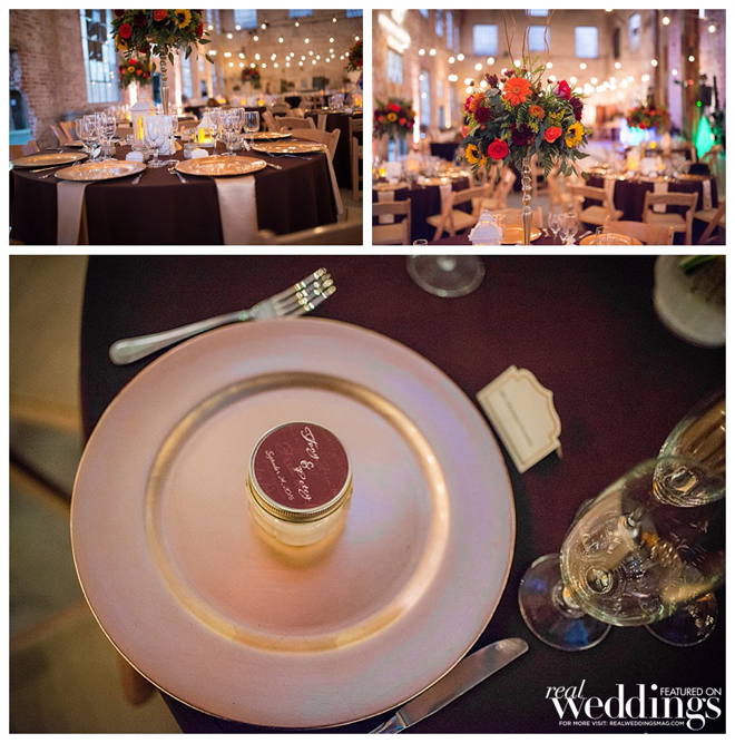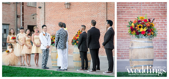 A September wedding was perfect since both grooms have the same September birthday and it’s their anniversary month. Their fall color scheme included gold, chocolate brown, cream and orange.