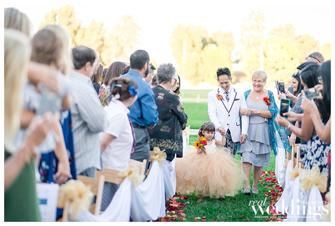 Petey’s parents, who live in Thailand, couldn’t make it to the wedding, so Tony’s mother walked Petey down the aisle, along with the couple’s three-year-old daughter; while Tony’s father walked him down the aisle along with the couple’s 13-year-old daughter.