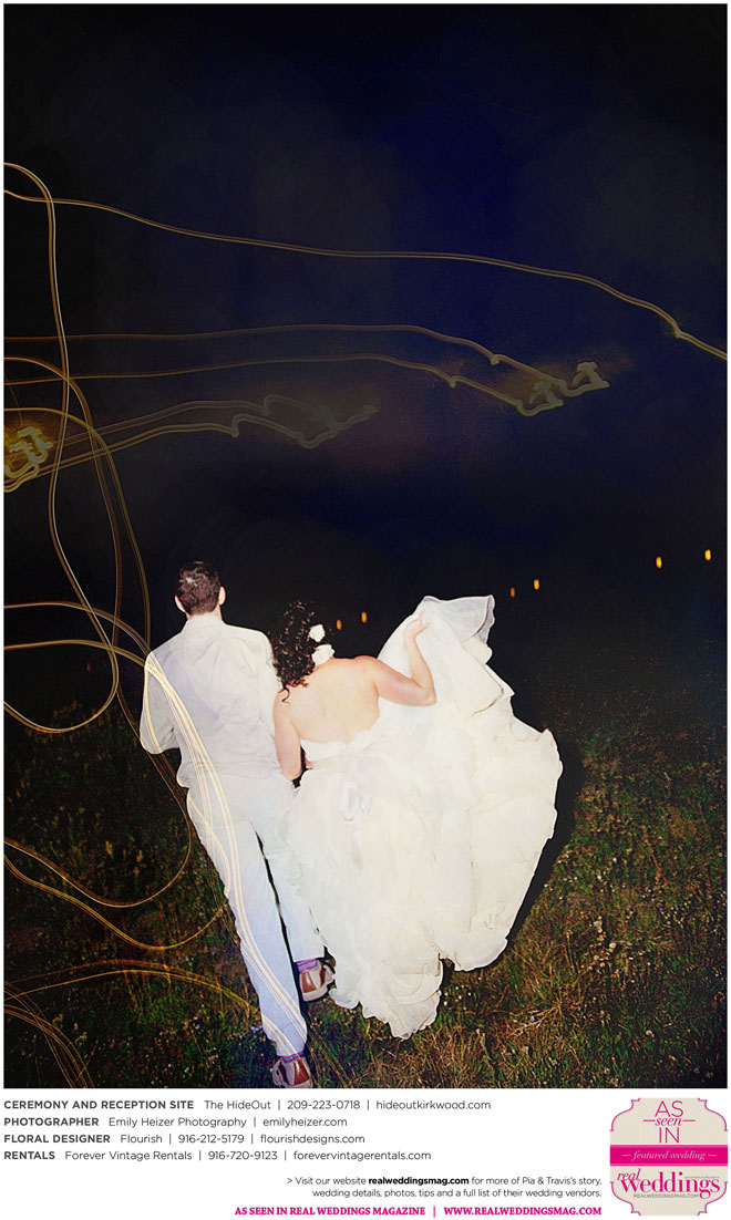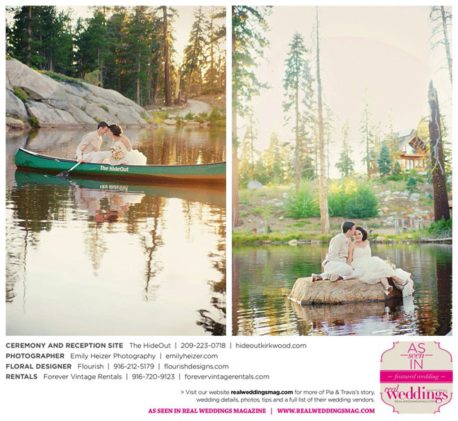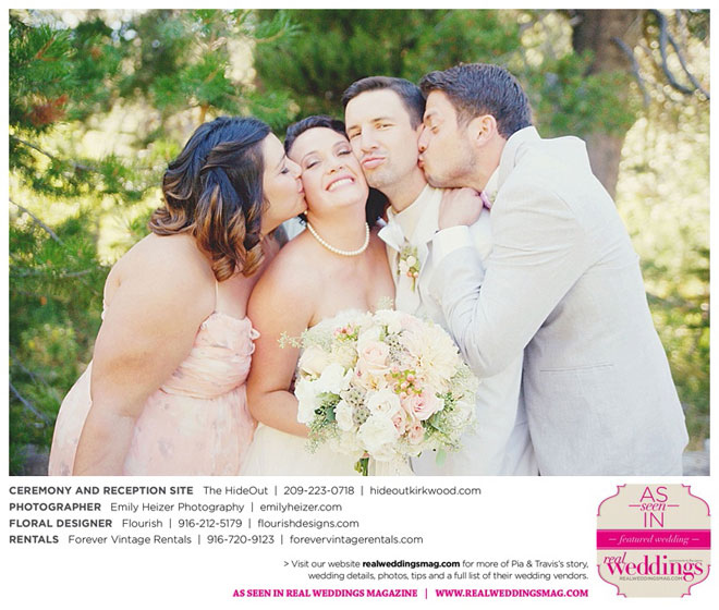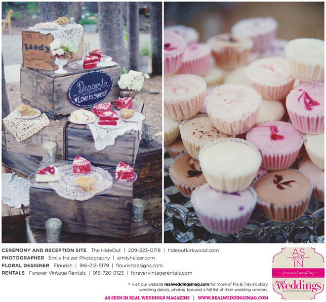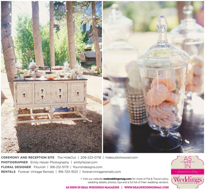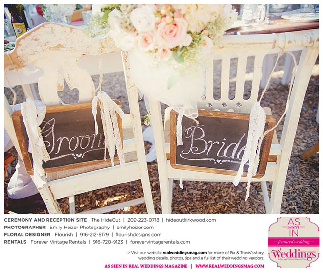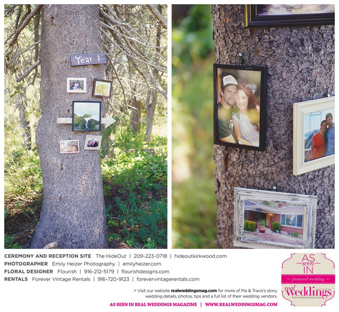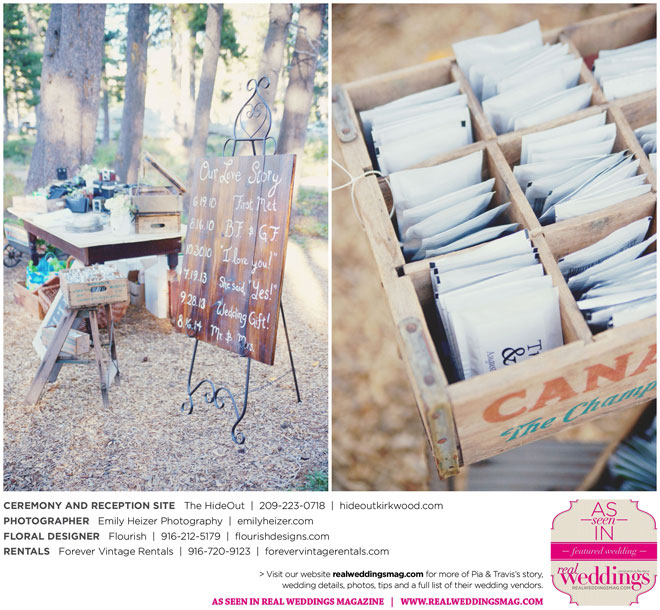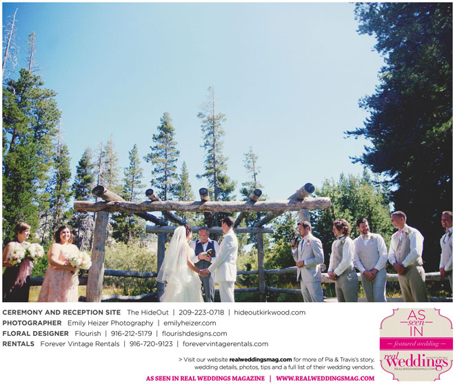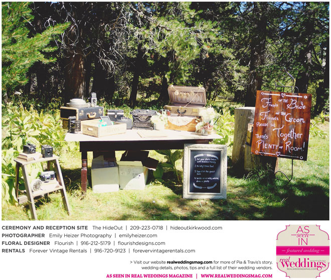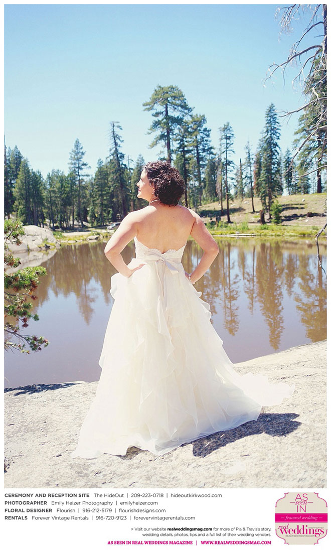 Pia and Travis started planning right away, because they knew they wanted a Tahoe wedding and needed to secure a venue as soon as possible. They chose The HideOut, a gorgeous estate that offered exactly what the couple was looking for: a place where friends and family could relax and enjoy the day with a breathtaking backdrop. Pia added a special touch by lining the walkway from the parking lot to the ceremony sight with photos of the couple’s childhood and relationship together. A special moment for both of them was walking their daughter Aria down the aisle in an old buggy cart after the ceremony.