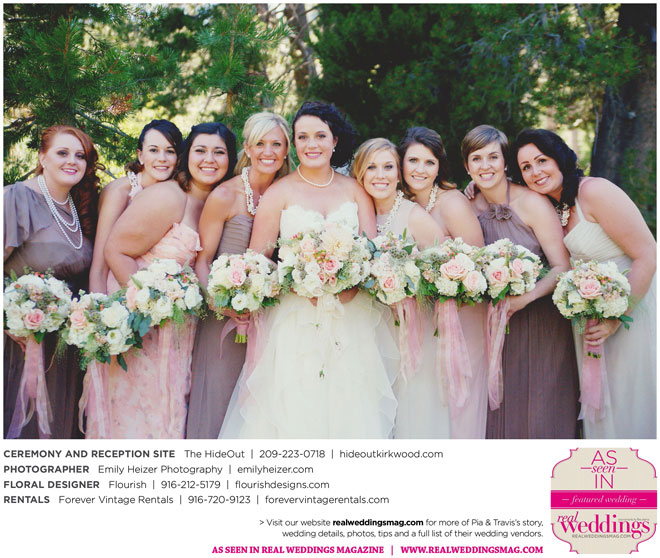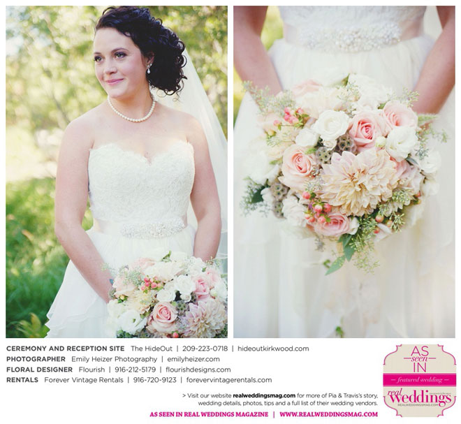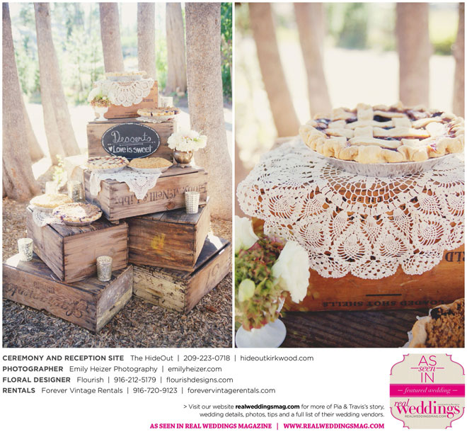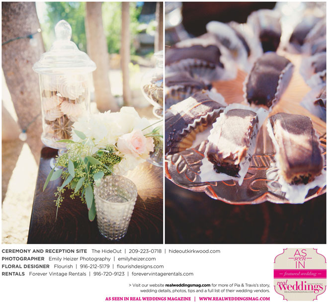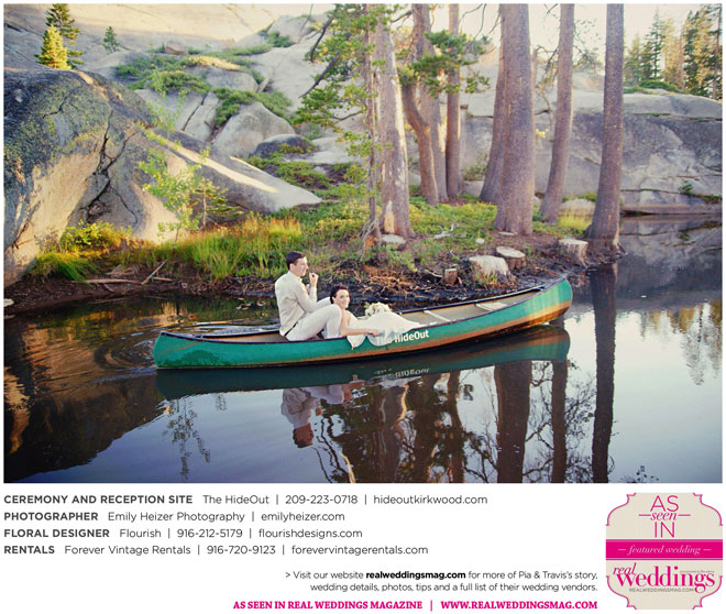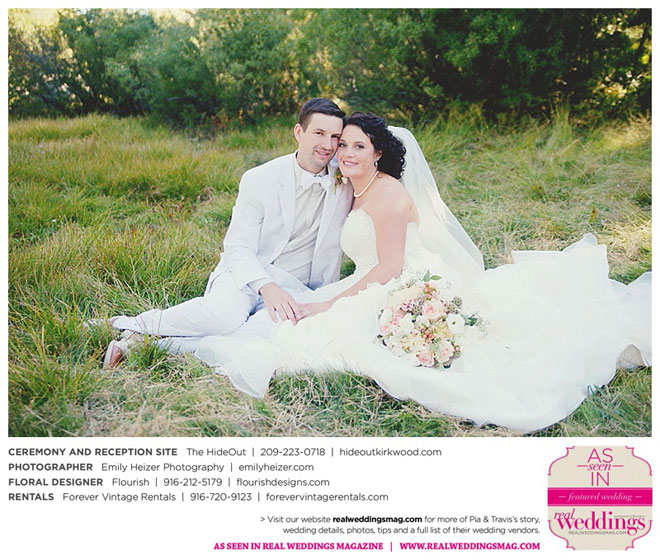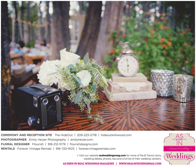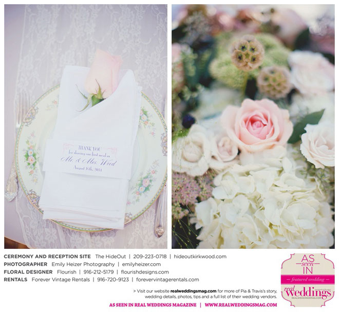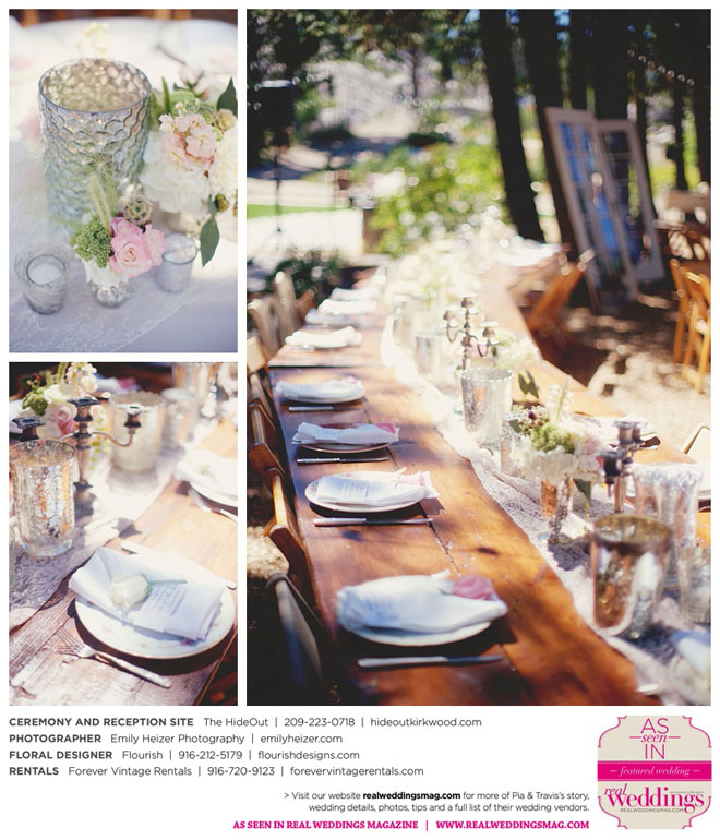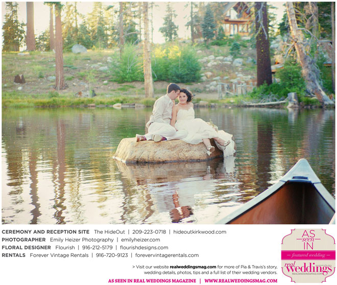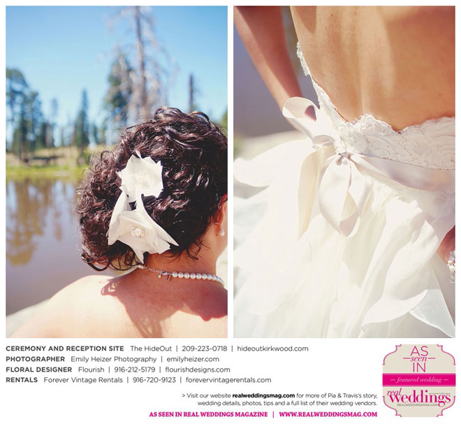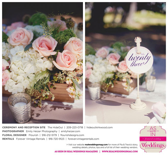 Pia and Travis started planning right away, because they knew they wanted a Tahoe wedding and needed to secure a venue as soon as possible. They chose The HideOut, a gorgeous estate that offered exactly what the couple was looking for: a place where friends and family could relax and enjoy the day with a breathtaking backdrop. Pia added a special touch by lining the walkway from the parking lot to the ceremony sight with photos of the couple’s childhood and relationship together. A special moment for both of them was walking their daughter Aria down the aisle in an old buggy cart after the ceremony.
