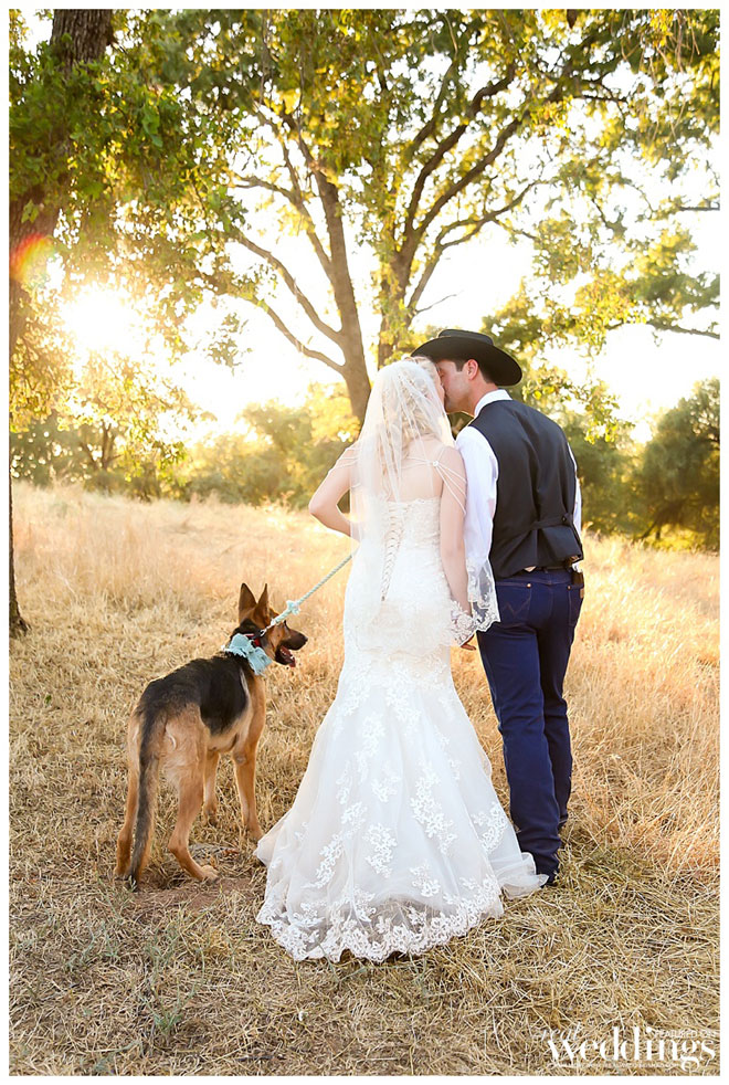 Well into their relationship, Cody took Rachel camping to Virginia City, Nevada. He set up camp and cooked Rachel’s favorite dinner with the mountains in the background. At one point, he tied the ring box on Rachel’s dog, Nadie. “I told Rachel there was something wrong with her dog’s neck,” he says. She was pleasantly surprised to find the engagement ring in the box.