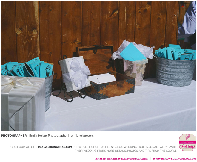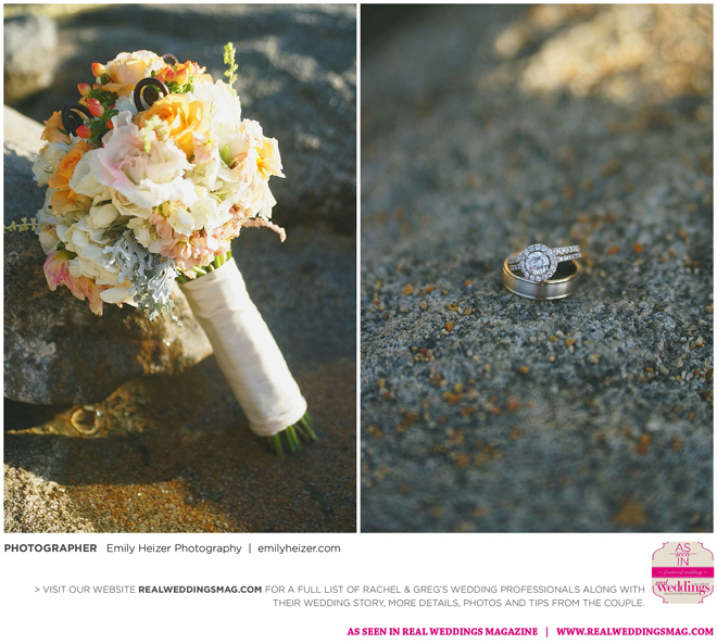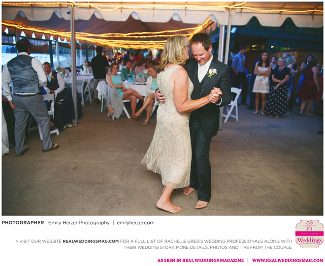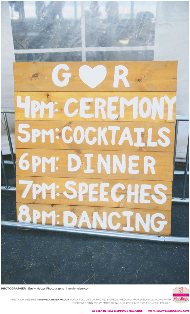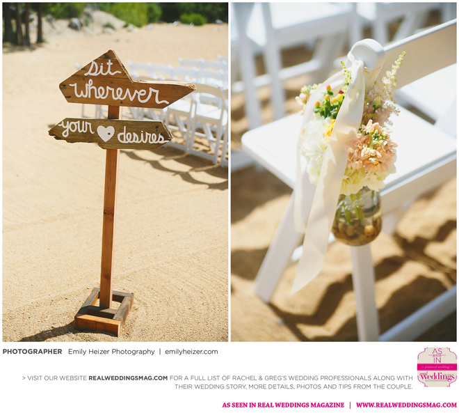 For their very personal ceremony, the couple wrote the vows and script and asked Rachel’s uncle to officiate. “My uncle Rich had asked each of our parents to write about the significance of marriage,” notes Rachel of one special surprise moment. “Uncle Rich then read their comments during the ceremony.”