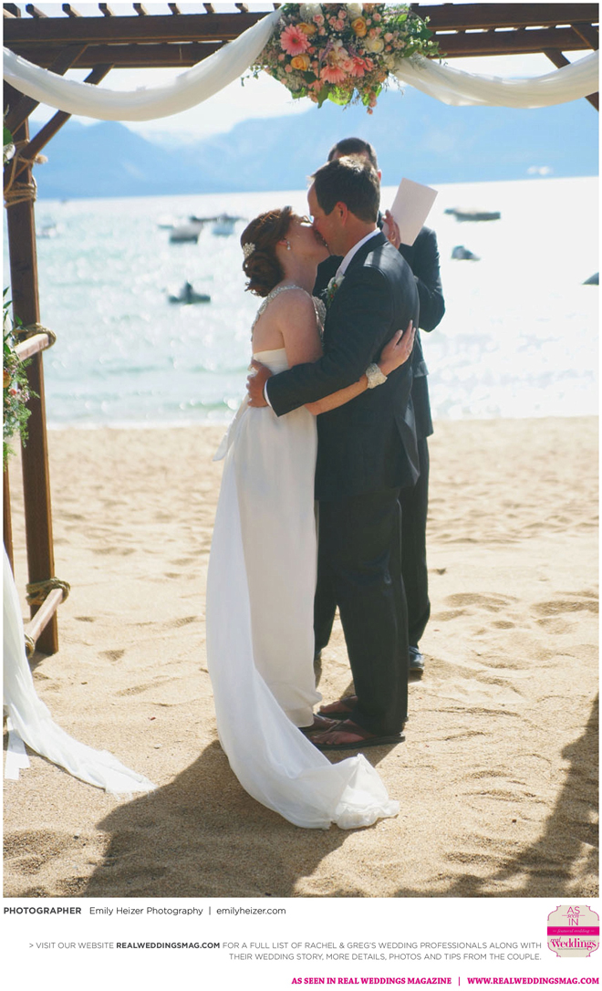 Rachel and Greg first met while working at Heavenly Mountain Resort but actually overlapped living in Breckenridge, Colorado, for one weekend before she moved away. “We attended the same beer festival but did not meet until a year later in Lake Tahoe,” she says.