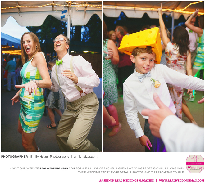 At the reception, the happy couple sat at a long table surrounded by their immediate families. “Family is really important to us, and we love our family dinners,” says Rachel. “It made perfect sense to us to have our closest loved ones at the dinner table with us for our first meal as Mr. and Mrs.”