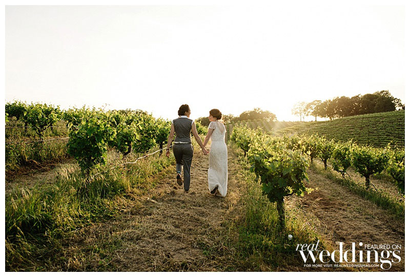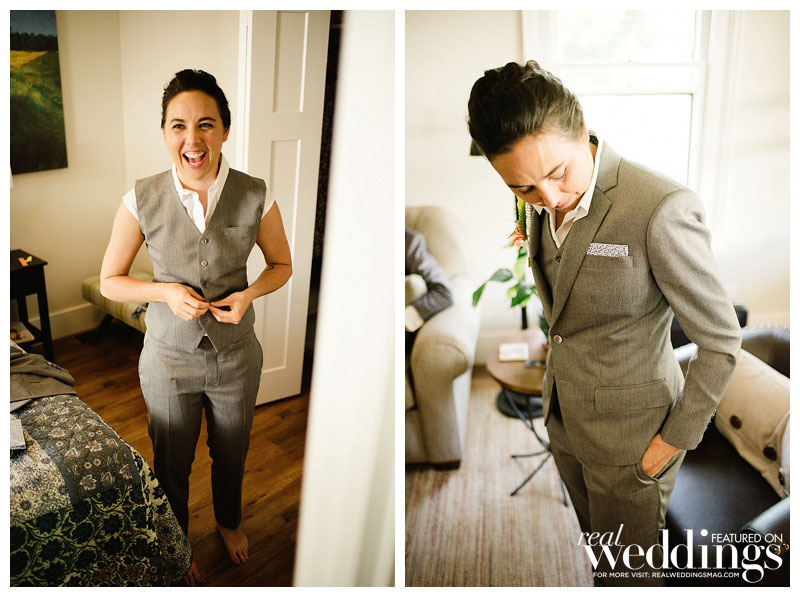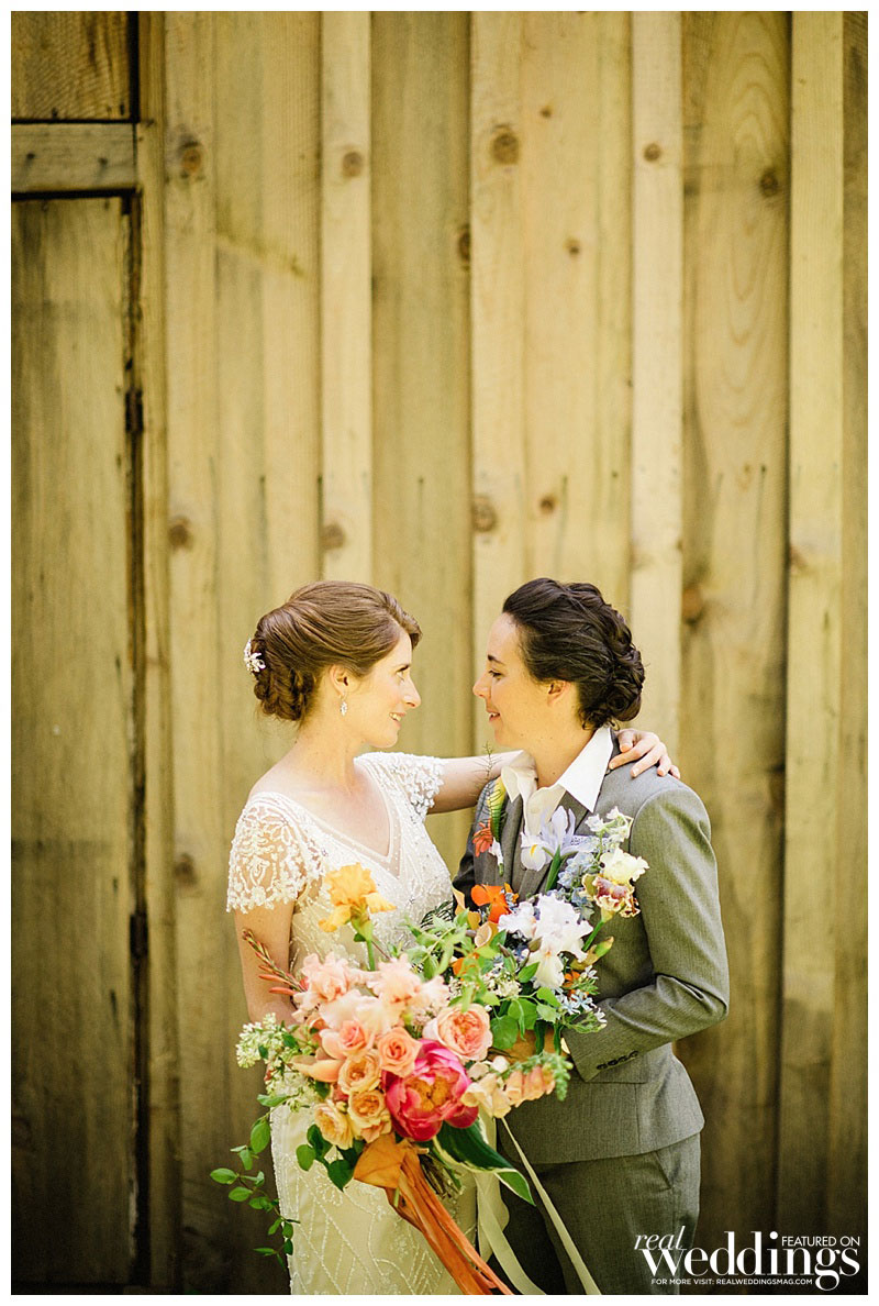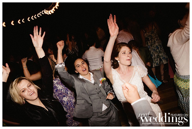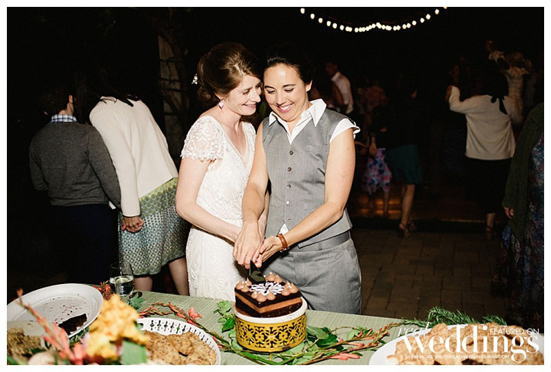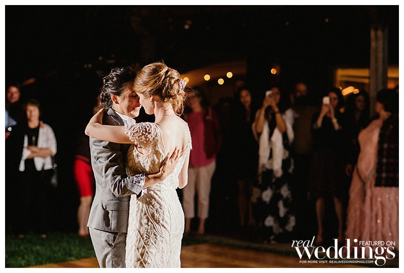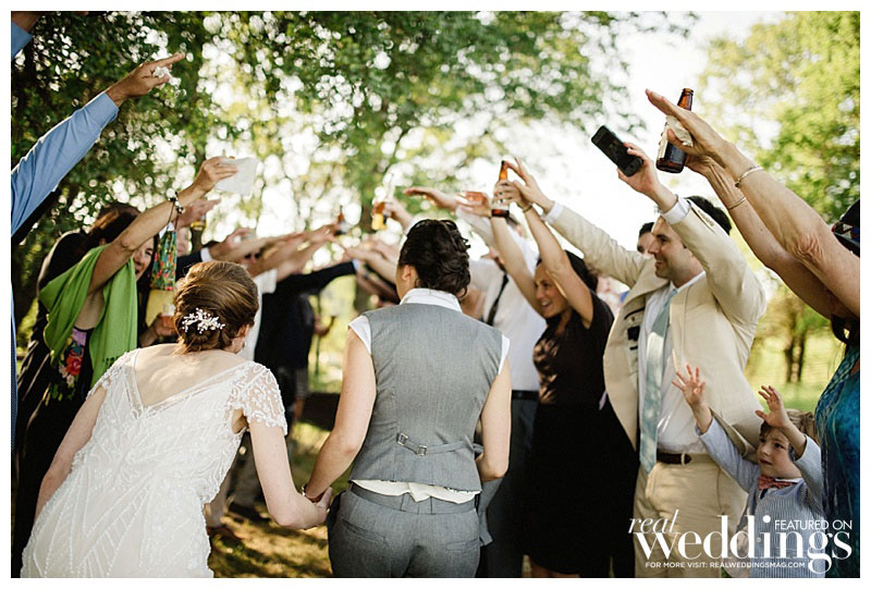 Rachel and Sara loved every part of the ceremony, despite a “burping” septic tank that left a less-than-enjoyable odor on the dance floor. When the newlyweds were ready to leave, they looked back at the celebration from a distance. “We could see all our friends and family under the lights, still dancing and engaging in revelry,” Rachel says. “The candles were still flickering on the tables. I was overcome with joy and burst into tears.” But that wasn’t a problem for Sara. “I loved watching Rachel burst into happy tears,” she says. “That was probably my favorite moment!”