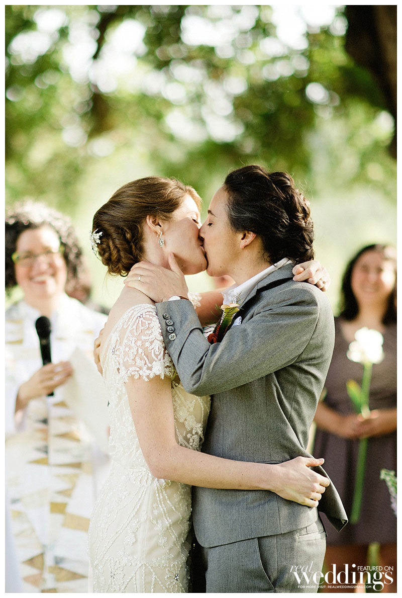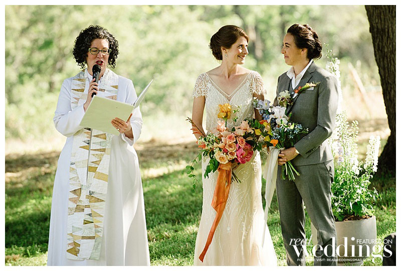 Sara, a priest at the Episcopal Church, and Rachel, a minister at the United Church of Christ, didn’t start dating right away. Though they struck up a friendship, it wasn’t until they both had similar emotional realizations that they knew there was something more there. Sara recalls that the hours spent in long conversation with Rachel made her realize “I wanted to be around her for a long time.” And for Rachel, the feeling was similar when she realized Sara was the person she went to when she was stressed and needed to feel at home.
