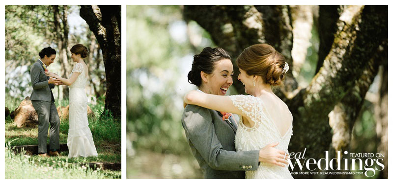 Though their first date was unusual—a walk in a hillside cemetery—the proposal was even more unique. Sara asked Rachel if she wanted to go for a walk in the same cemetery and told herself that if Rachel said yes, she’d propose. Rachel did say yes to the walk, but when they got to the location where Sara planned to pop the question, she noticed their fellow companions in the cemetery were mostly high school students taking advantage of the Bay Area’s laid-back marijuana laws. Sara didn’t want to make a scene in front of them, so she simply showed the ring to Rachel and asked “Would you like to wear this?” Rachel had a surprising response: “Do you want to ask something else?” Sara did ask something else, and Rachel said yes for a second time that day, as the stoned high-schoolers came over with congratulations and offers to take their photo.