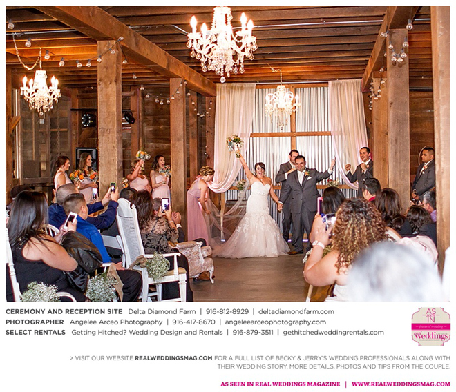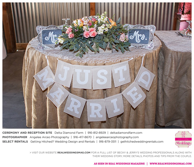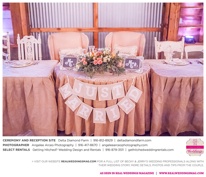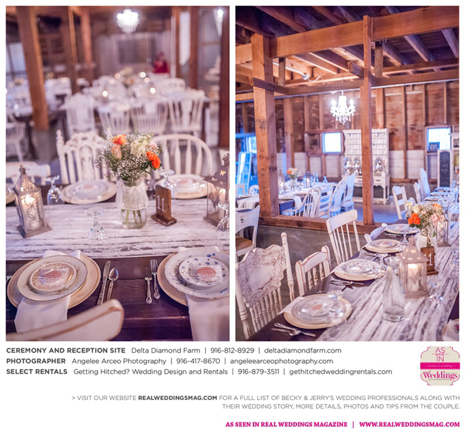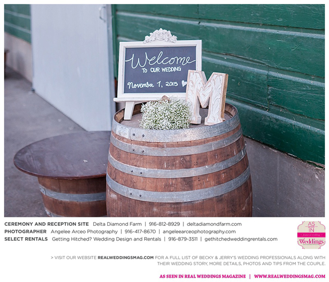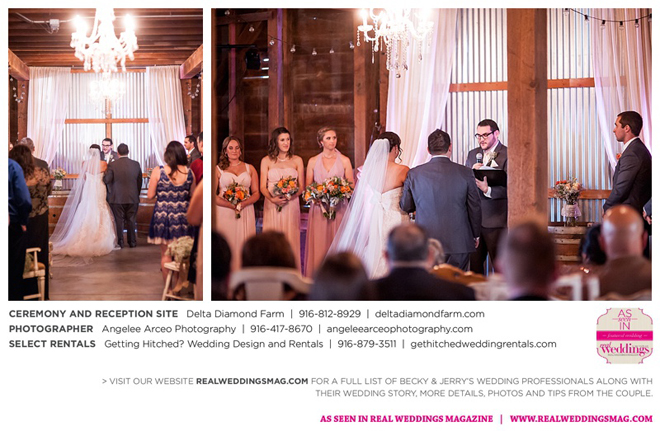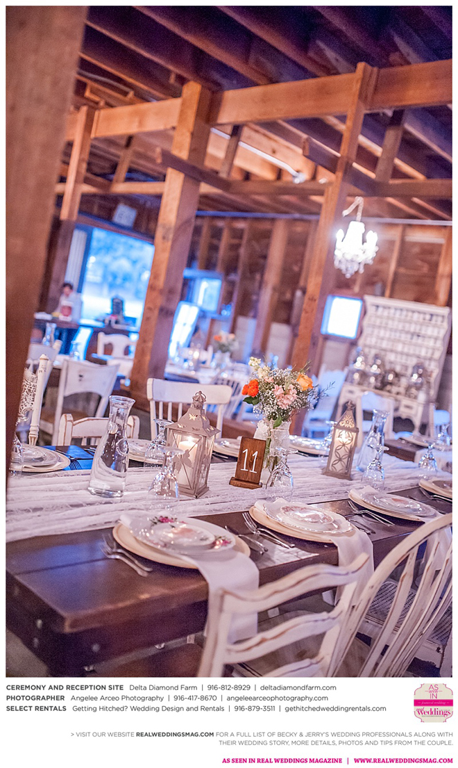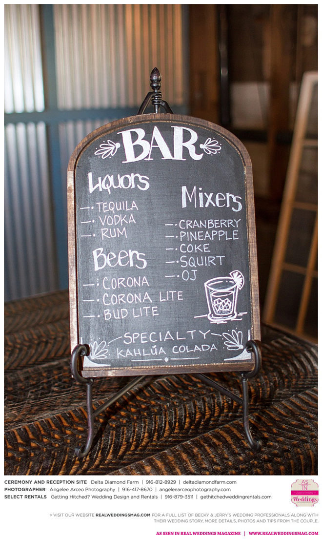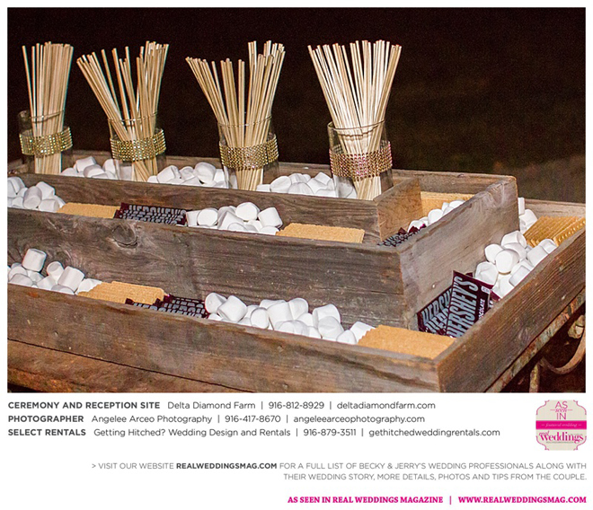 The couple found Delta Diamond Farm very early into their planning and knew right away it was the perfect place to pull off the rustic barn wedding they dreamed of. Most couples choose to have their ceremony on the courtyard of the venue, but Becky and Jerry were so enamored with the barn that they wanted both the ceremony and reception to take place inside. They were thrilled and impressed that the venue was able to so seamlessly flip the barn from a ceremony to a reception without disrupting the wedding or the guests—and the s’mores bar certainly didn’t hurt to keep guests happy and occupied.