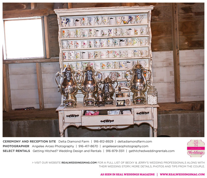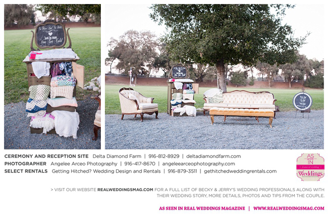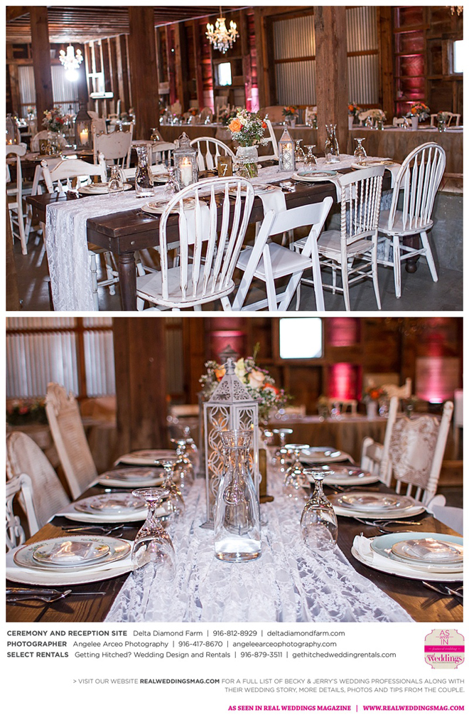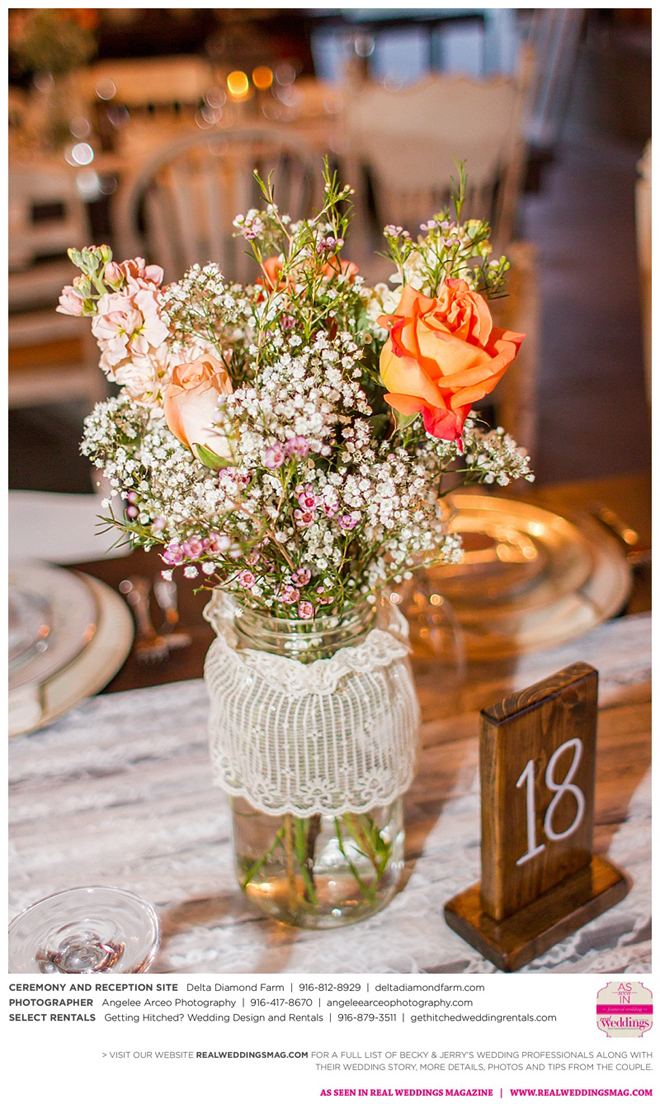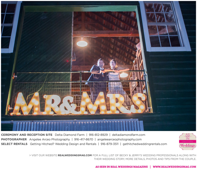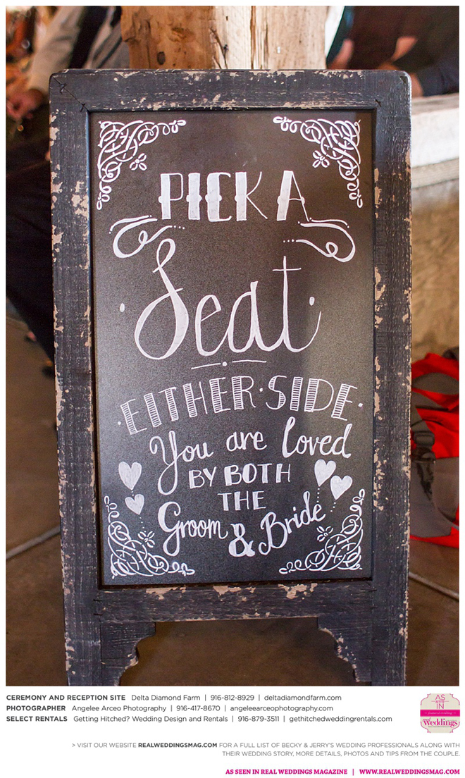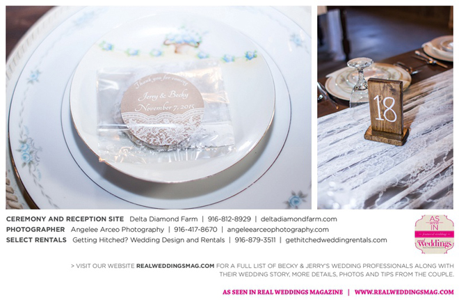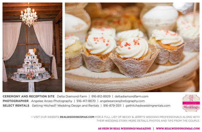 The couple found Delta Diamond Farm very early into their planning and knew right away it was the perfect place to pull off the rustic barn wedding they dreamed of. Most couples choose to have their ceremony on the courtyard of the venue, but Becky and Jerry were so enamored with the barn that they wanted both the ceremony and reception to take place inside. They were thrilled and impressed that the venue was able to so seamlessly flip the barn from a ceremony to a reception without disrupting the wedding or the guests—and the s’mores bar certainly didn’t hurt to keep guests happy and occupied.