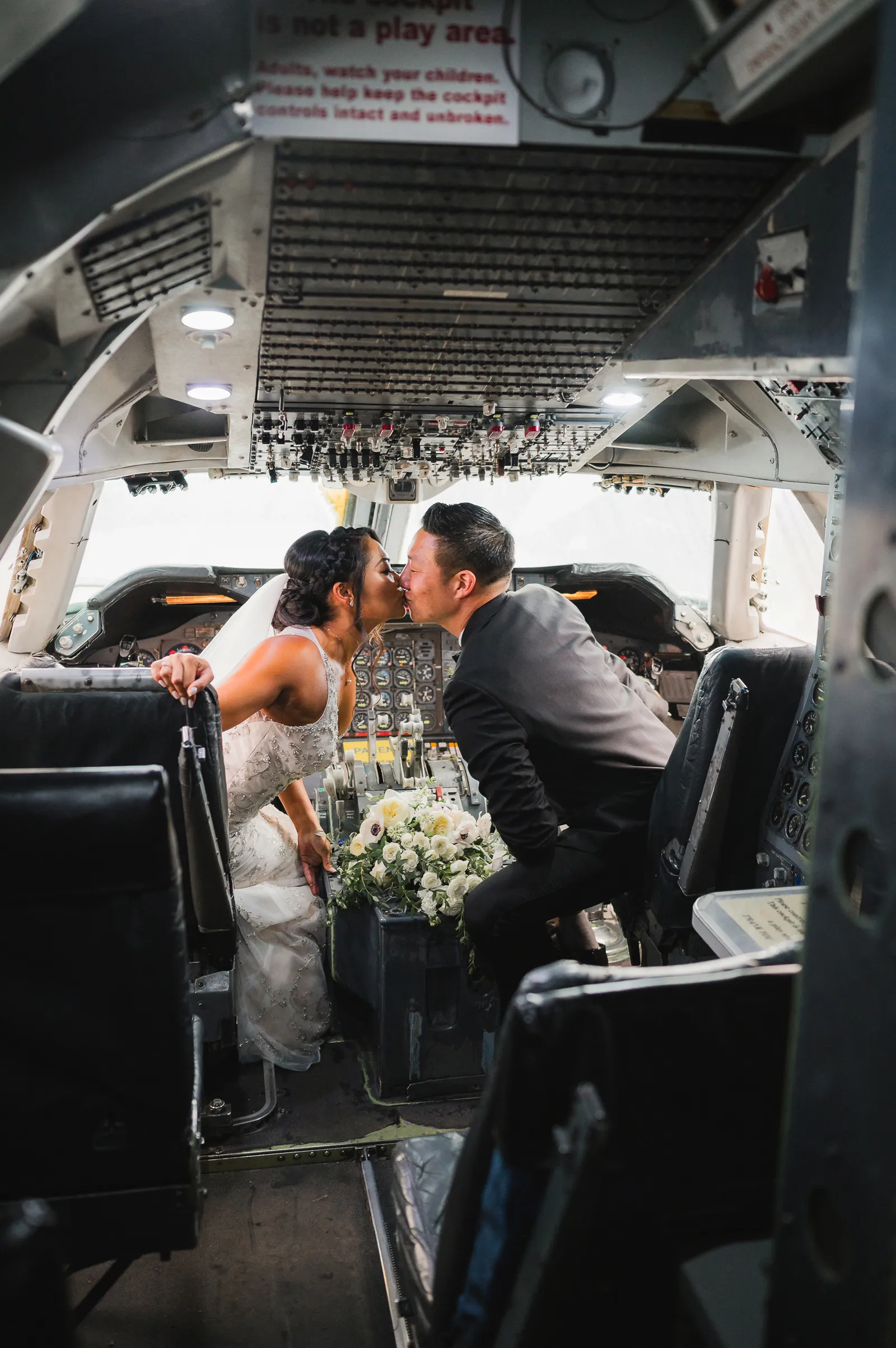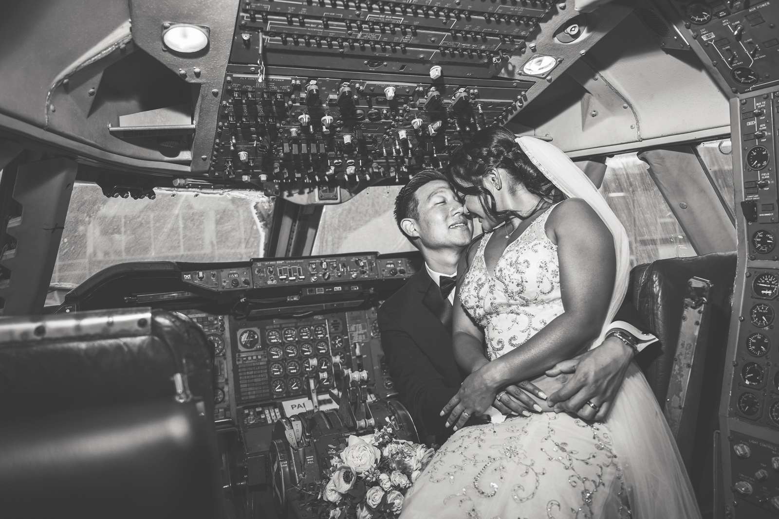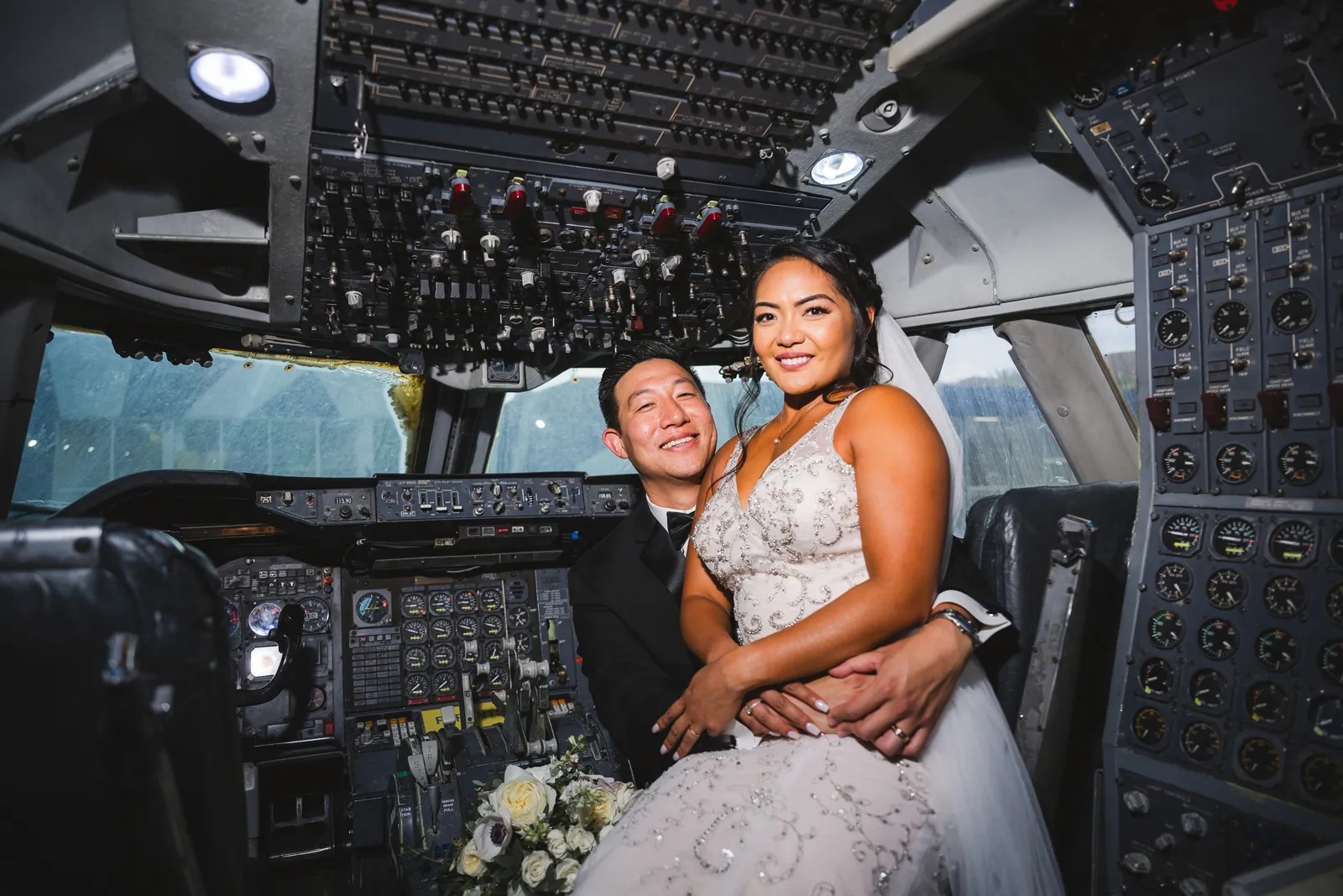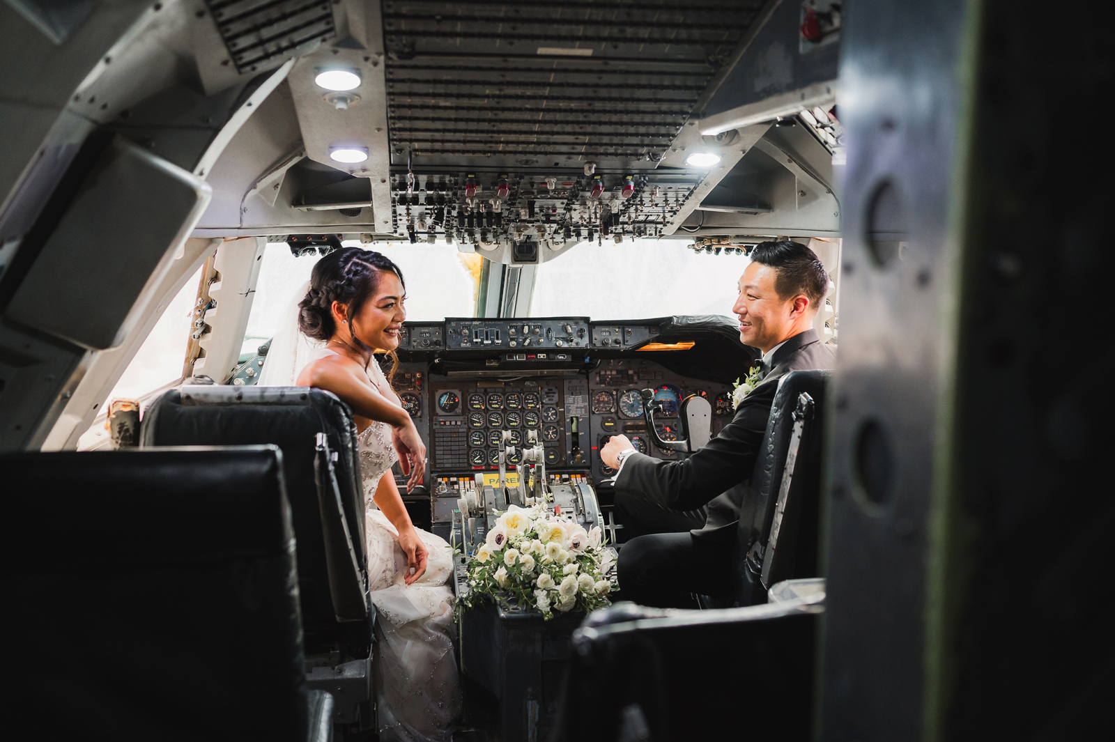 Just being up there in front of the Boeing saying our vows during the ceremony. I was smiling so much my cheeks hurt. I also enjoyed taking photos inside of the plane after the ceremony had concluded.