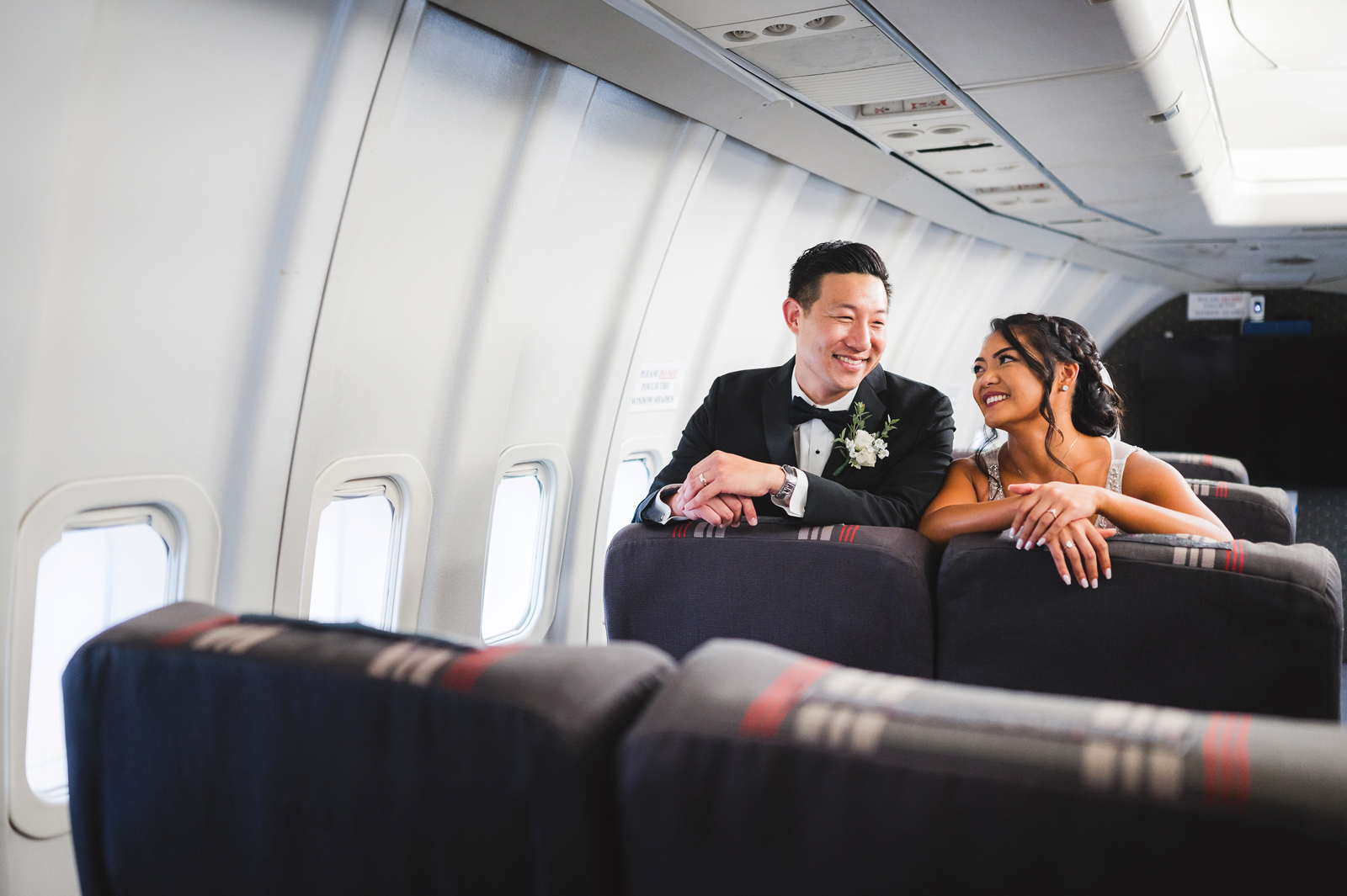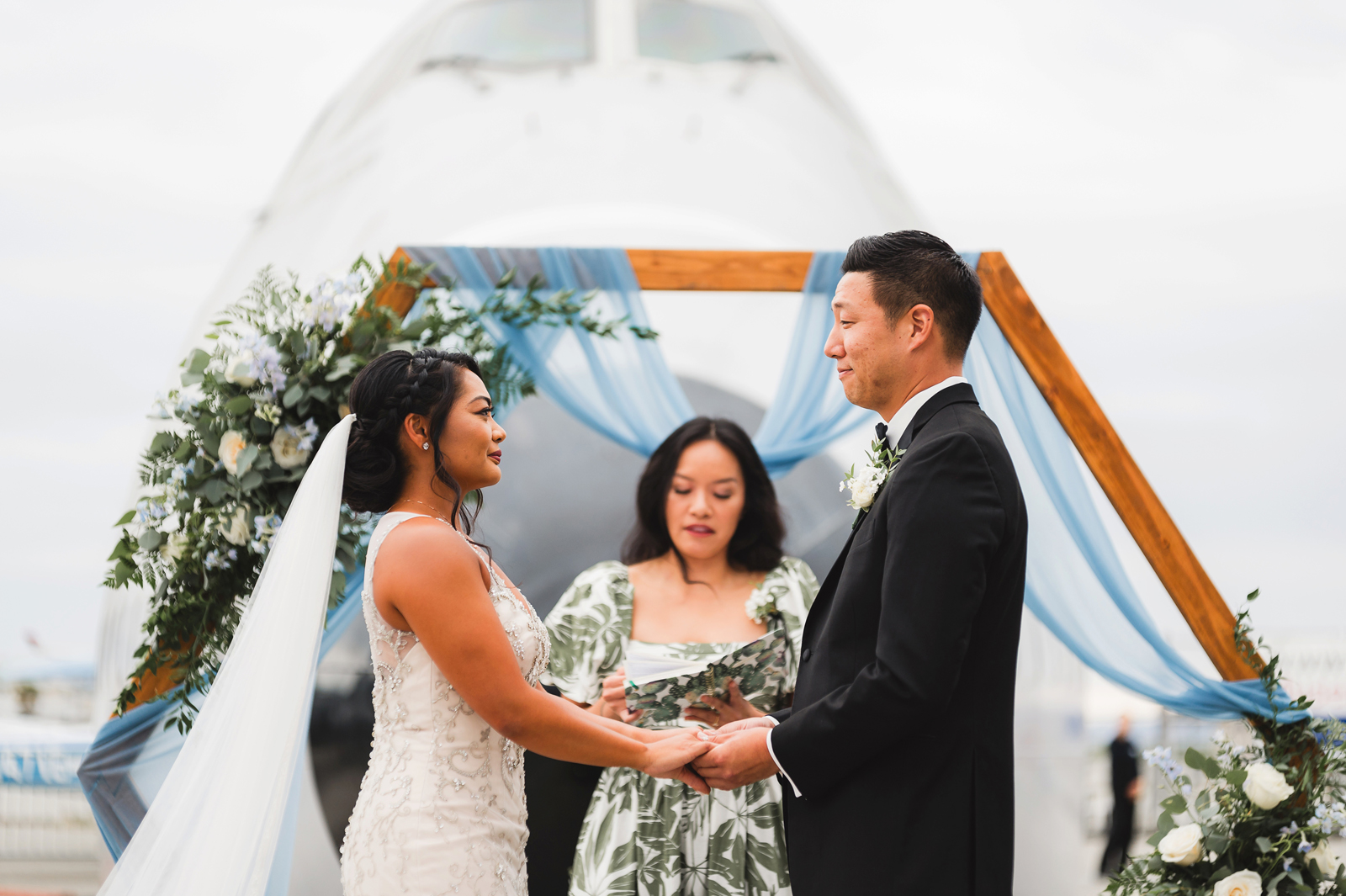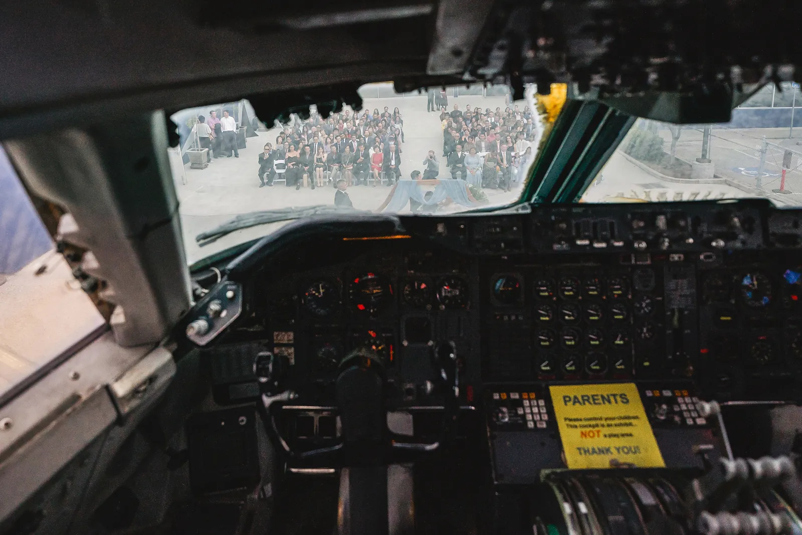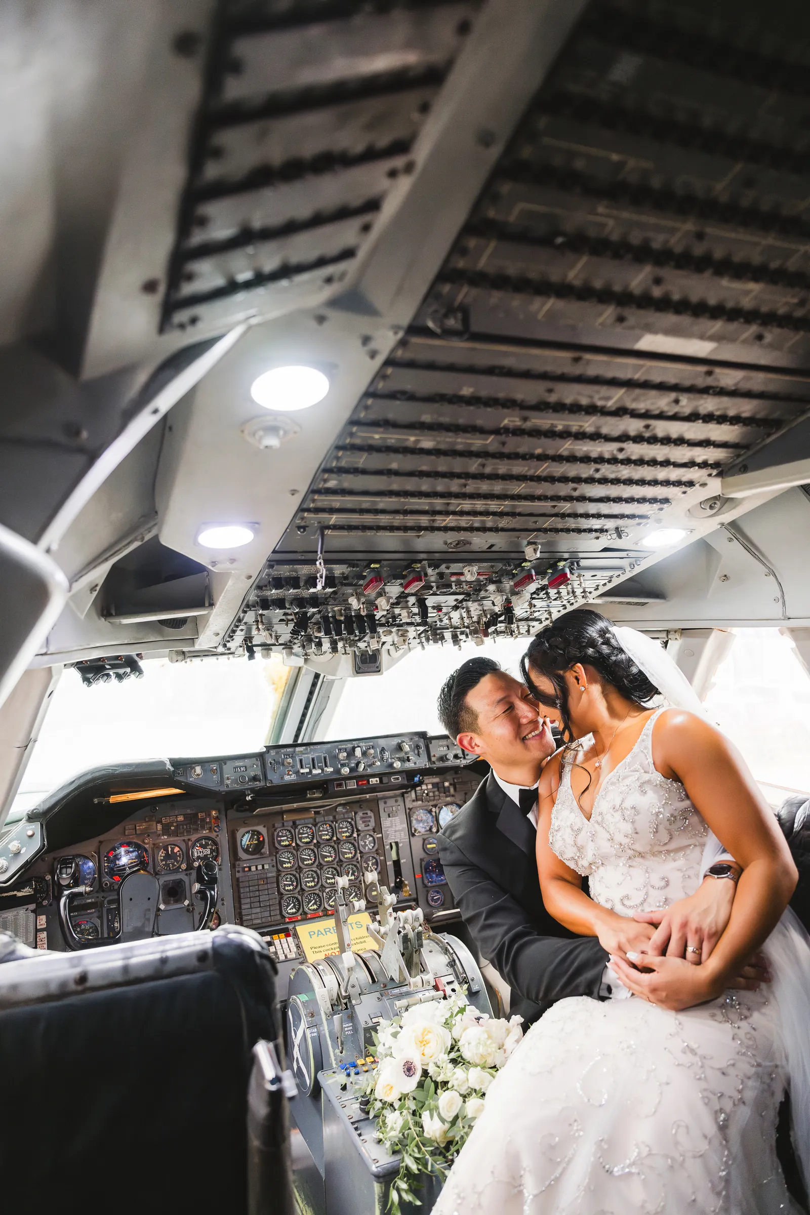 Just being up there in front of the Boeing saying our vows during the ceremony. I was smiling so much my cheeks hurt. I also enjoyed taking photos inside of the plane after the ceremony had concluded.