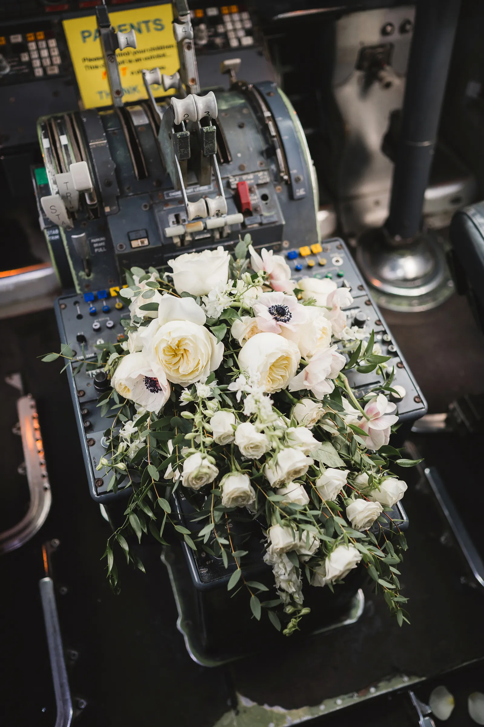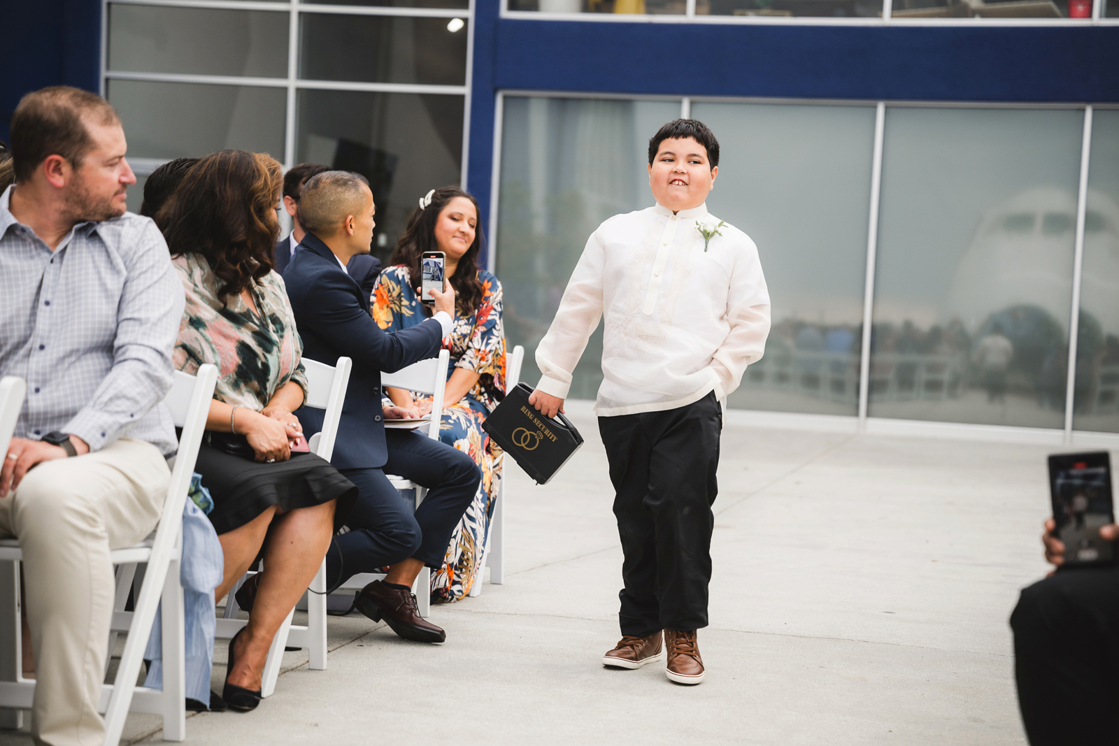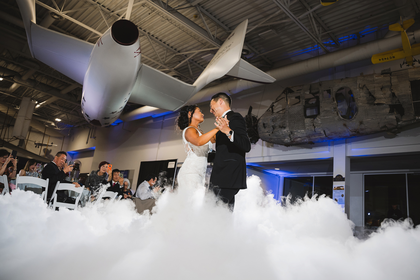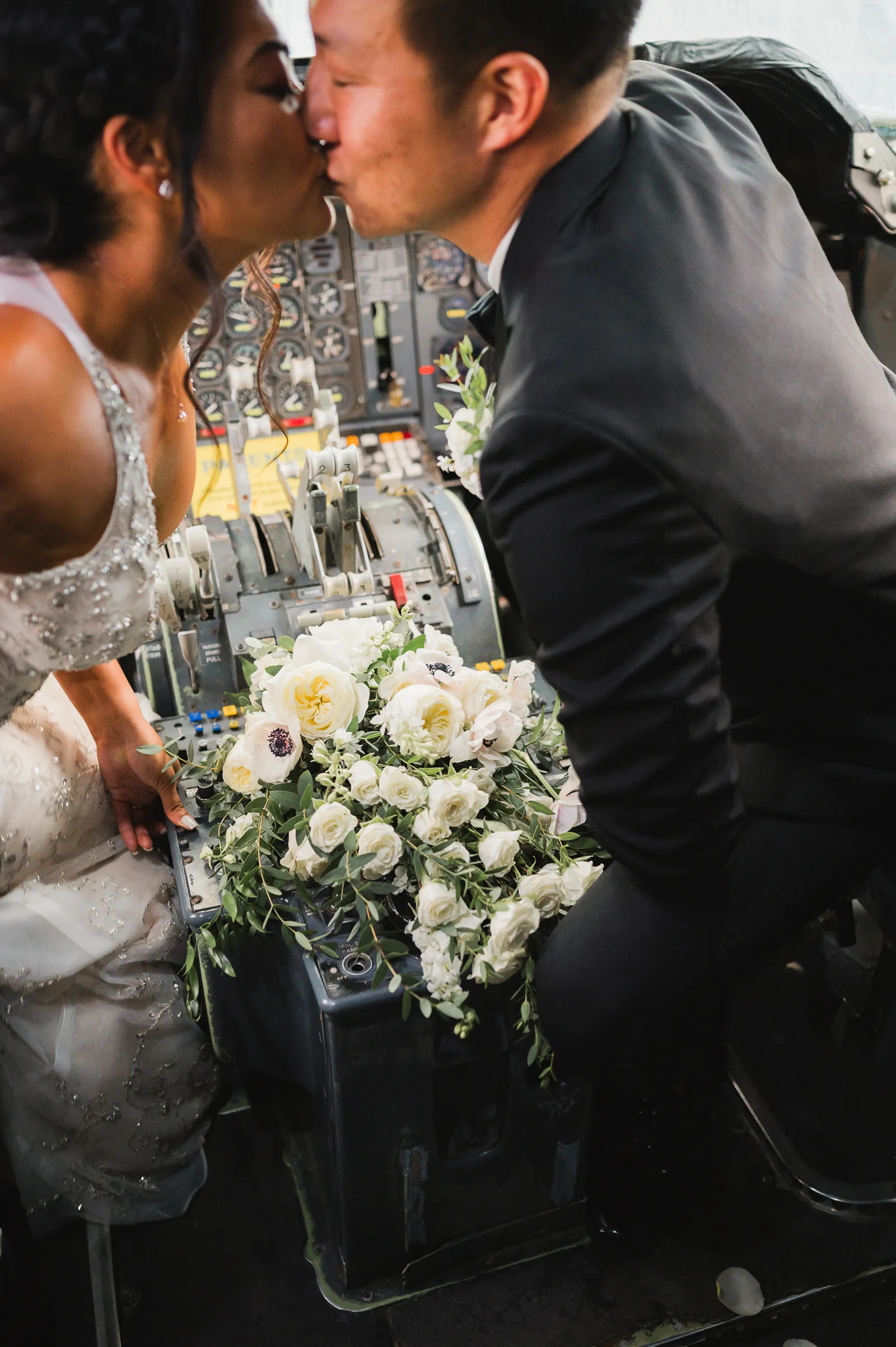 Just being up there in front of the Boeing saying our vows during the ceremony. I was smiling so much my cheeks hurt. I also enjoyed taking photos inside of the plane after the ceremony had concluded.