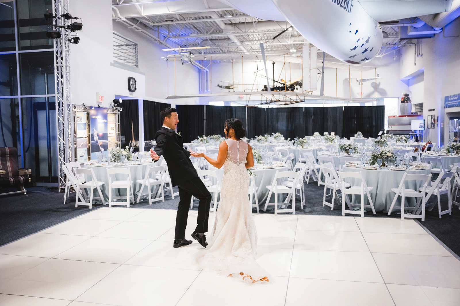 We wanted our guests to feel like they were a part of our journey and not just at another wedding. Our venue was interactive with many exhibits open so that our guests could take photos in the actual planes and aircrafts; and our food and drinks were representative of the places we’ve traveled. We also wanted our guests to feel like they were on one of our adventures—a “destination” wedding that happened locally so that all our family and friends could attend.