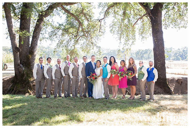 The ceremony in front of 100 guests including their 12-member wedding party, incorporated “some geeky quotes and nerd flair,” says Sabrina, explaining she and her groom love comic book conventions, renaissance fairs and Scottish festivals.