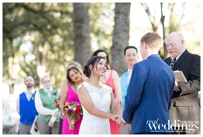 • Do a full run-through/reading of the ceremony during the rehearsal!! I (Sabrina) come from a theater background, and we always did the final rehearsal as if it was the real show. During the rehearsal our coordinator said we shouldn’t read through the ceremony, even though my instincts said we should… I was right. There were a couple significant hiccups during the ceremony that probably could have been avoided if we would have done a read/run-through. I especially recommend this because we had some unique elements to our ceremony like “stringing-the-ring”, and guests reading quotes. And even though Nicholas and I read through the ceremony at home numerous times, we didn’t catch that we forgot to put in the section where we place the rings on each others’ fingers! Gah!!