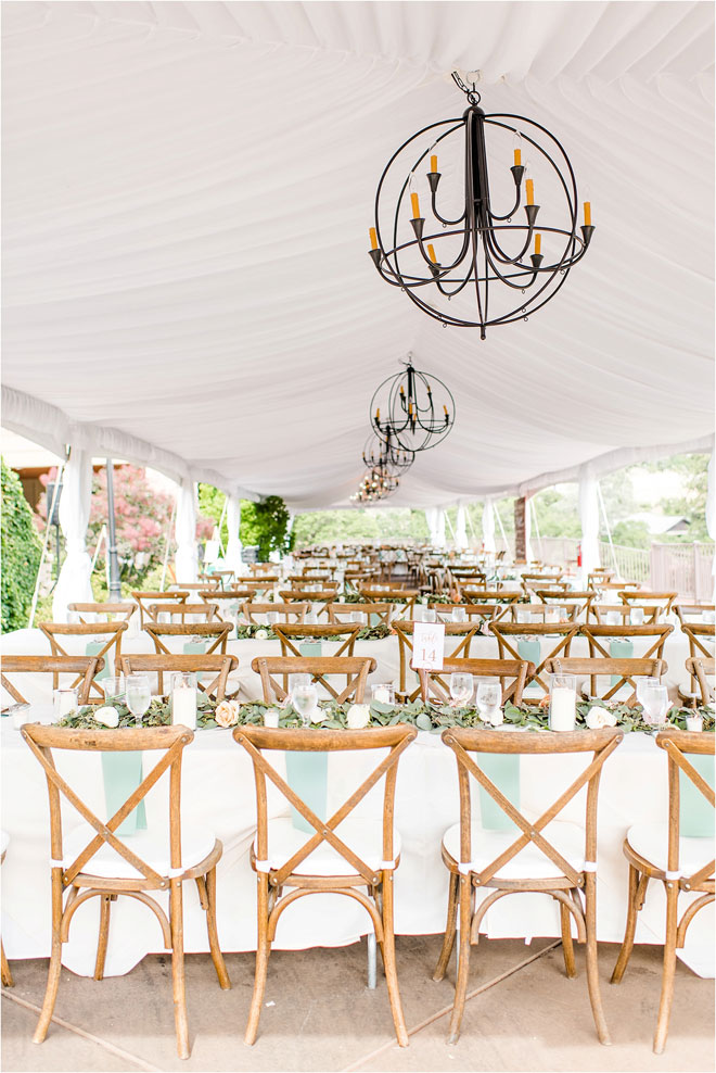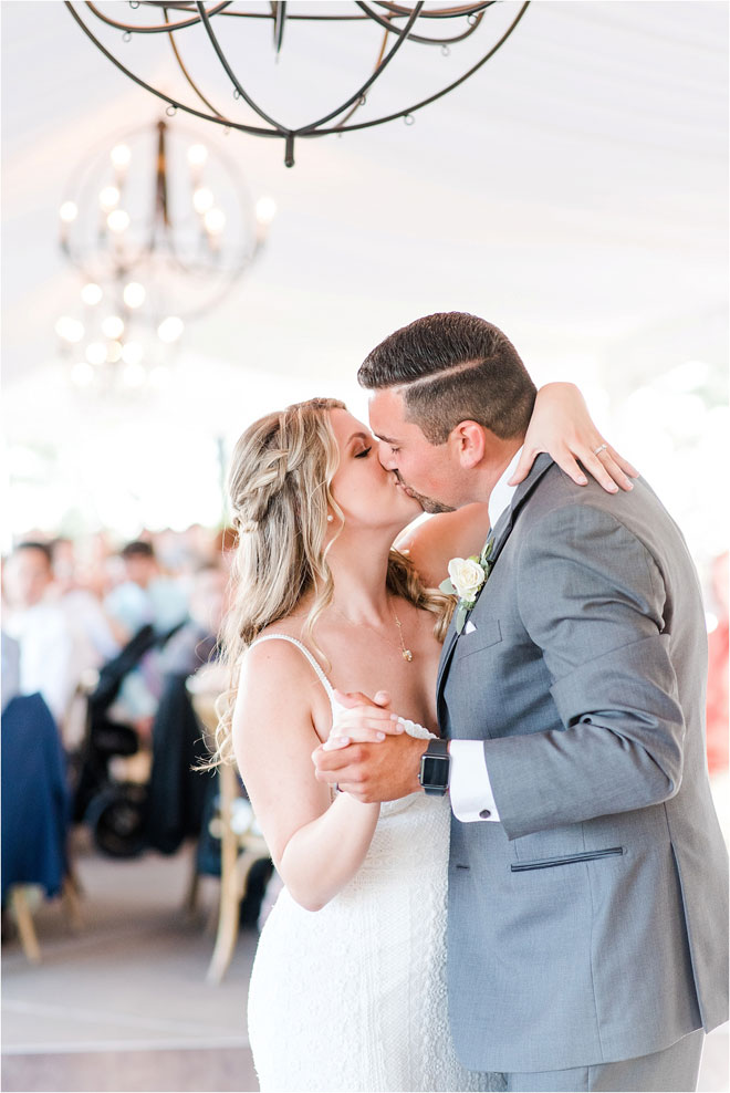 The reception was held in a tent outside at Winchester Country Club right above the grass landing where the ceremony was held. For their first entrance as a married couple, the pair danced in to the Sugarhill Gang’s cover of “Apache (Jump on It),” followed by a first dance to “Speechless” by Dan + Shay. “This sums us up perfectly,” explains Sam. “We can have fun together doing something ridiculous, and in the next moment we are calm and composed taking in the moment.”