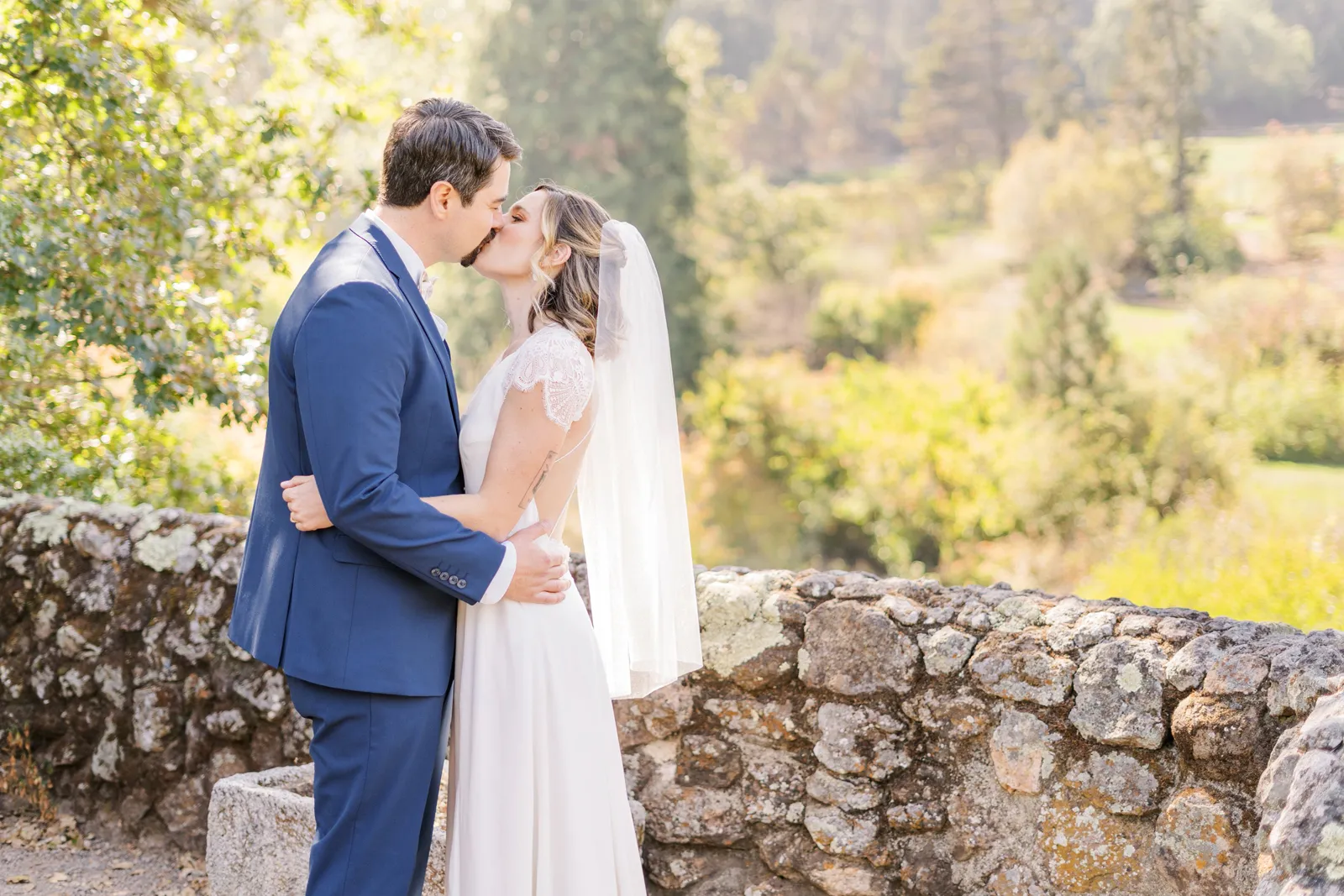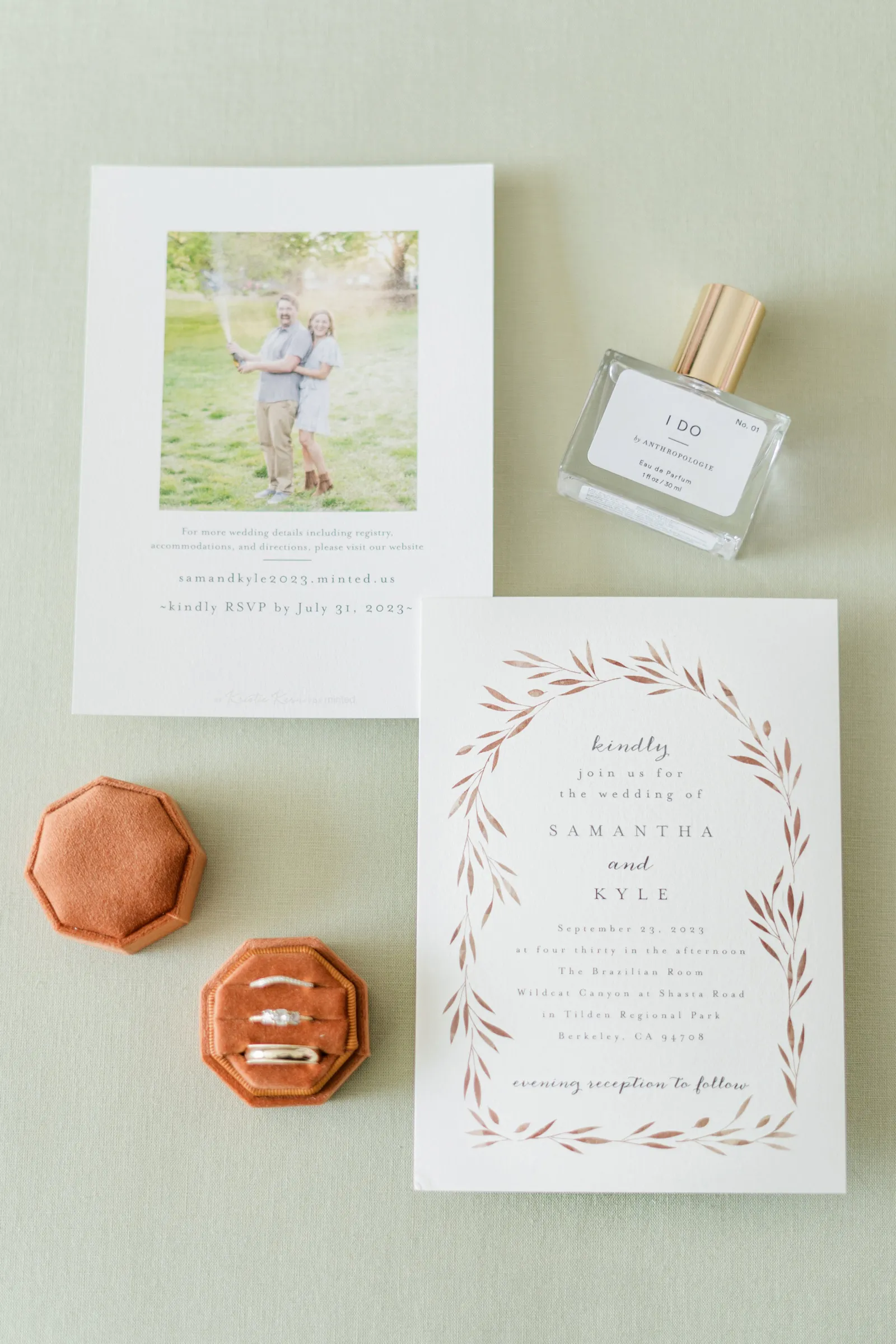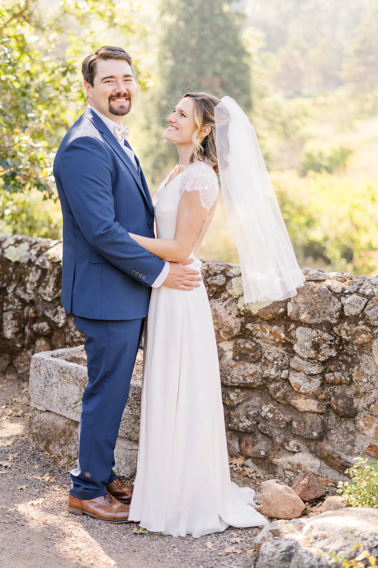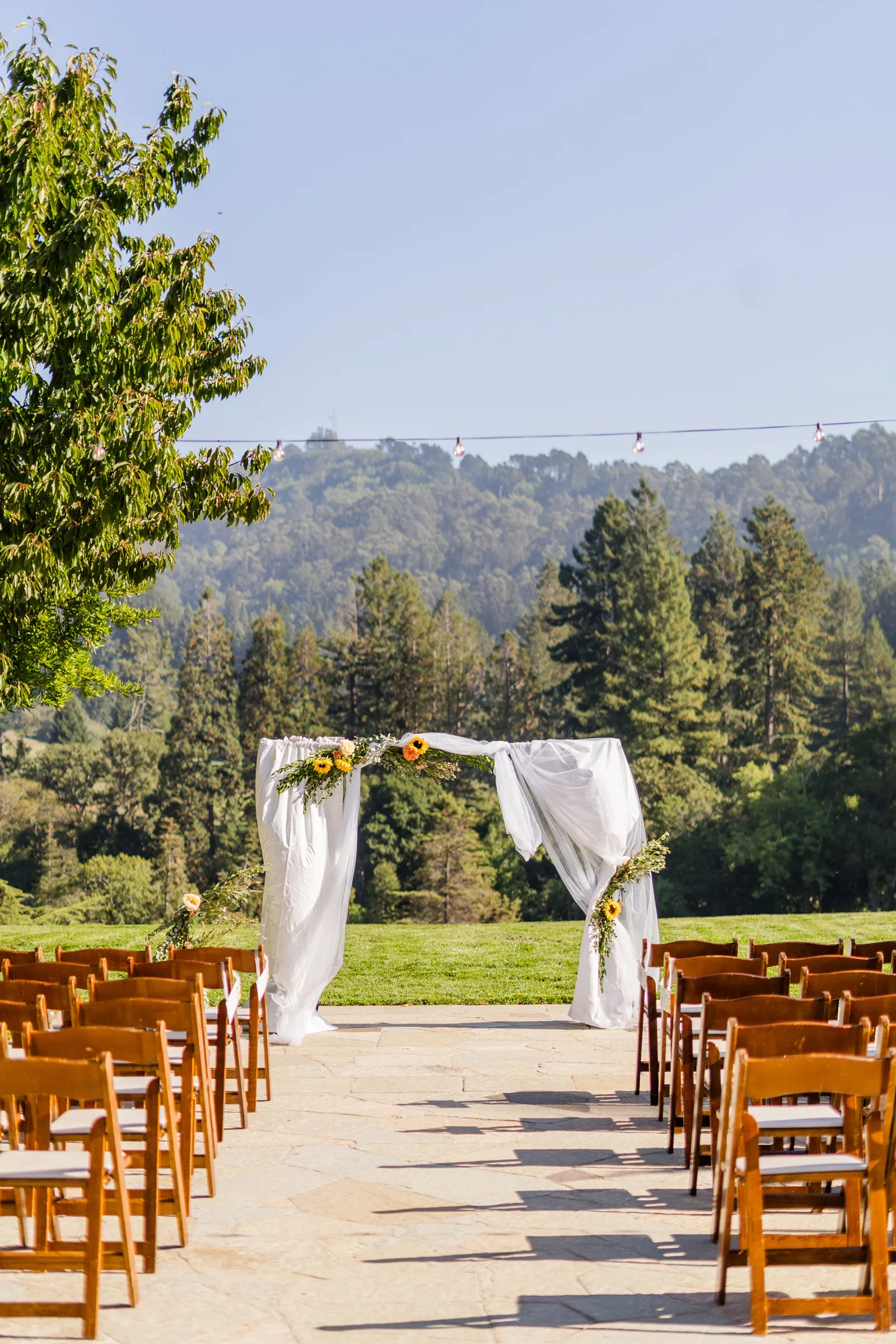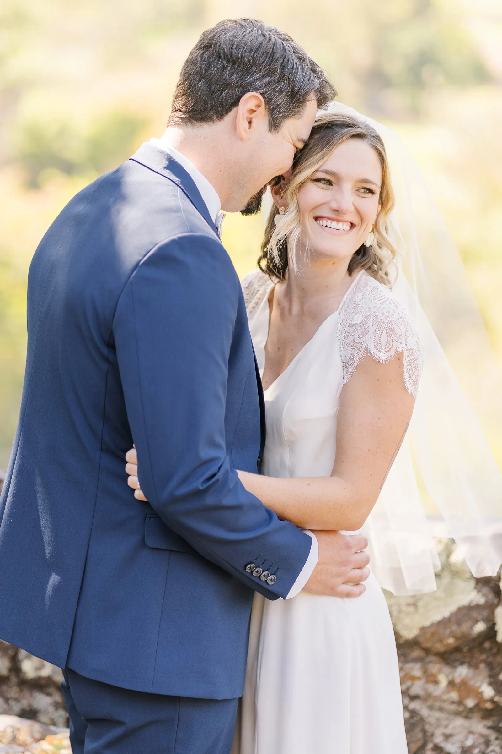 September of 2021 we went on a hike with a group of our closest friends in the same regional park as our venue. Under the guise of one of them moving away to nursing school the next day (“One last Berkeley hike before Fiona leaves!”). When we reached the peak, the groom said to the bride, “Let’s take a family photo!” (with our dog); then shocked the bride by getting down on one knee. Friends recorded the whole thing, and had brought champagne in their backpacks.