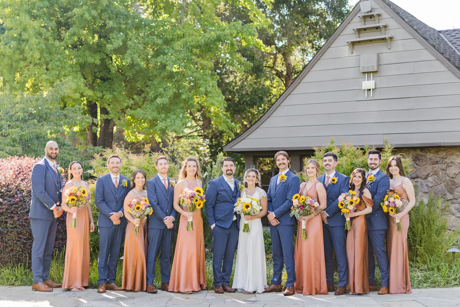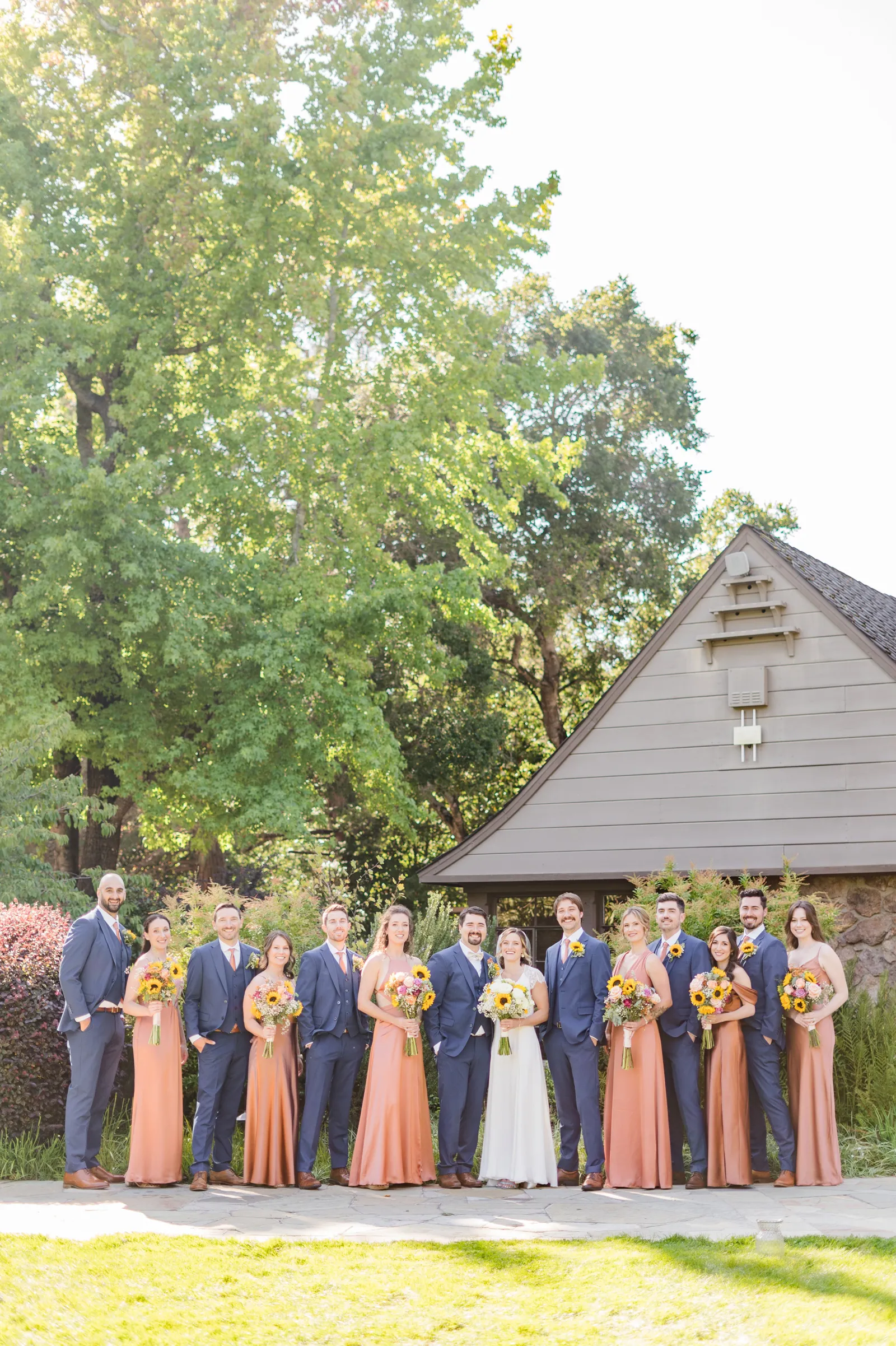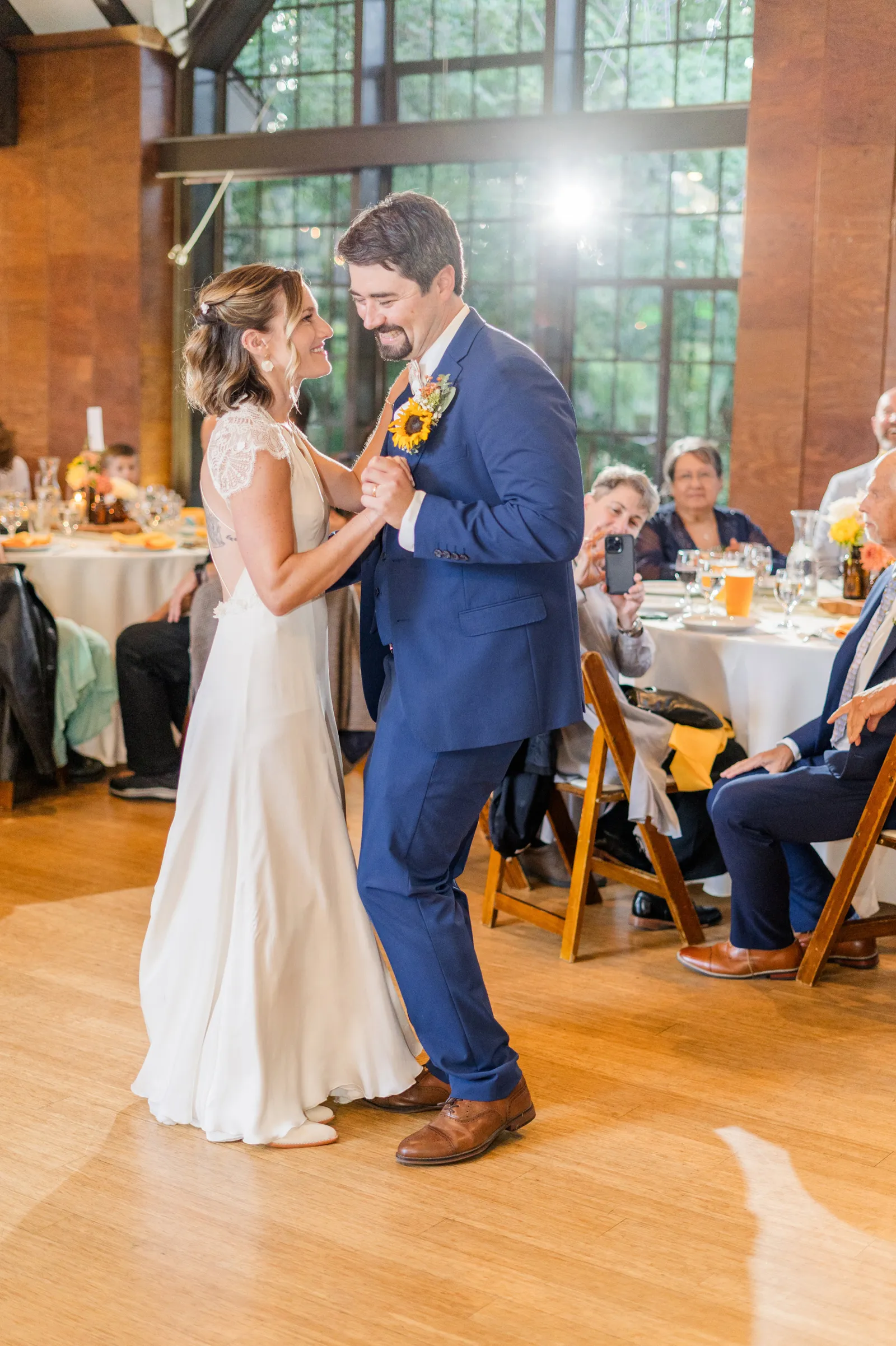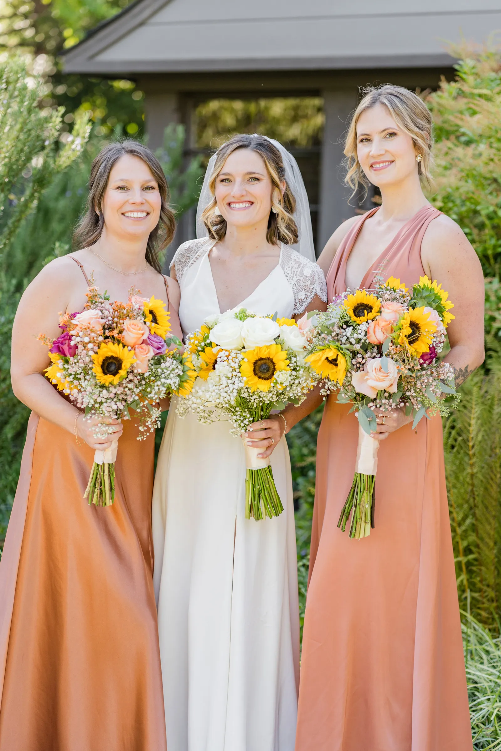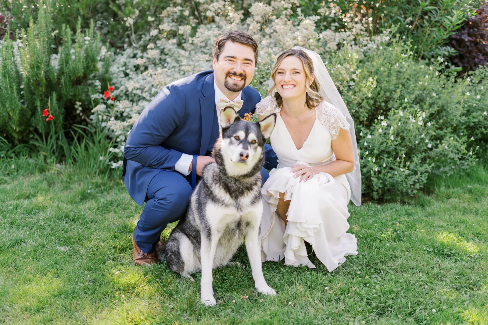 Sunflowers. We wanted our families to get together for a happy occasion… and have fun. We wanted outdoor/indoor, and luckily wildfire smoke cooperated (somewhat). We wanted our mutual friend and matchmaker to officiate. We wanted to take a few photos with our dog. These were our biggest expectations.