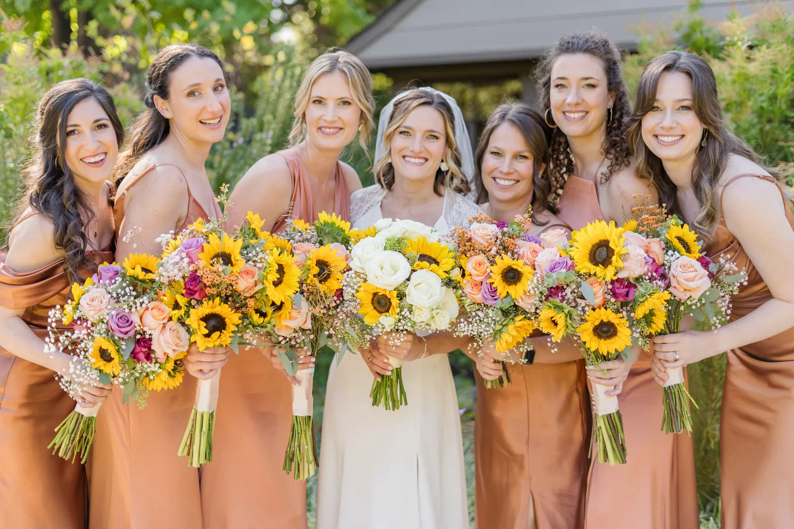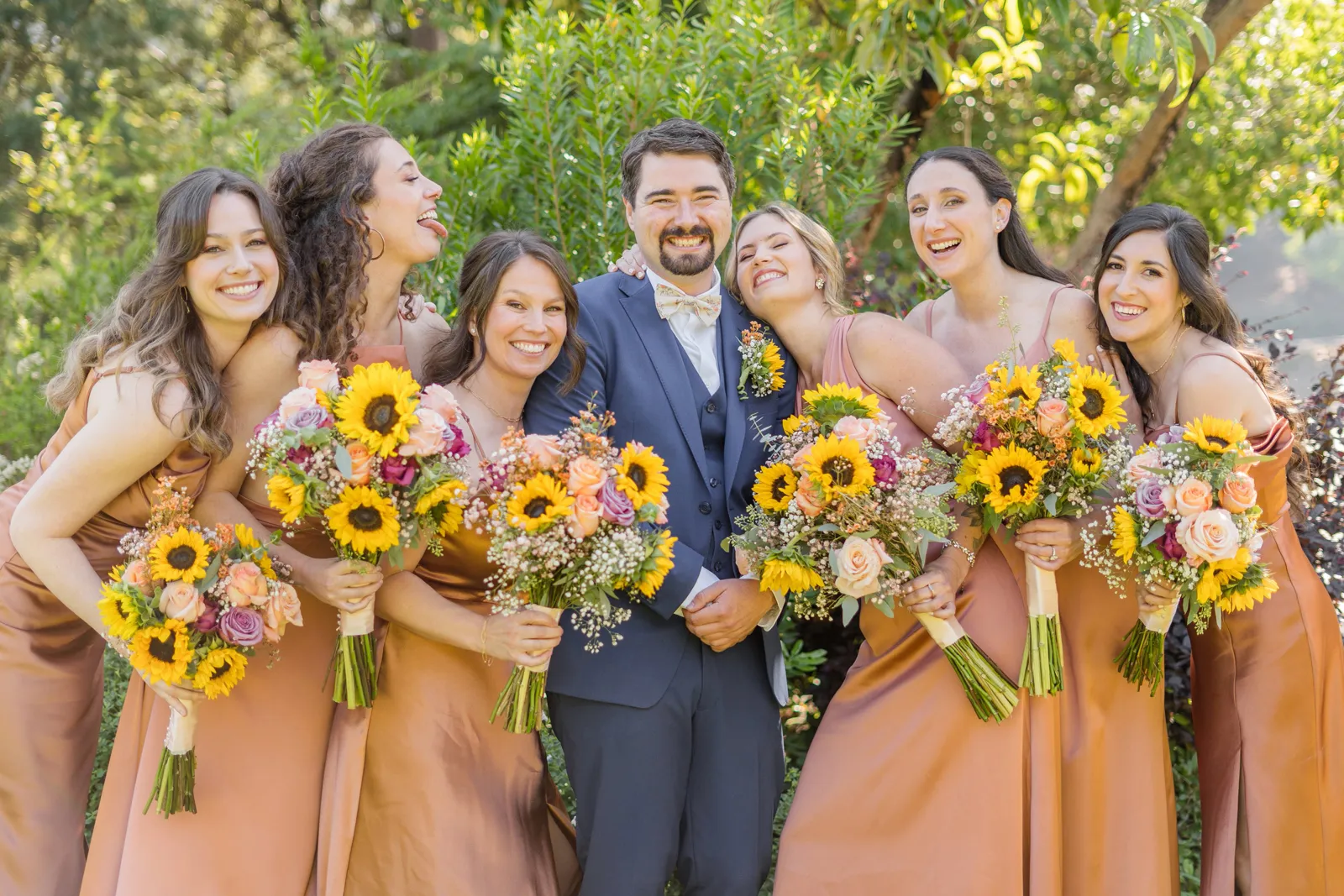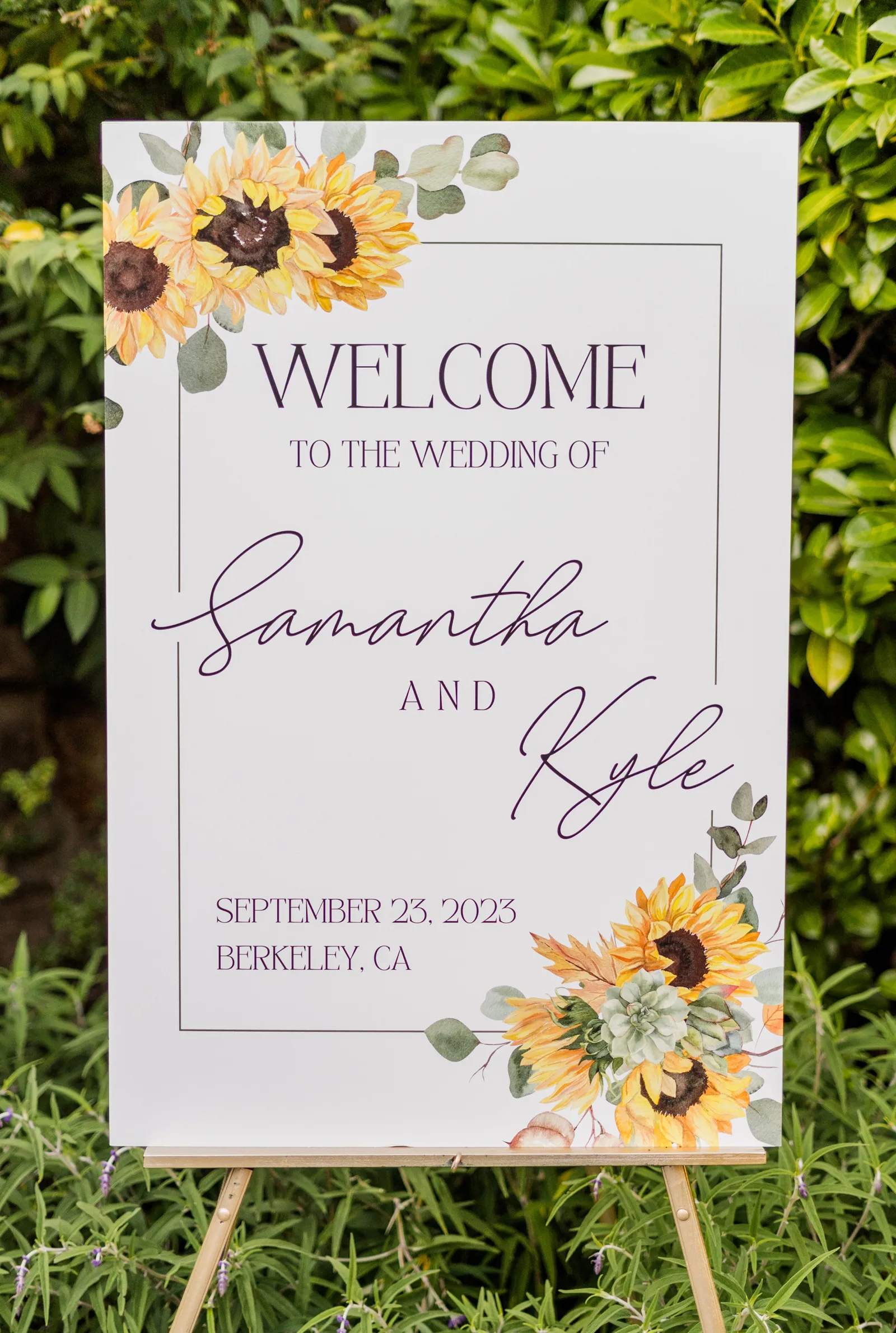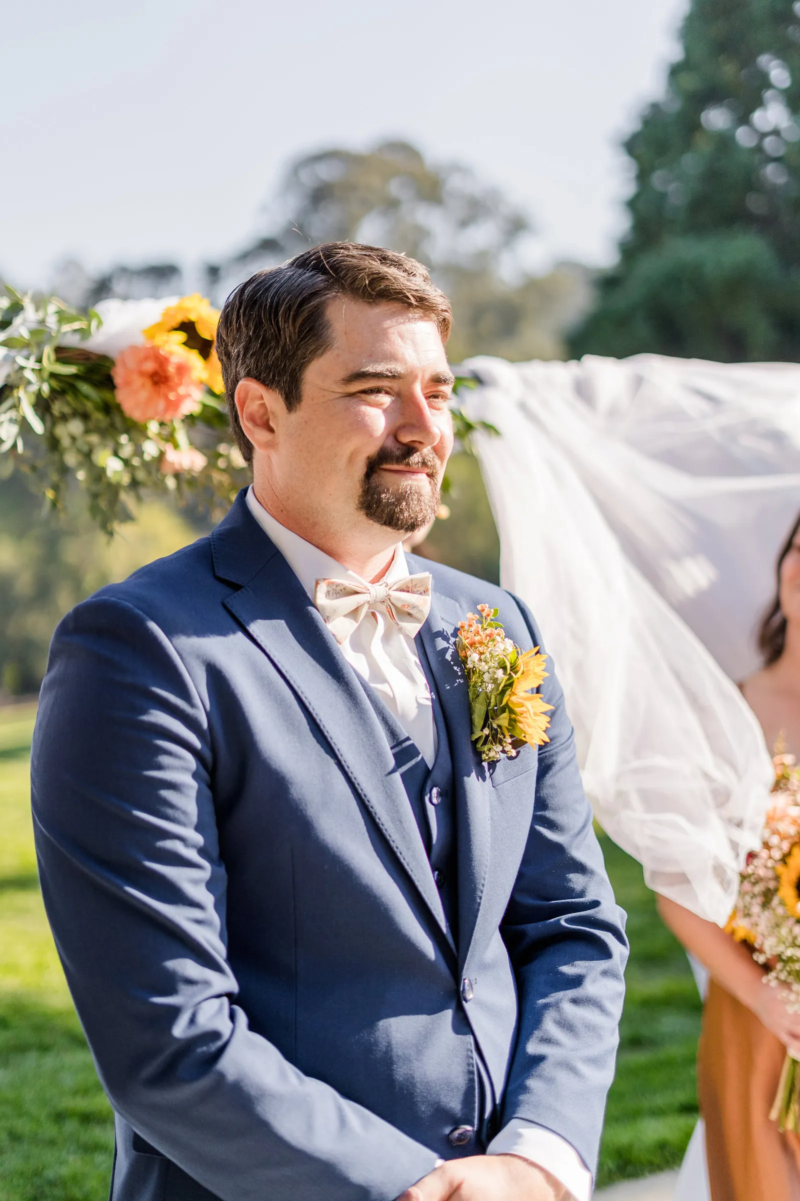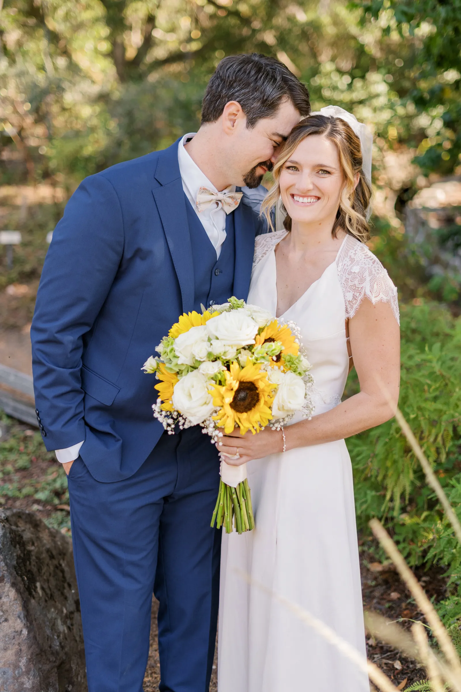 Sunflowers. We wanted our families to get together for a happy occasion… and have fun. We wanted outdoor/indoor, and luckily wildfire smoke cooperated (somewhat). We wanted our mutual friend and matchmaker to officiate. We wanted to take a few photos with our dog. These were our biggest expectations.