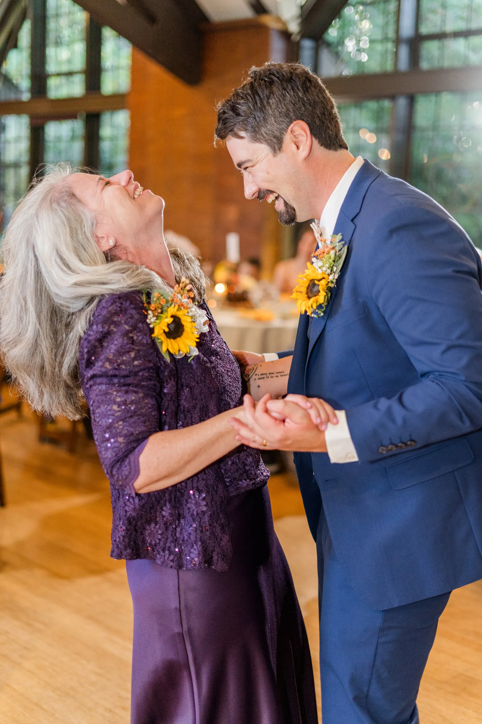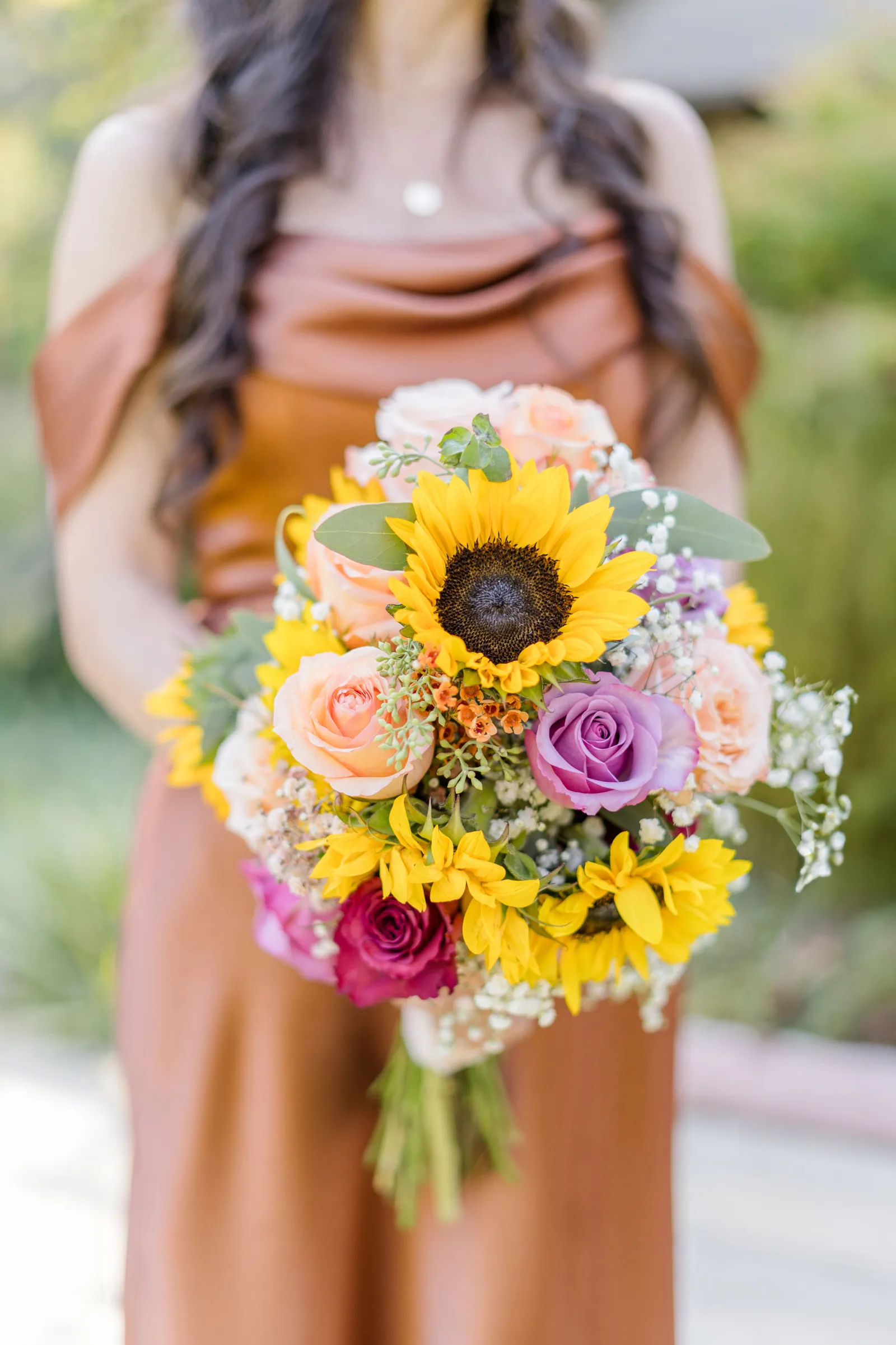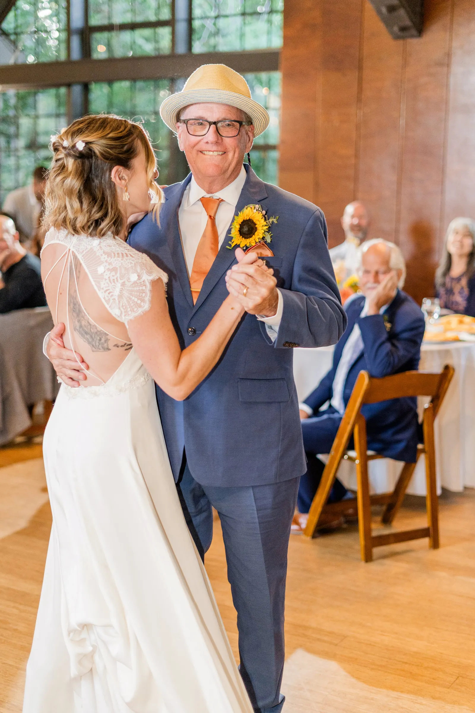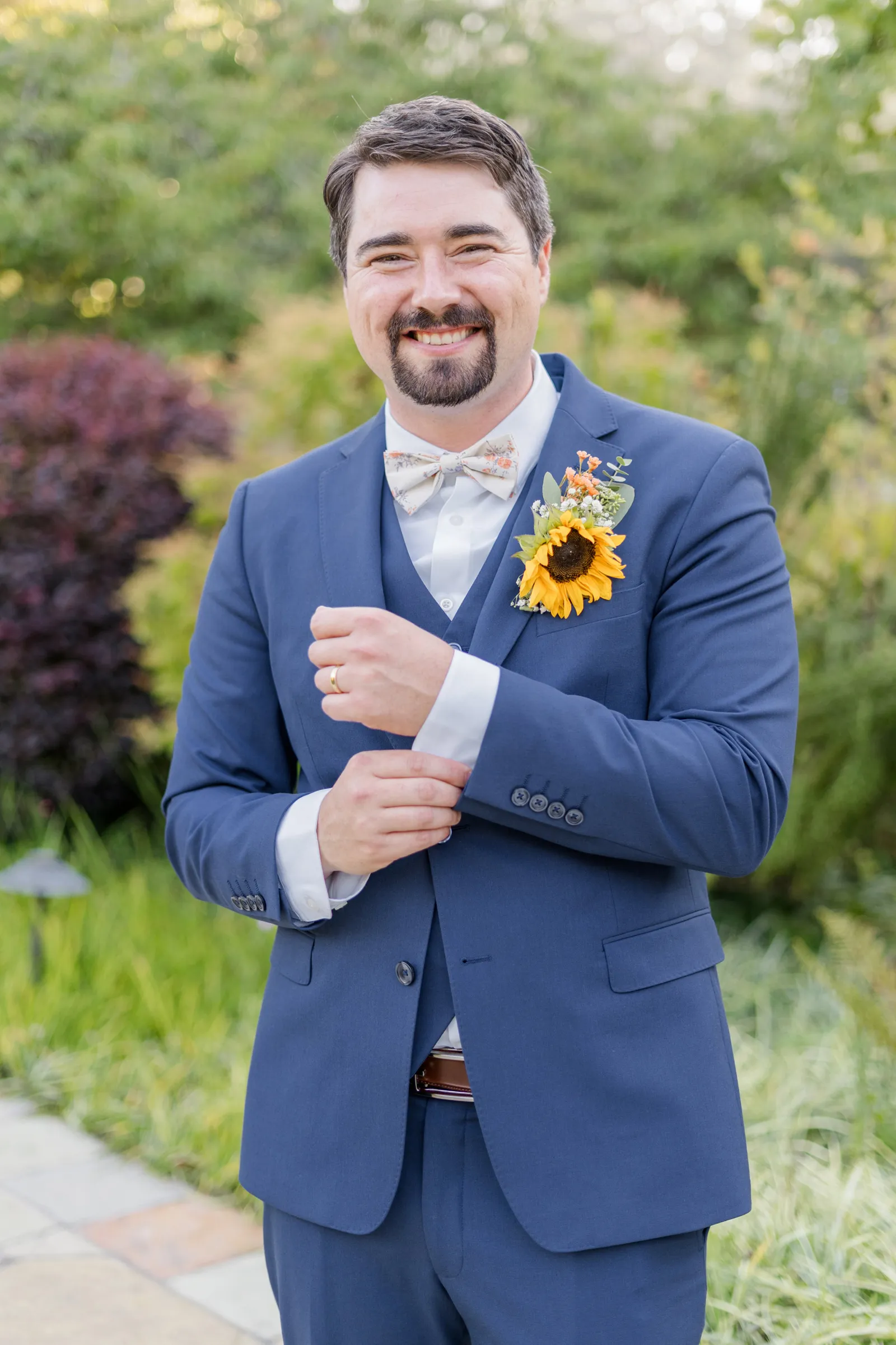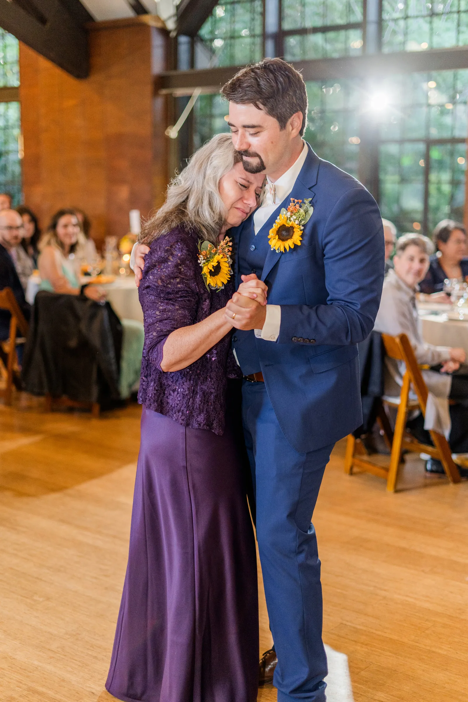Sunflowers. We wanted our families to get together for a happy occasion… and have fun. We wanted outdoor/indoor, and luckily wildfire smoke cooperated (somewhat). We wanted our mutual friend and matchmaker to officiate. We wanted to take a few photos with our dog. These were our biggest expectations.