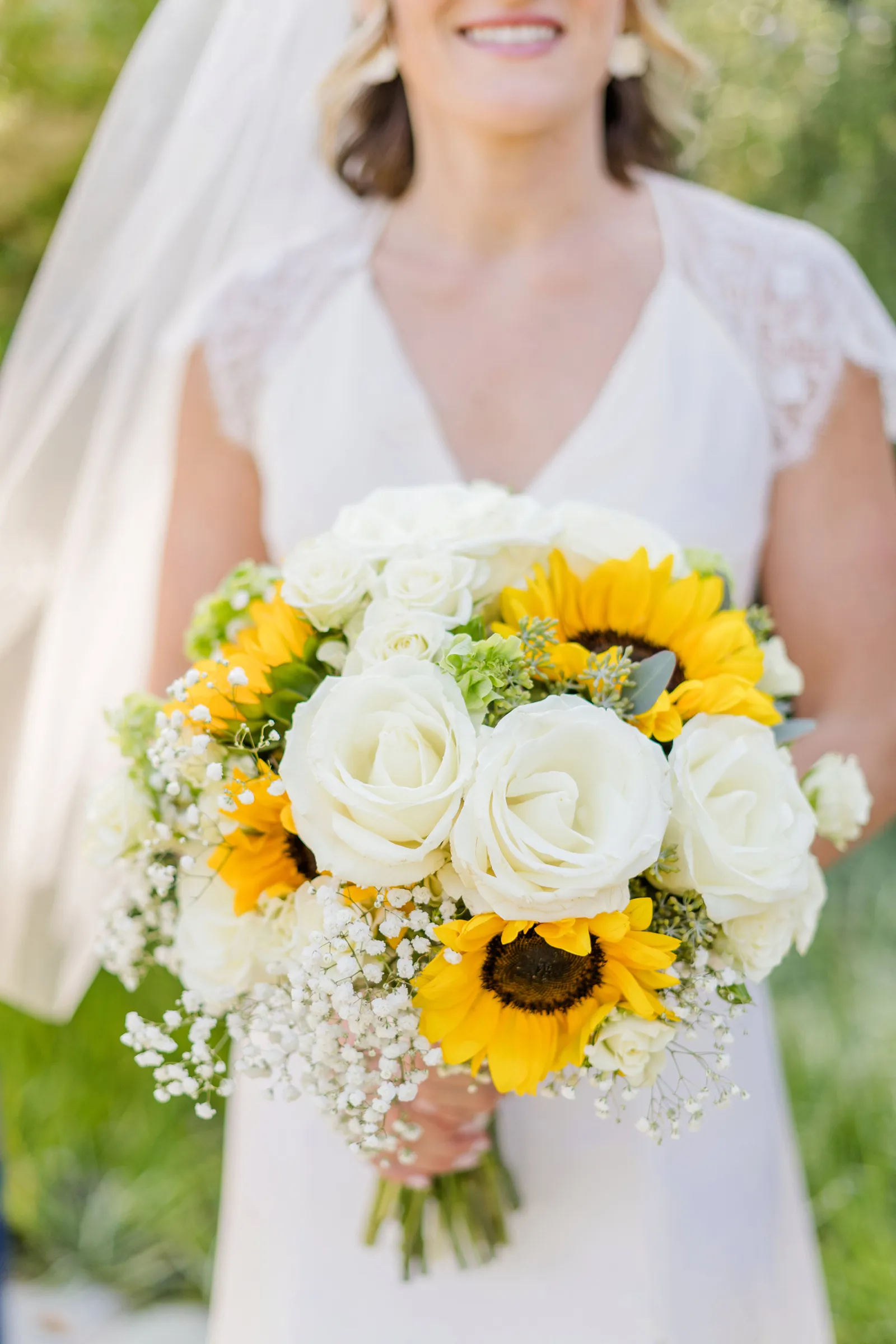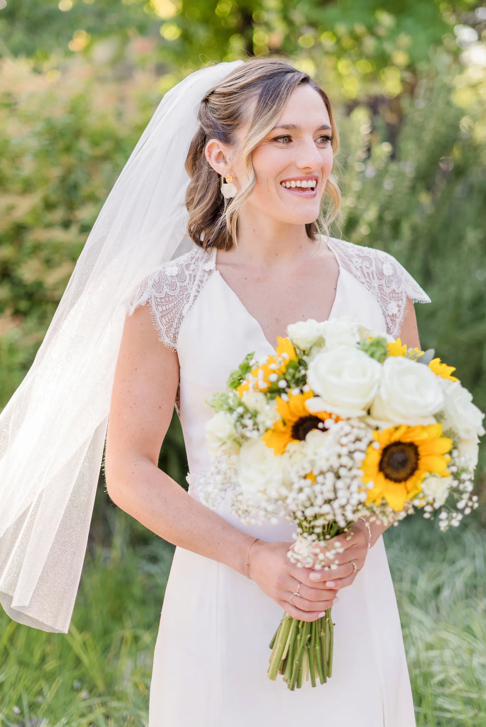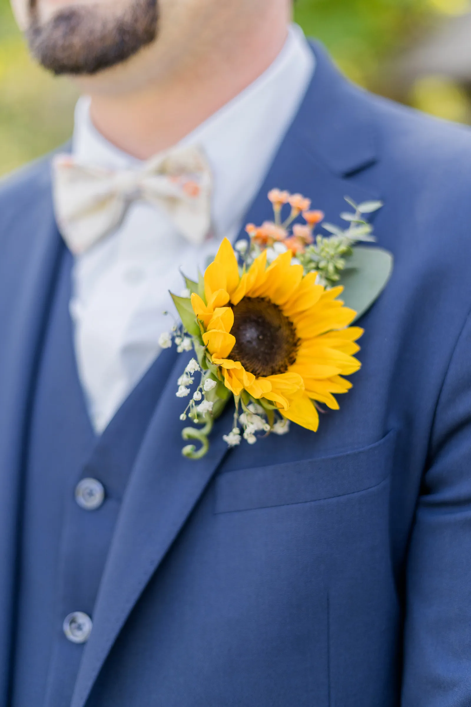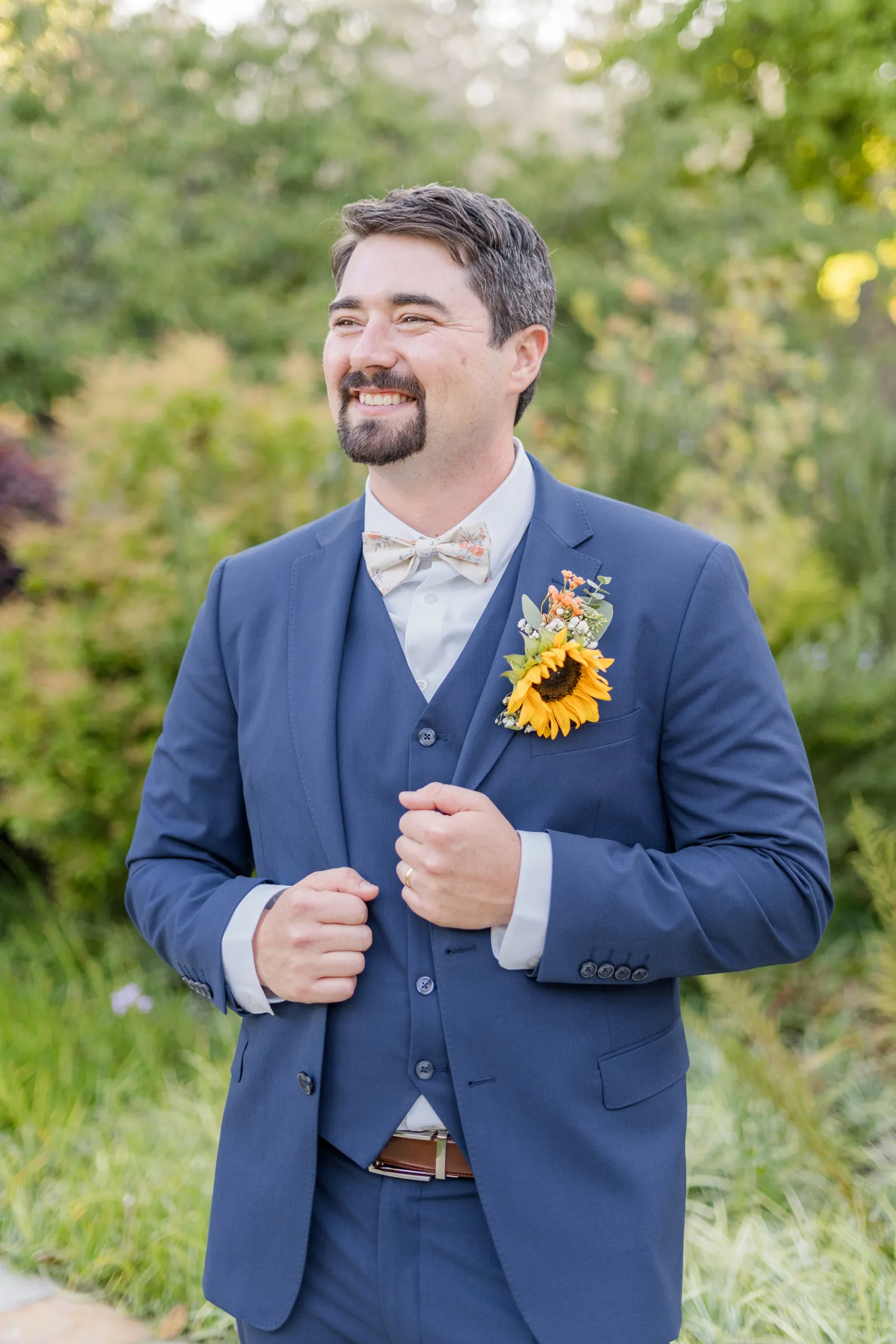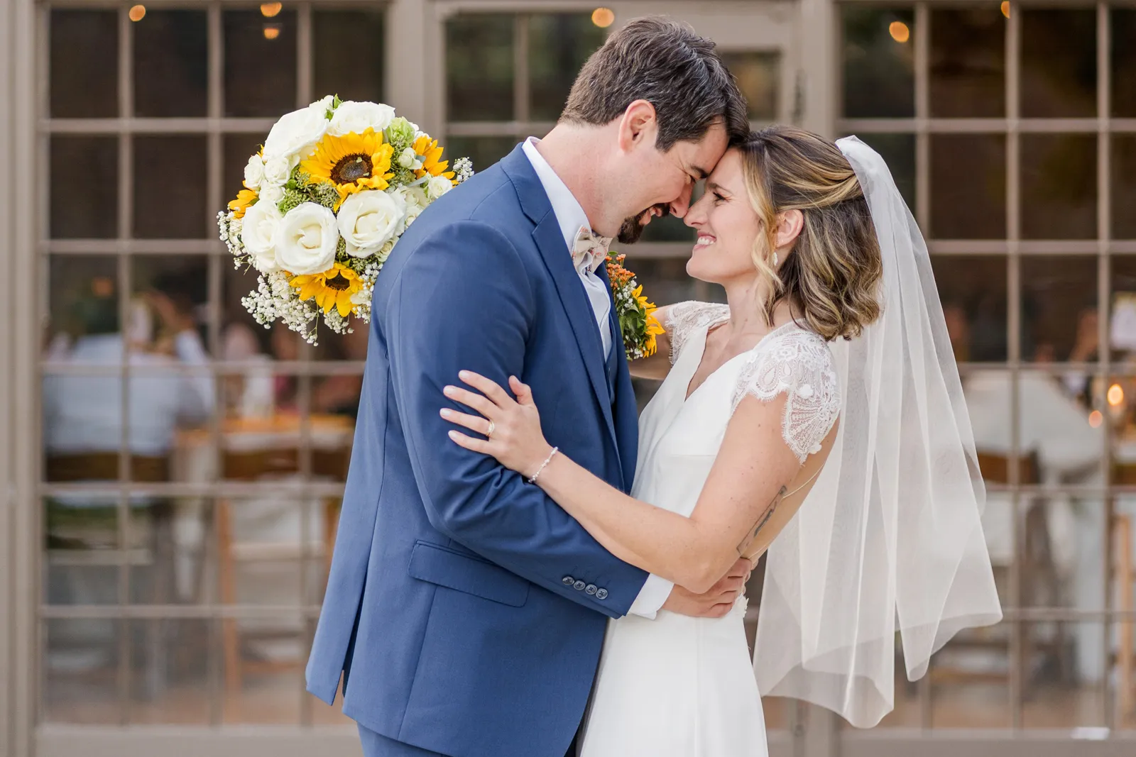 Sunflowers. We wanted our families to get together for a happy occasion… and have fun. We wanted outdoor/indoor, and luckily wildfire smoke cooperated (somewhat). We wanted our mutual friend and matchmaker to officiate. We wanted to take a few photos with our dog. These were our biggest expectations.