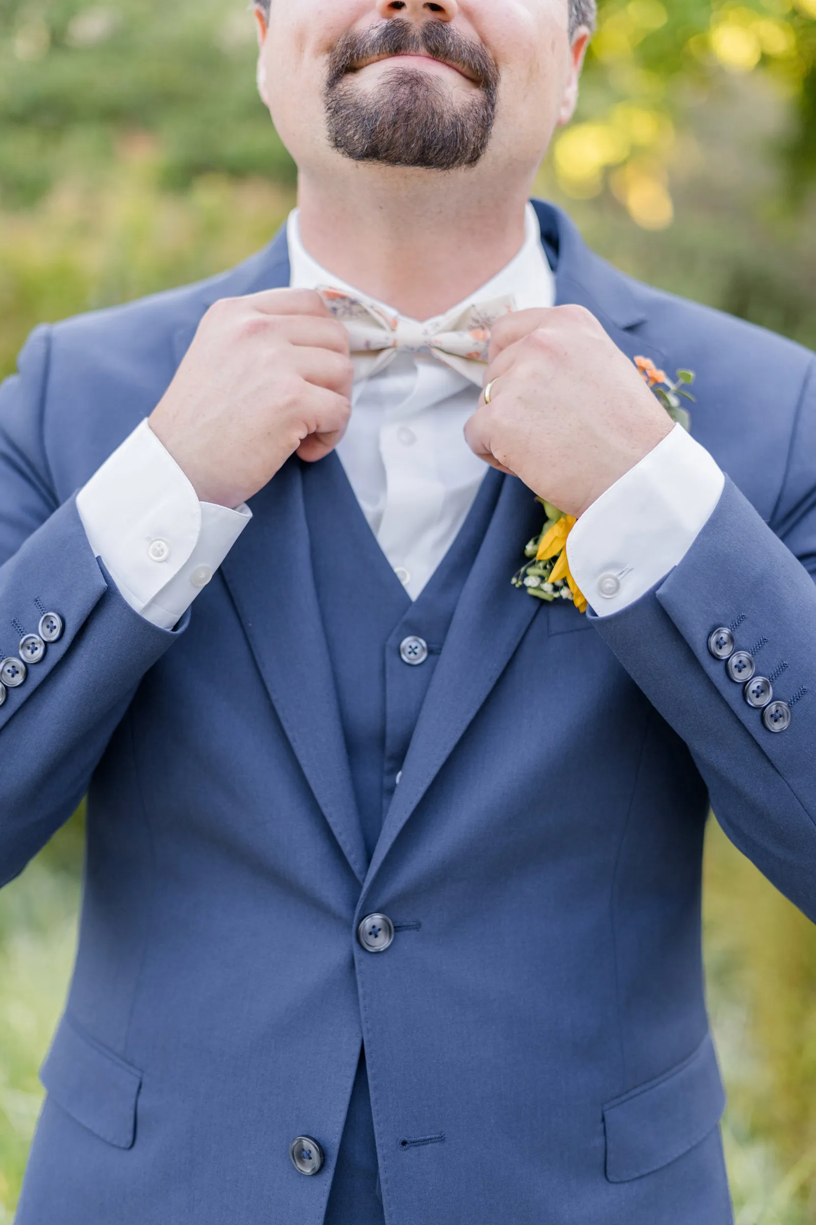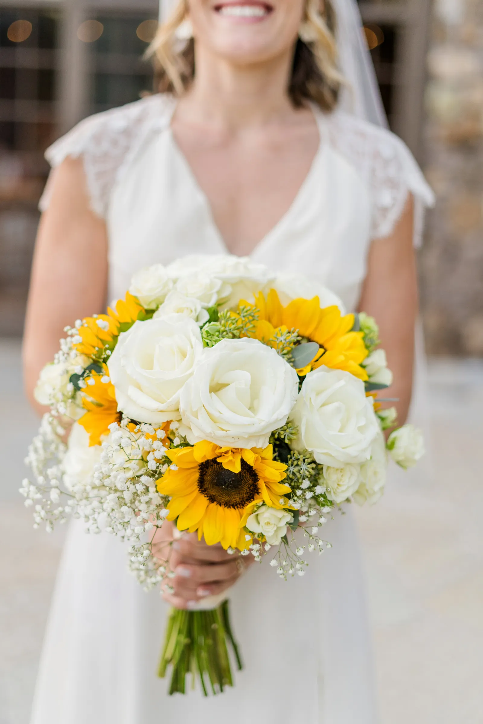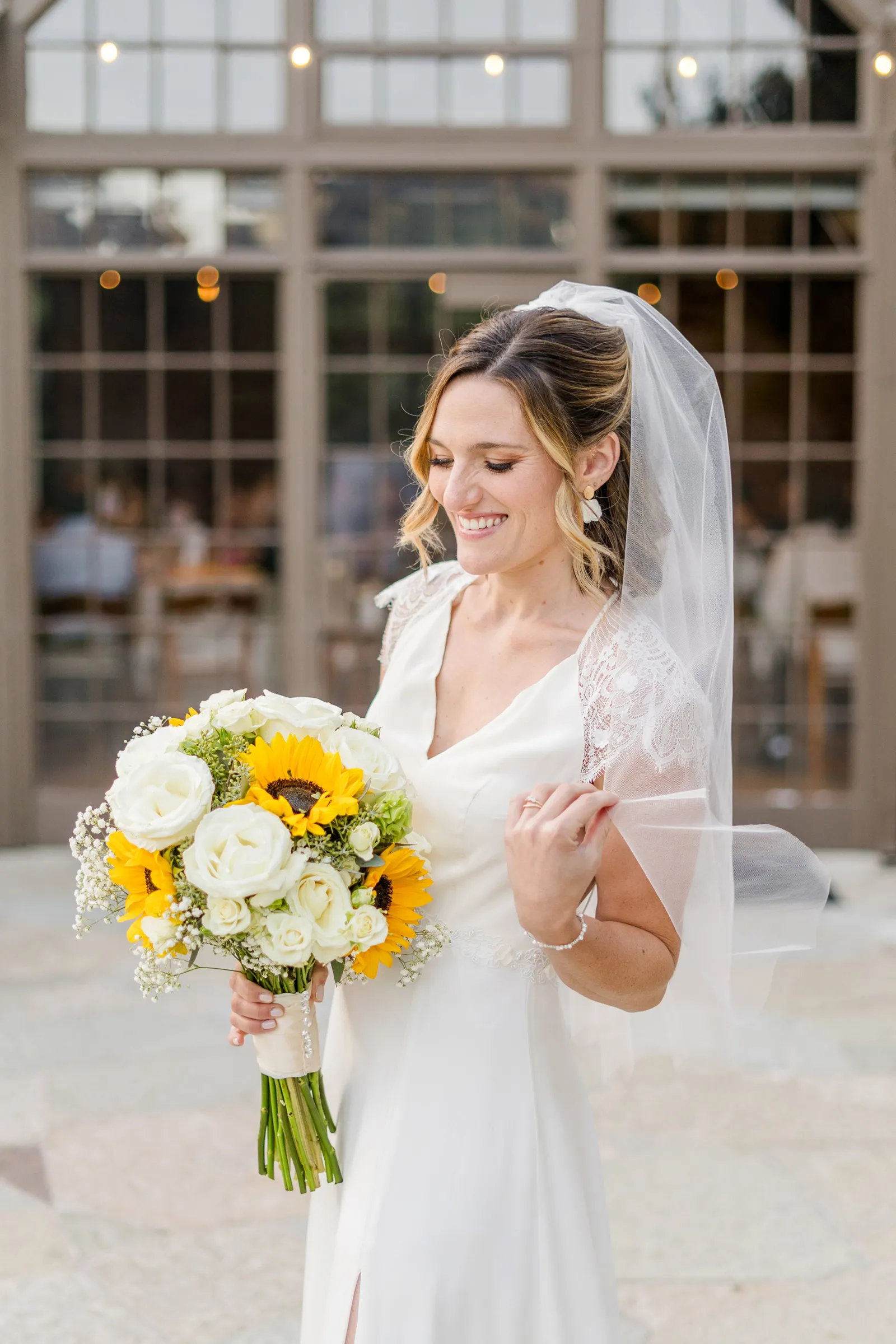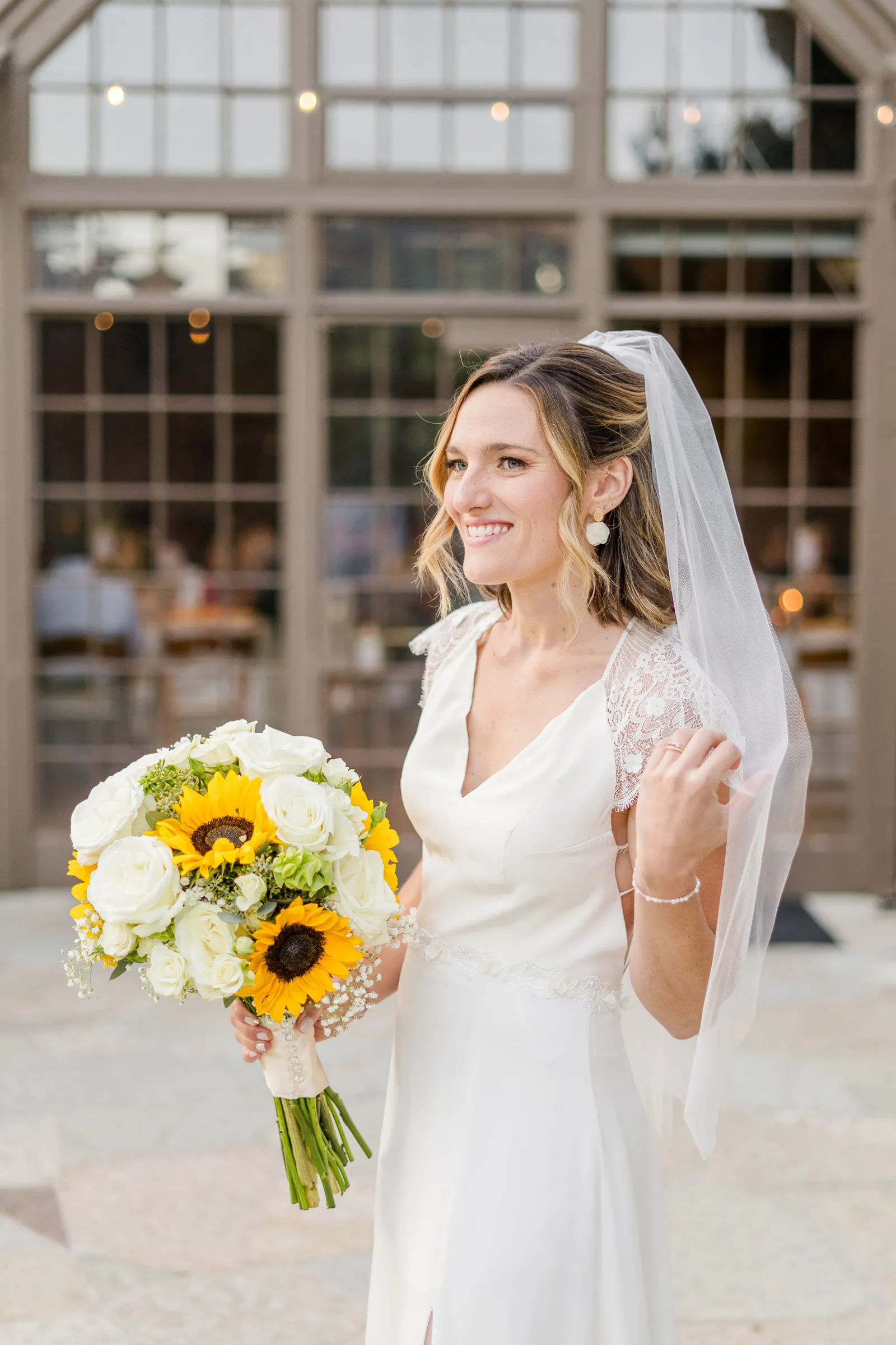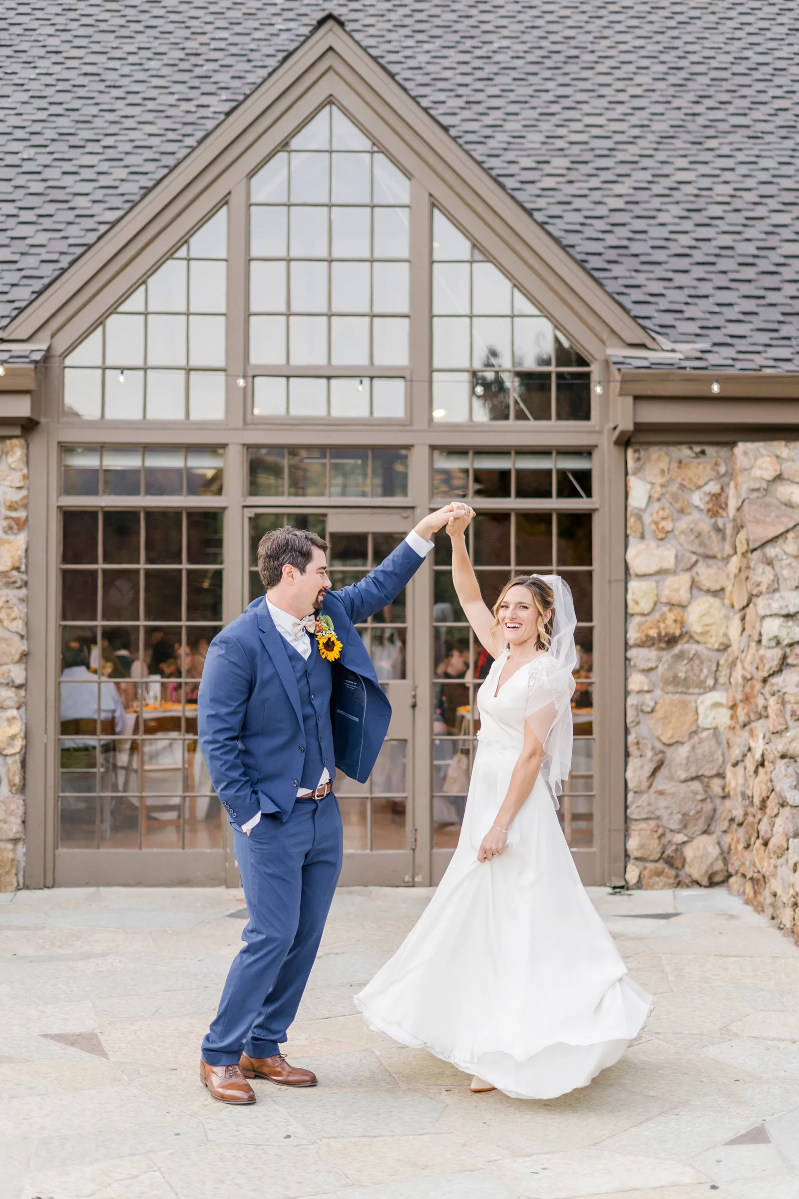 Sunflowers. We wanted our families to get together for a happy occasion… and have fun. We wanted outdoor/indoor, and luckily wildfire smoke cooperated (somewhat). We wanted our mutual friend and matchmaker to officiate. We wanted to take a few photos with our dog. These were our biggest expectations.