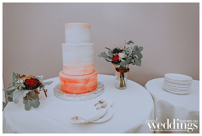 Wedding planning was made easy, as both Sam and Nick knew their unique selves and hired plenty of talented and hard-working vendors to help express their perfect vision. “We had the dream team of wedding vendors!” says Sam.And as the winning couple of Above & Beyond Cakes’ “Wedding Sweets Giveaway,” they were able to truly personalize their cake. Each tier of the three-tier cake was a different flavor: churro cake with pumpkin spice cream cheese frosting, chocolate cake with Oreo frosting and strawberry Champagne cake with cheesecake mousse.