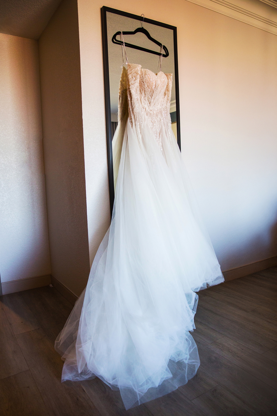 It took an extra long time trying to get my gown bustled (seven bustles!) before making the grand entrance. Once I sat down, two bustles got stuck on the chair and broke, so the rest of the night I rocked the dress with the train down. We laughed it off!