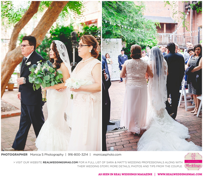 Breaking with both American and Mexican tradition, Sara had both her mother and her father walk her down the aisle.