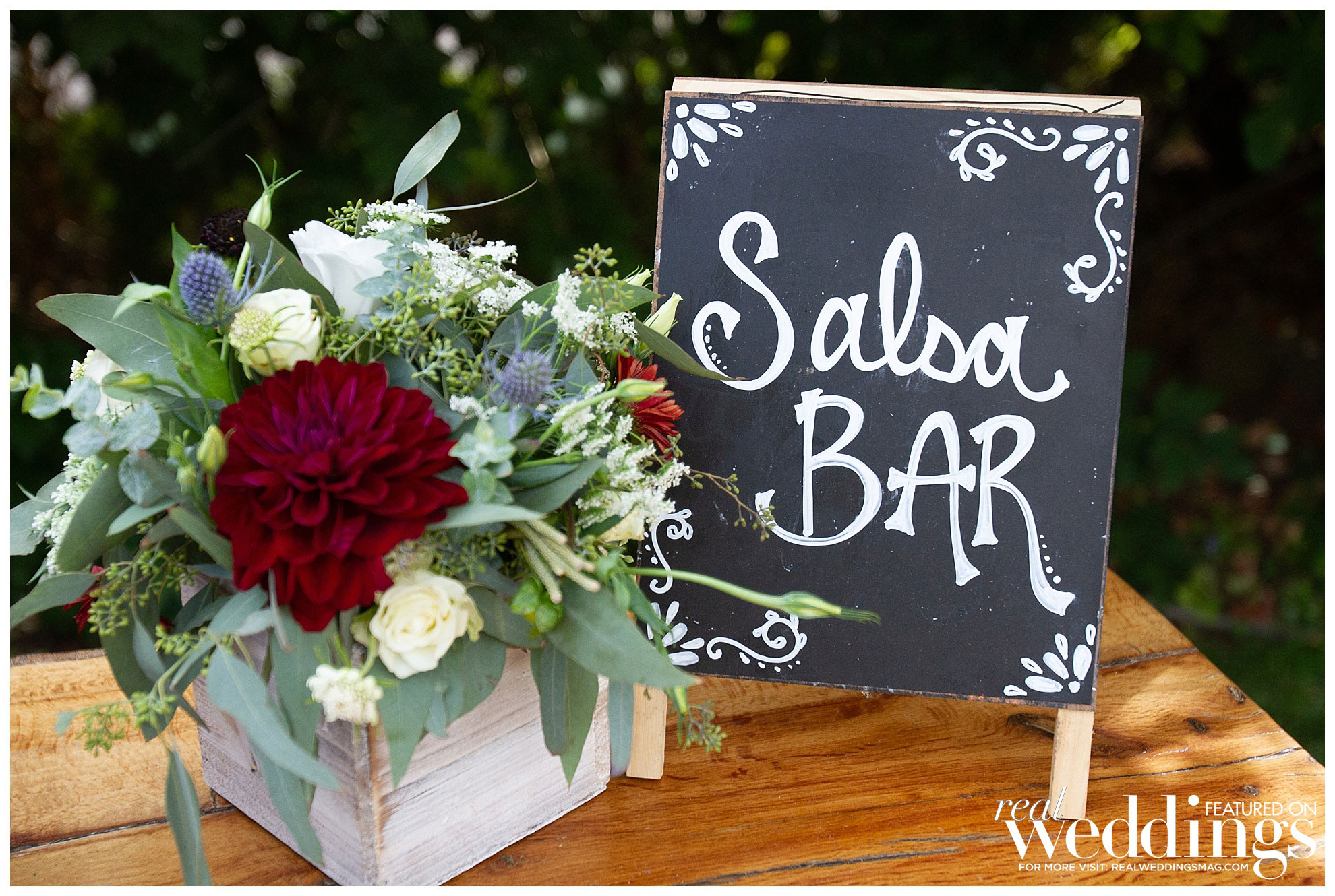 One of Sarah’s most memorable moments of the evening was her father-daughter dance. “We both cried and had a very real and candid conversation while we danced,” she remembers. For a bit of humor, the bride “iced” her groom with a Smirnoff Ice strapped to her leg when he went in for her garter. “He got that instead and had to throw it back before we could proceed,” she laughs. “It has been an ongoing joke with all of his friends to ice each other, so I thought it was only fitting.”