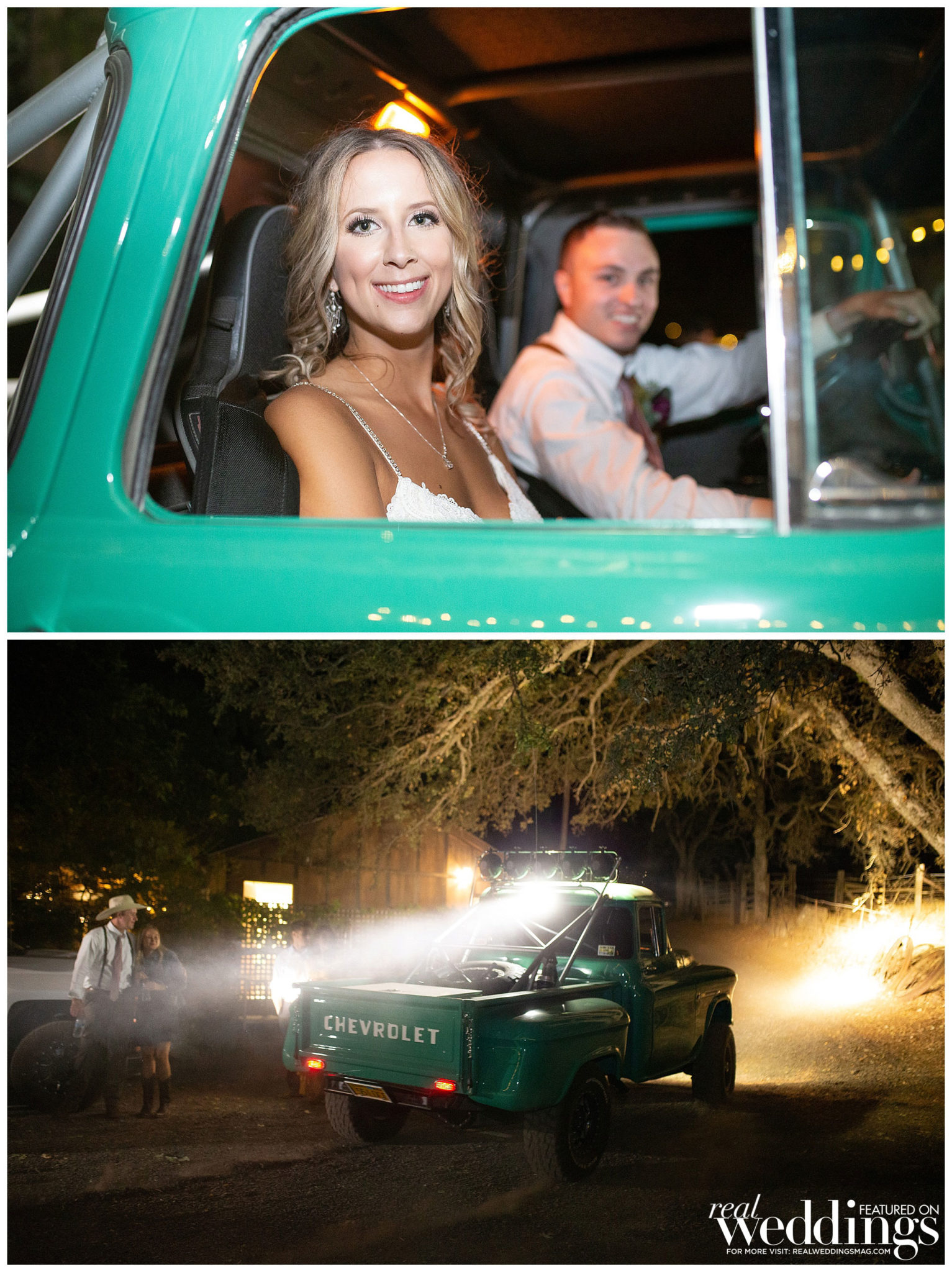 As they exited the reception, the newlyweds were given a send off in a cloud of bubbles by their guests and drove away in Sarah’s dad’s green 55 Chevy Baja race truck. “This was Connor’s dream come true.”