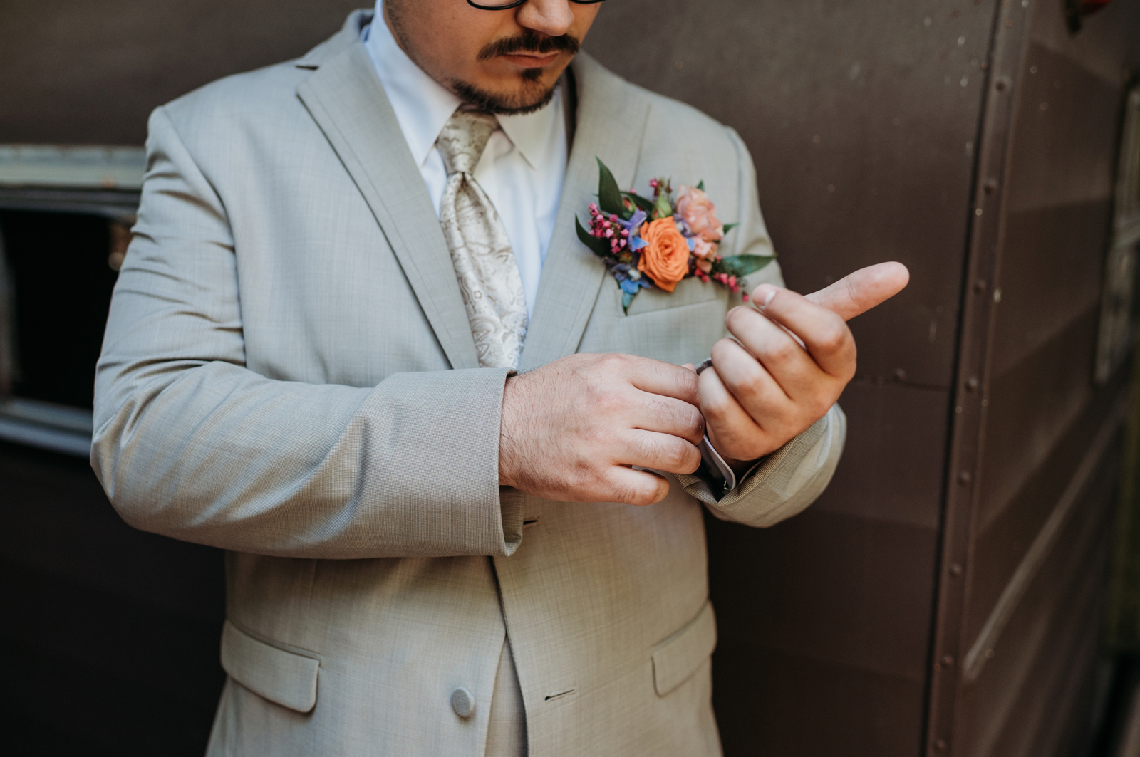 Hunter says that the best part of the day was having his family, from near and far, there to celebrate with us. He was especially grateful that his brother Blake was able to not only get the time off from being a Marine but was also able to fly all the way out from Maryland. Blake was his Best Man and made sure that Hunter felt as celebrated as the Bride. The morning of the wedding while the ladies were getting their hair and makeup done, the Groomsmen were able to relax in the hotel sauna.