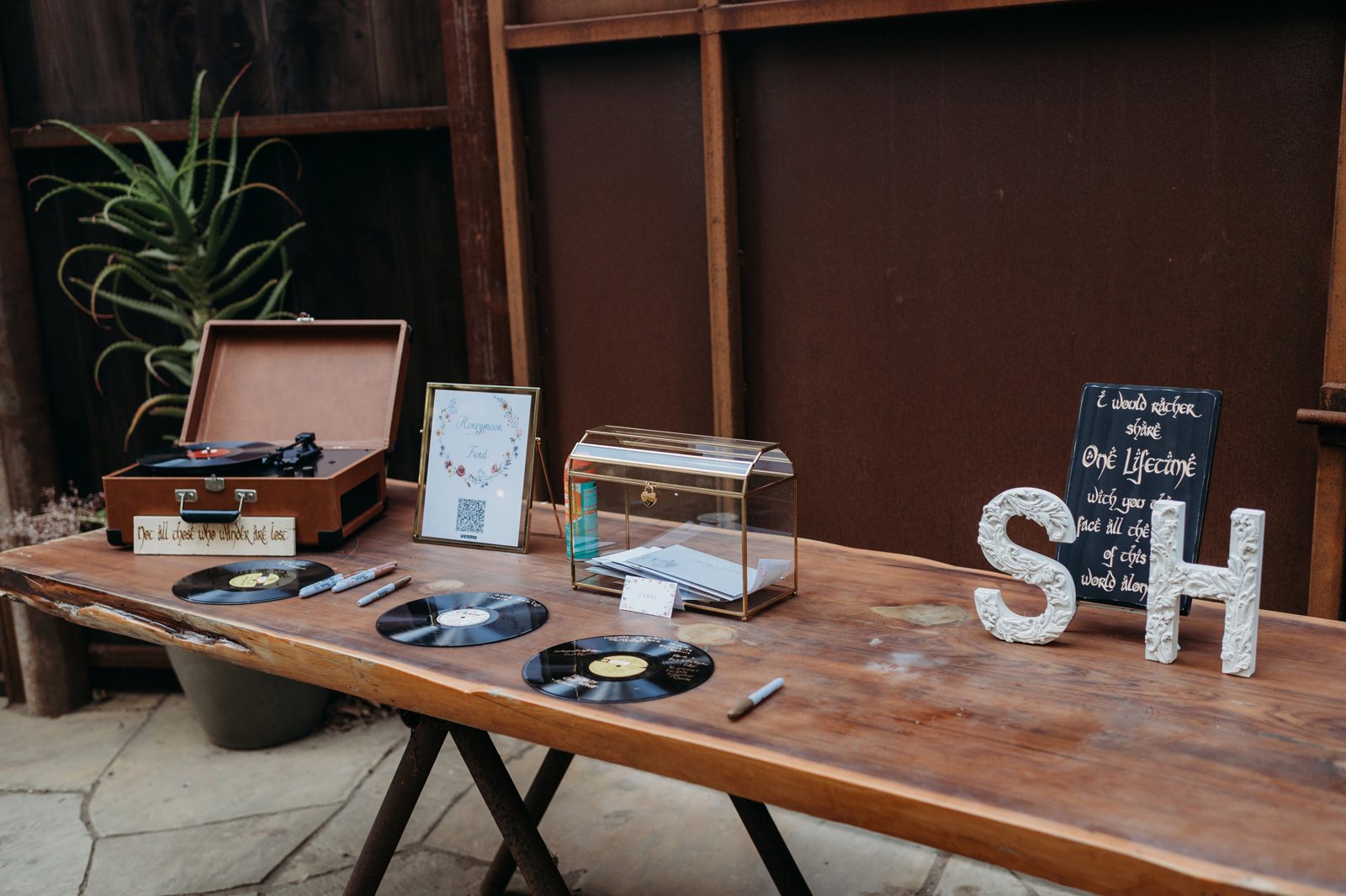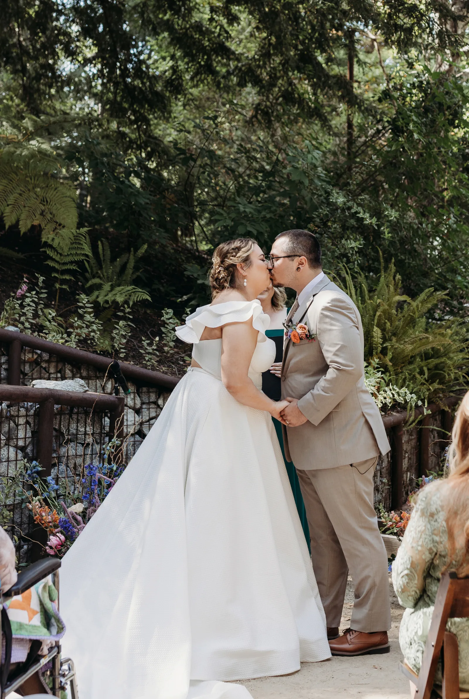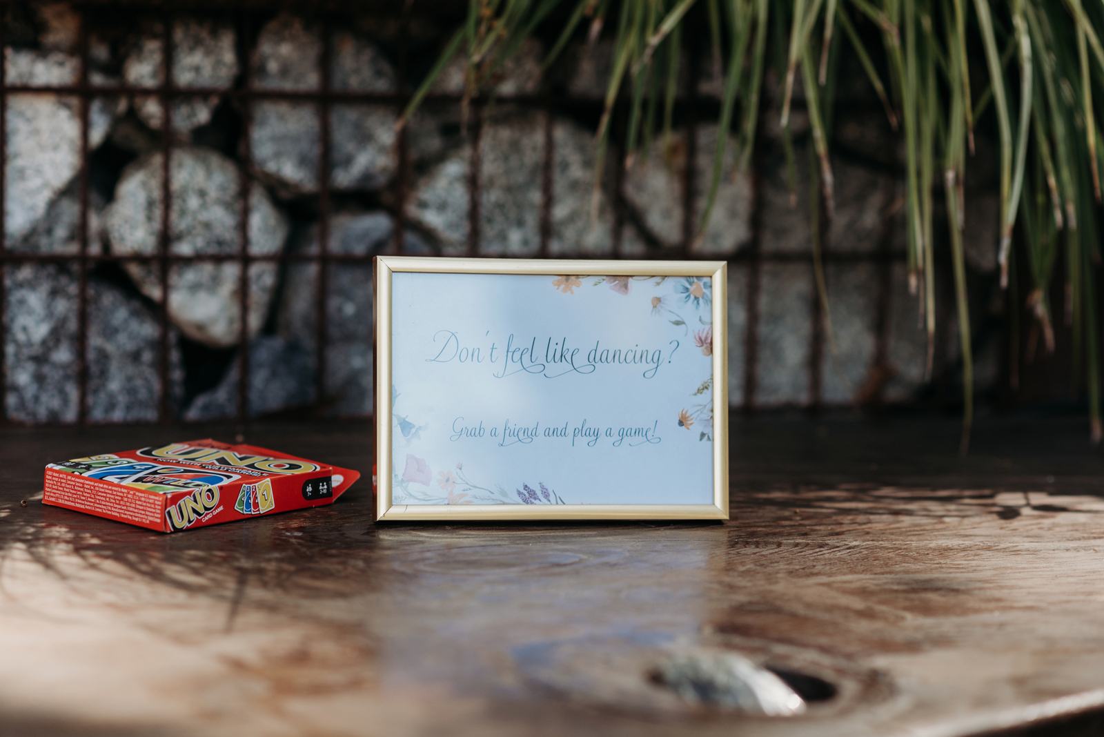 One moment that was unexpected was the first song played, the one that our officiant, Sara, walked down the aisle to. It was supposed to be an instrumental song from The Lord of the Rings but there was a miscommunication and the song “Wish You Were Here” by Pink Floyd was played instead. That song was chosen by Hunter to be played at a different time as a way to honor his dad, Bob, who passed in 2020. Bob was a huge Pink Floyd fan and having it play while Sara walked down the aisle was the perfect mistake. It felt to us like Bob wanted us to know he was there with us.