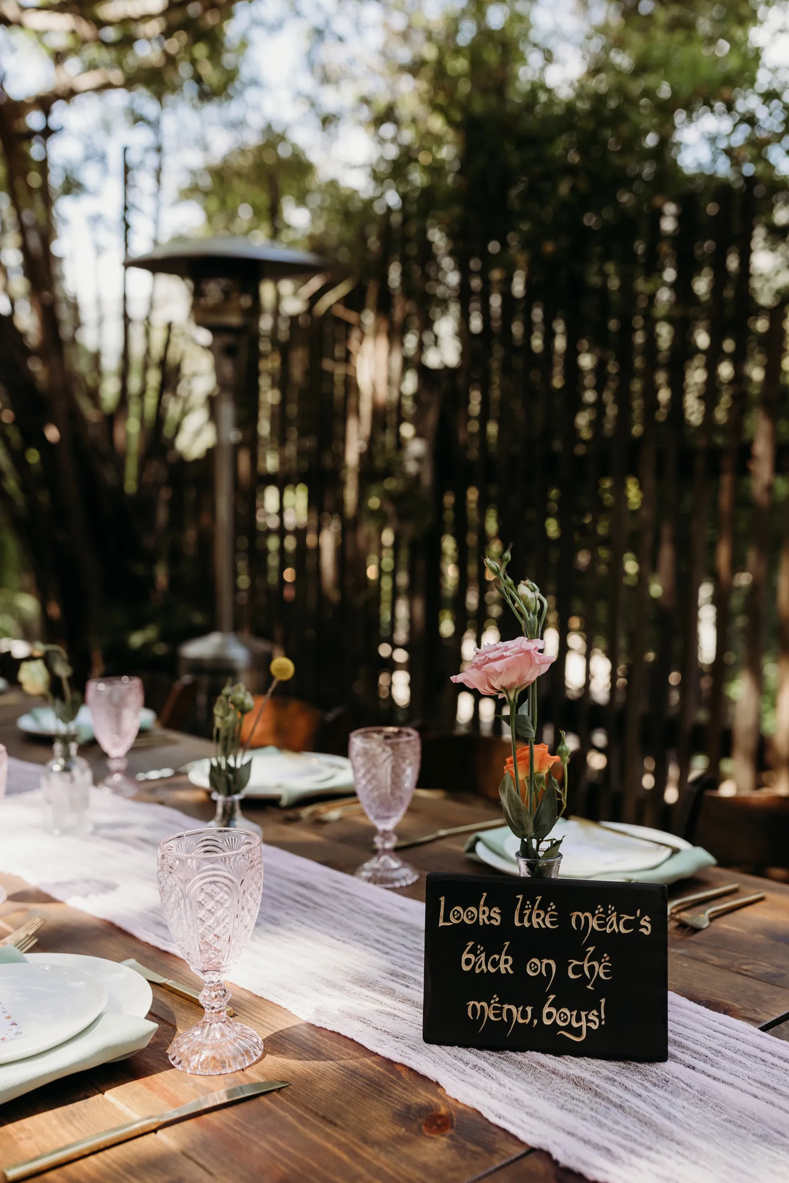We hoped for the evening of the wedding to feel like our family and friends were having dinner in The Shire from