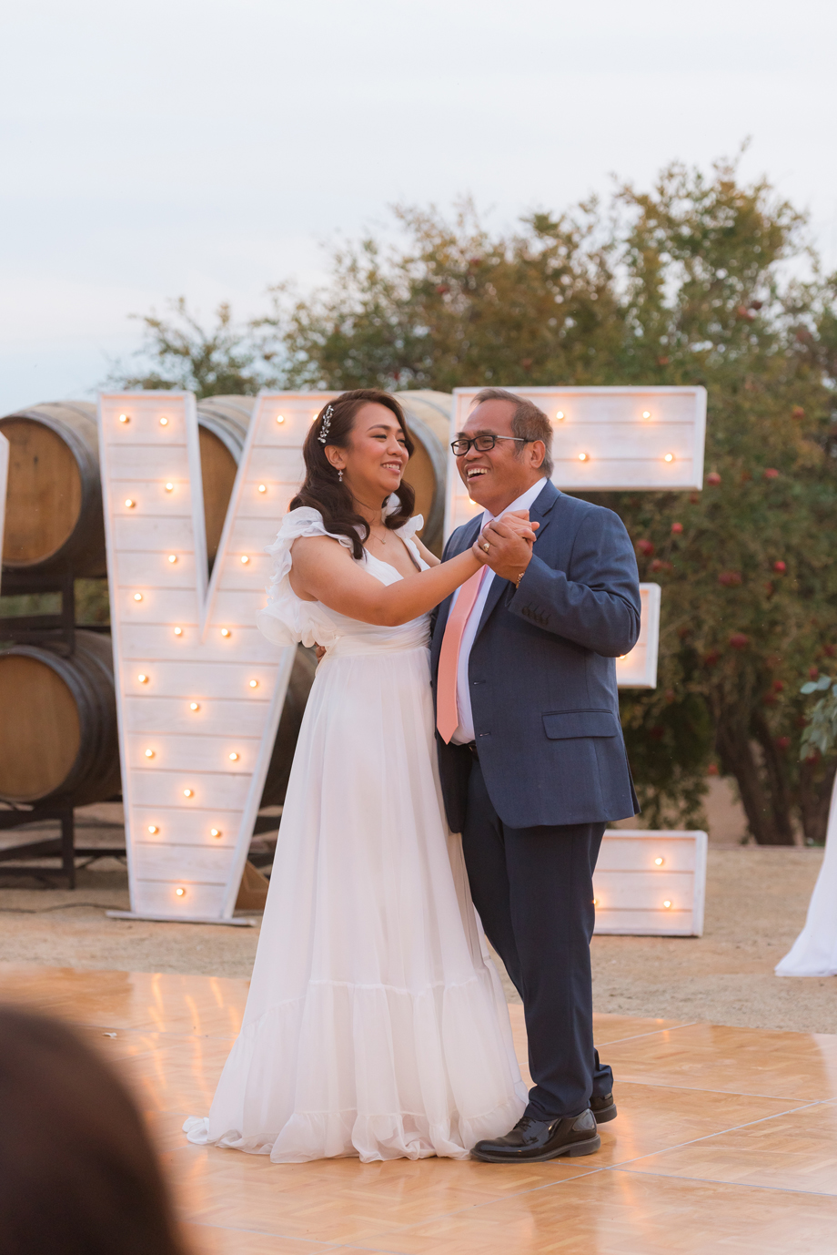 We asked Uncle Alan (Chris’s uncle) to be our officiant. He asked if we wanted to know the details or let it be a surprise. We chose the latter. The “surprise” turned out amazing—a traditional wedding with a nod to my Filipino heritage. Our exchange of vows, filled with sincerity and a dash of humor, was met with happy tears and laughter. We wouldn’t want it any other way.