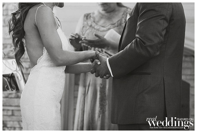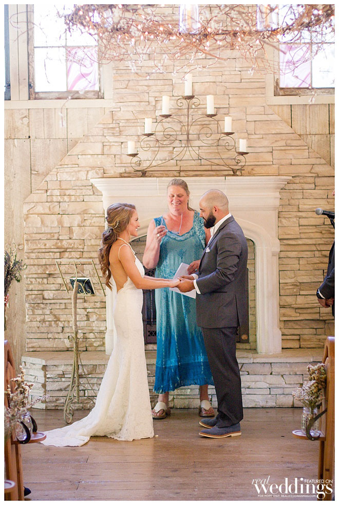 For the ceremony, Sarah and Kyle pulled different pieces from different ceremonies off the web and crafted a ceremony that made the most sense to them. “It was emotional and rewarding to go through the things we wanted to promise each other and write out our very own unique vows,” says Sarah. “We also asked Kyle’s aunt to get ordained and perform the ceremony for us. We wanted someone who we knew and loved to officiate the wedding—that made it particularly special.”