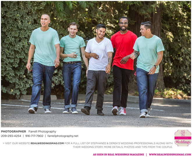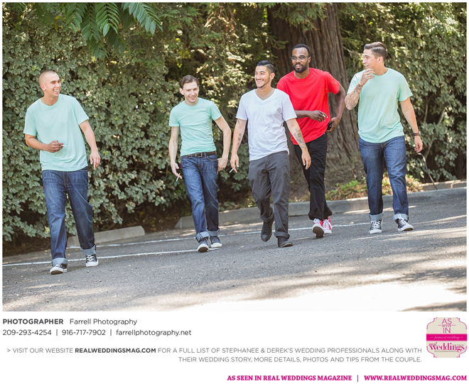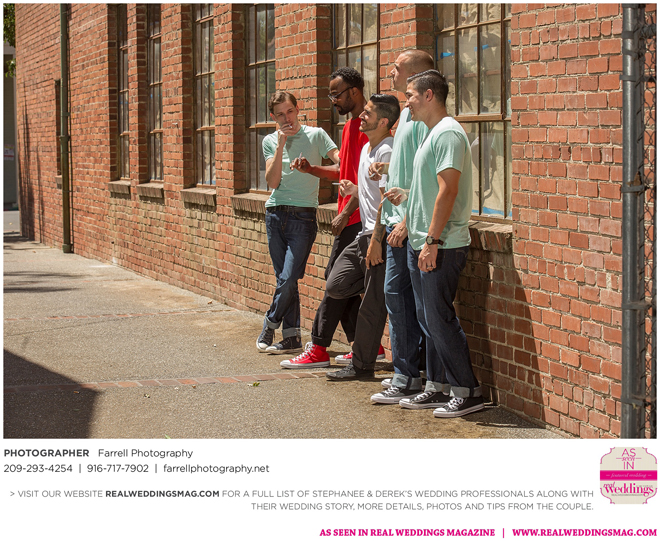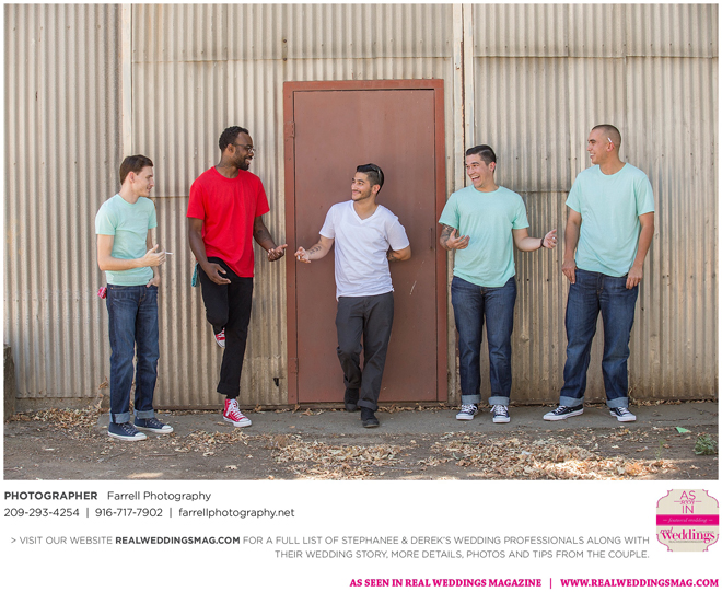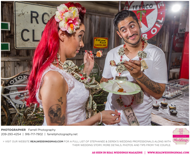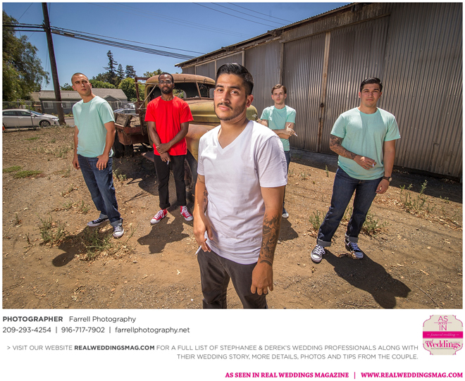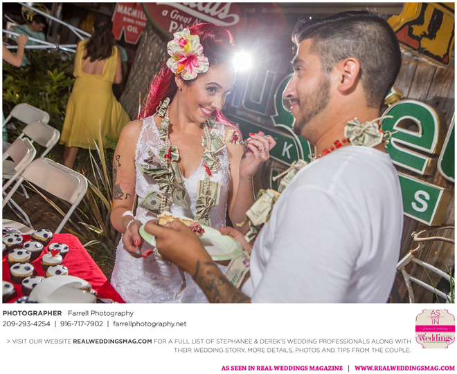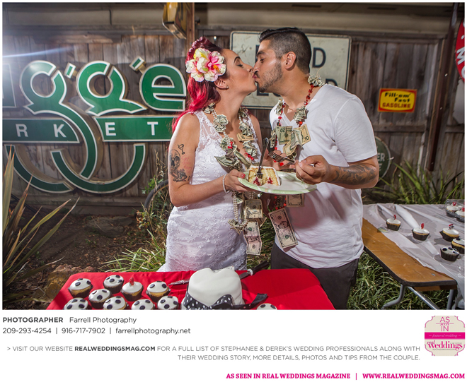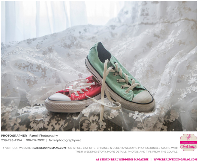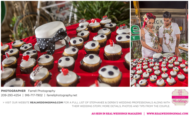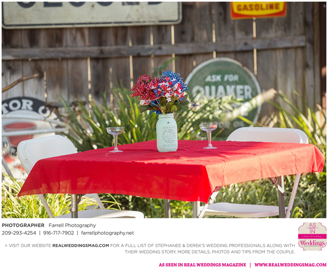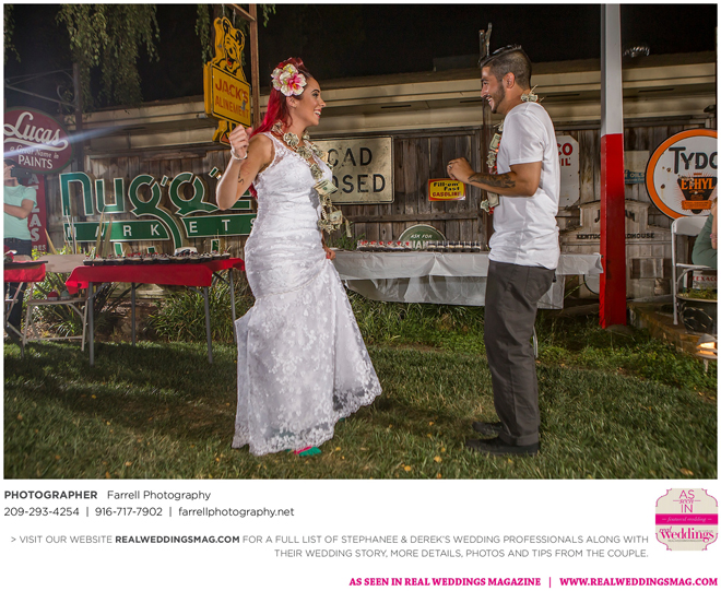 They tackled the big decisions first—venue, photographer, wedding party and theme. Finding a caterer proved difficult with more than a dozen companies backing out. In the end, they cooked all the food themselves with help from their families. “We had so many great ideas in mind that we wanted for the wedding, but had a lot of difficulties getting it done,” Derek says.
