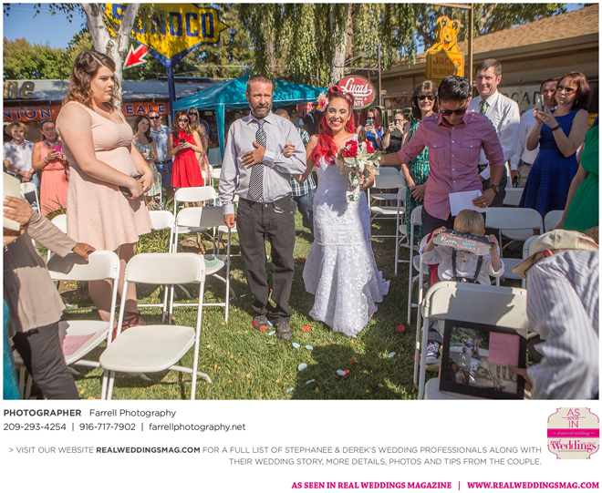 As the day arrived, they were overwhelmed with excitement. “I barely slept the night before; I was so excited to see Derek,” she says. “The nervousness didn’t hit until I was about to walk down the aisle. The only thing running through my mind was, ‘Please don’t fall!’ and I really hoped Derek loved my dress.”