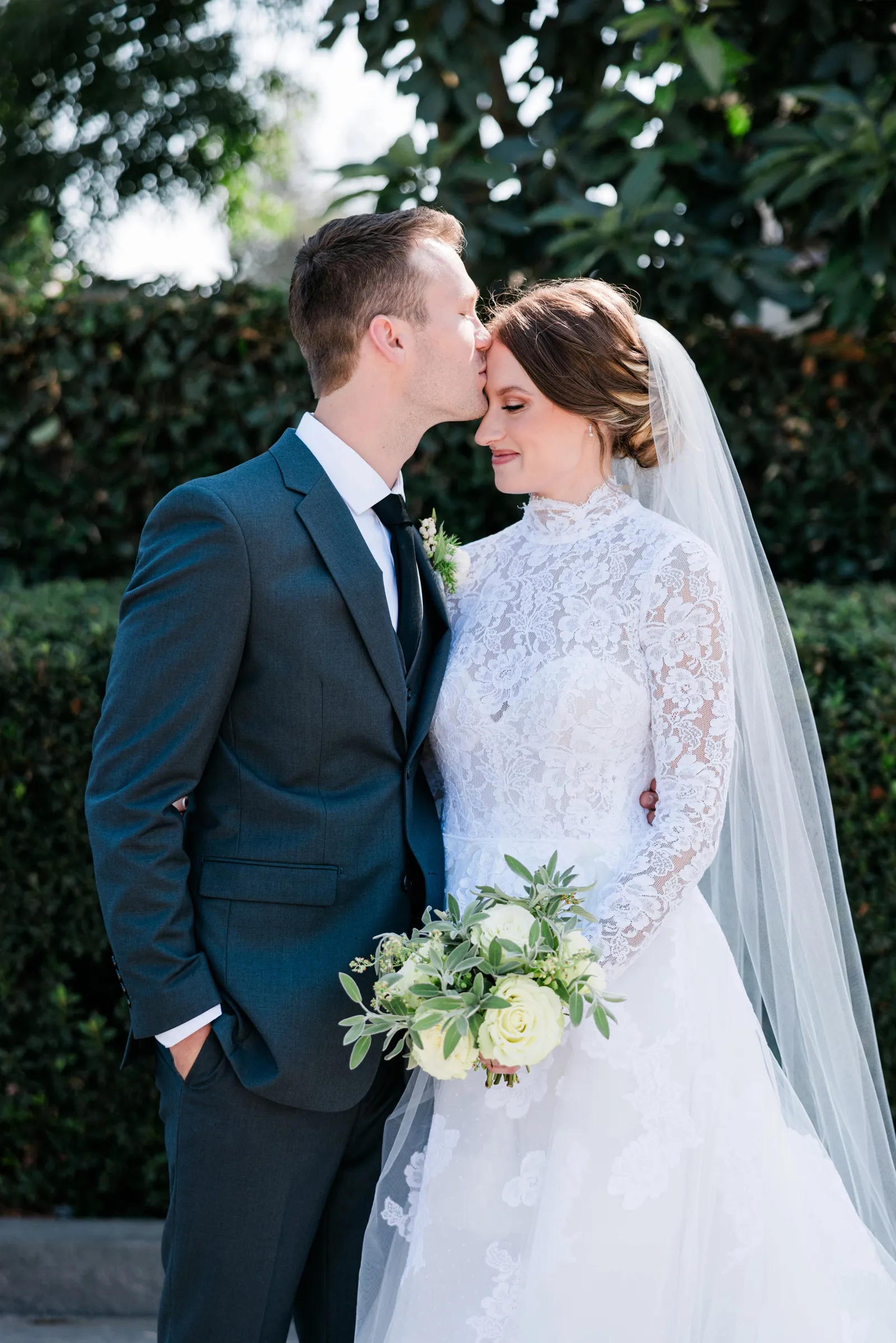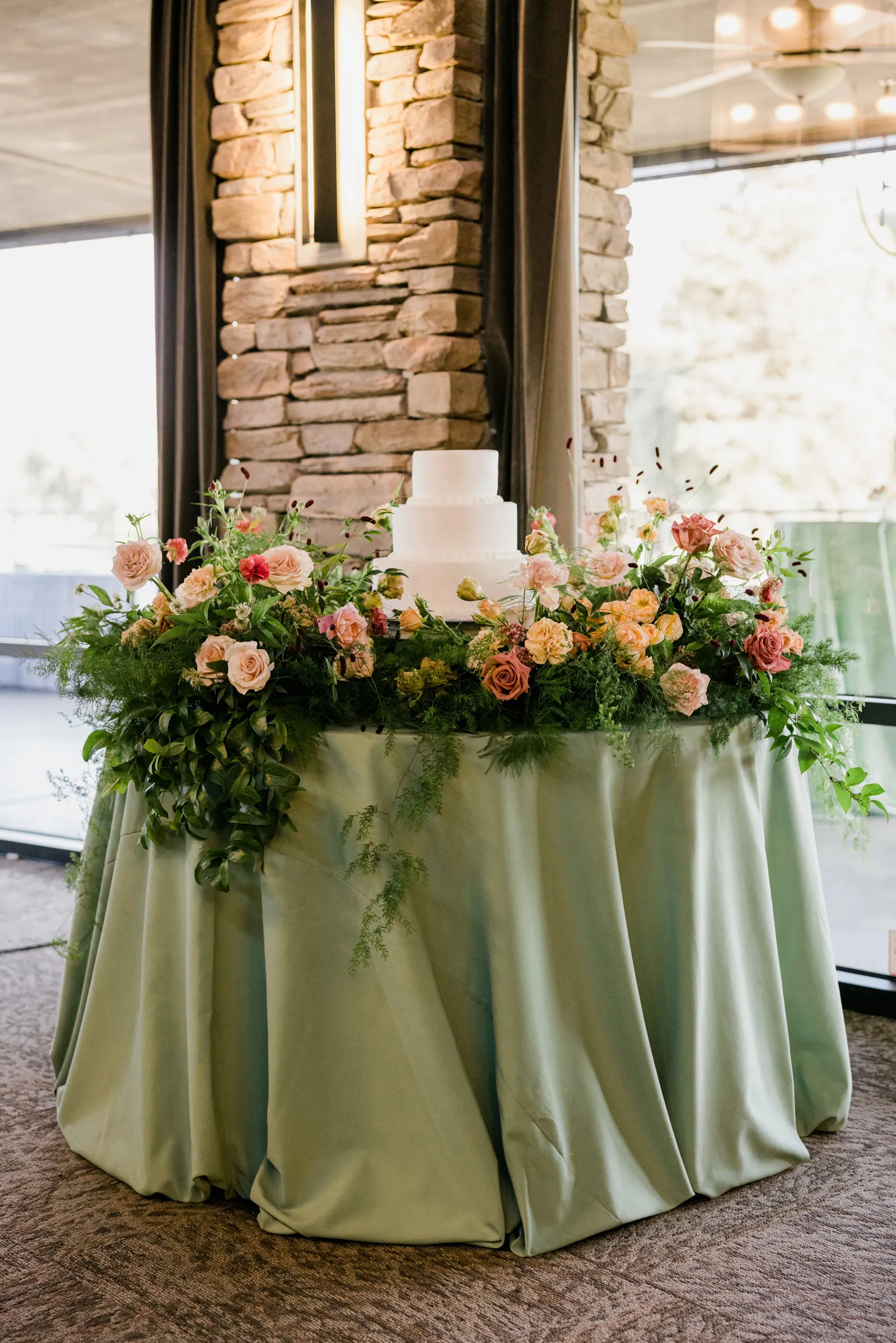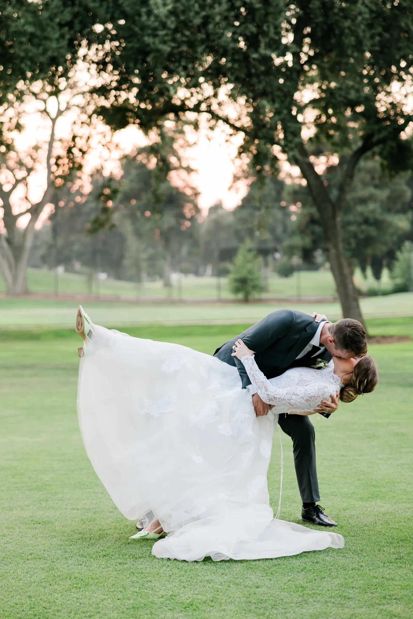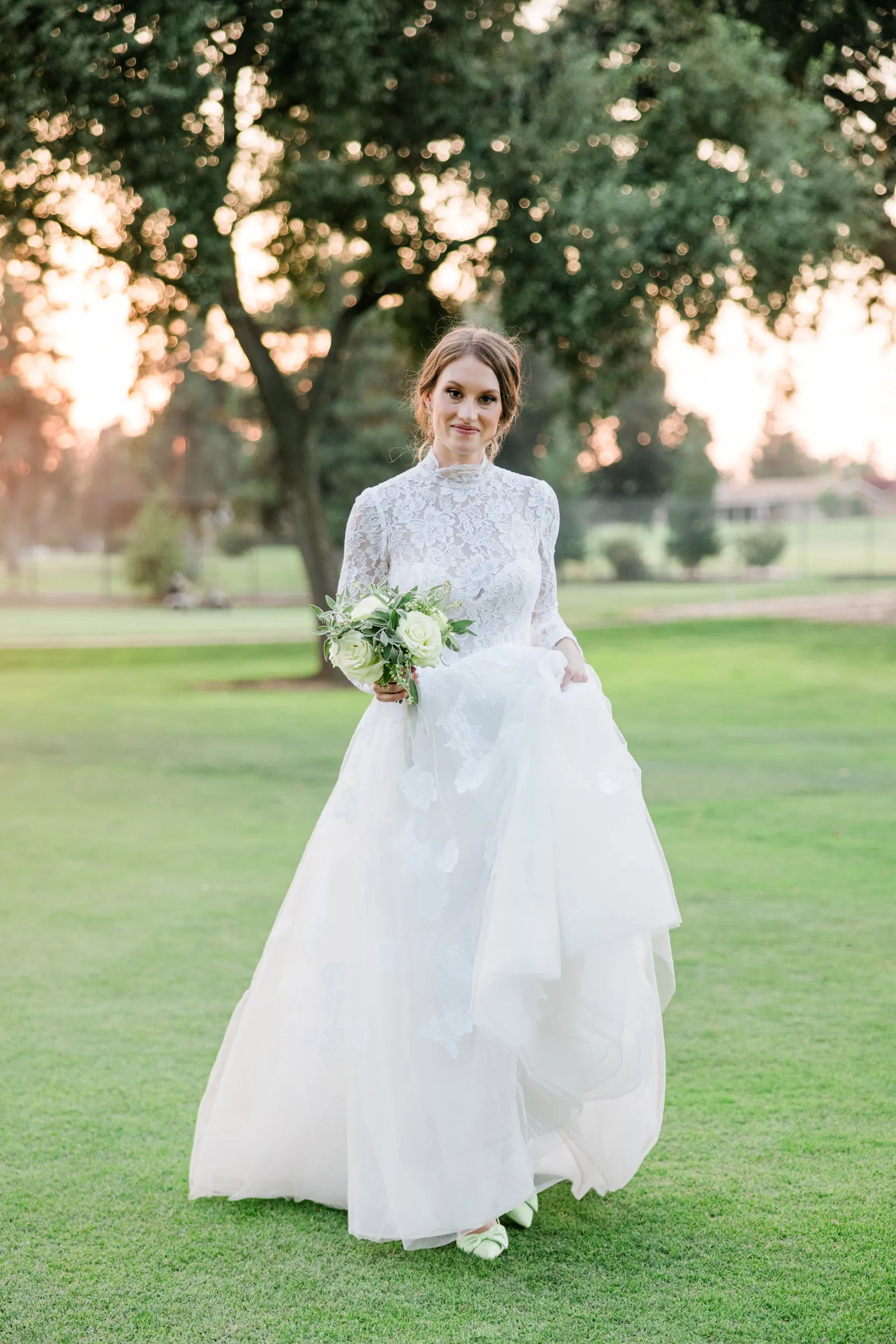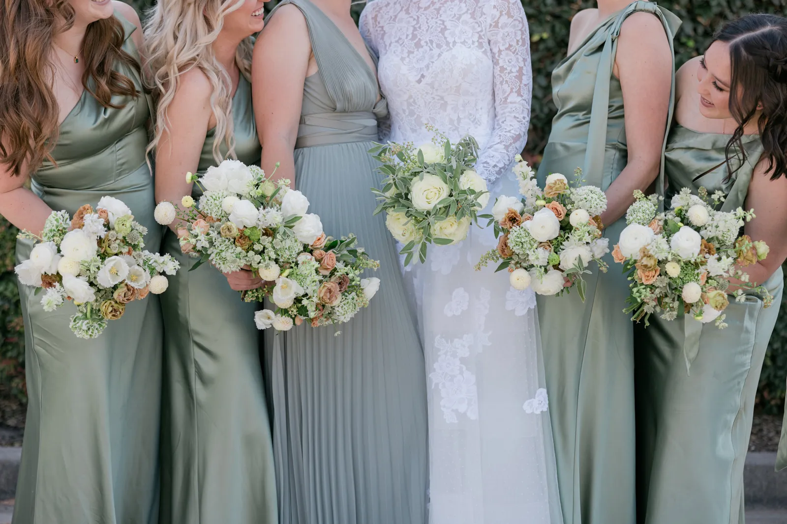 We knew that we wanted a traditional church ceremony, and we knew ahead of time that we wanted to use Garuda Blue for our live band. Also, I had a specific wedding dress style in mind (lace sleeves and a turtleneck), which is why I knew I found “the one” when I tried on my wedding gown at Miosa’s. I also wanted to incorporate green into the wedding as much as I could, (since that was the theme) and I loved how the bridesmaid dresses from Lulu’s turned out, as well as the green wedding shoes and the bridal bouquet which was created using green roses!
