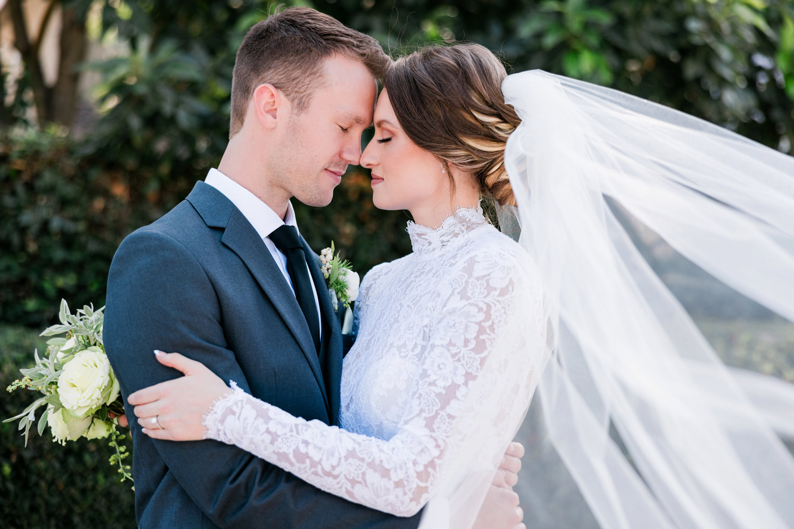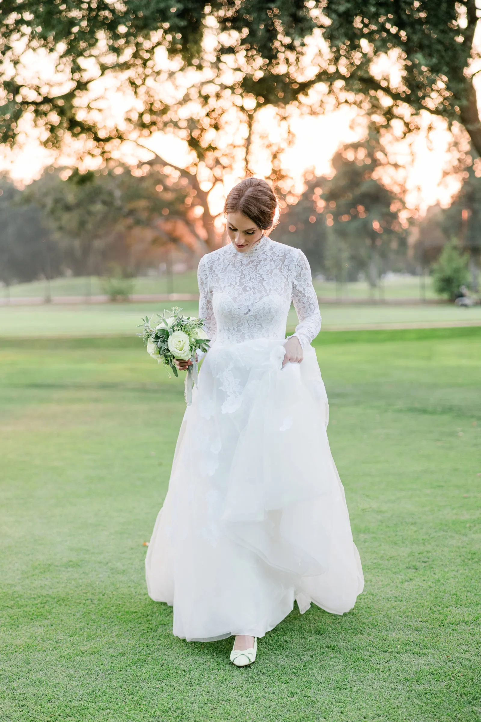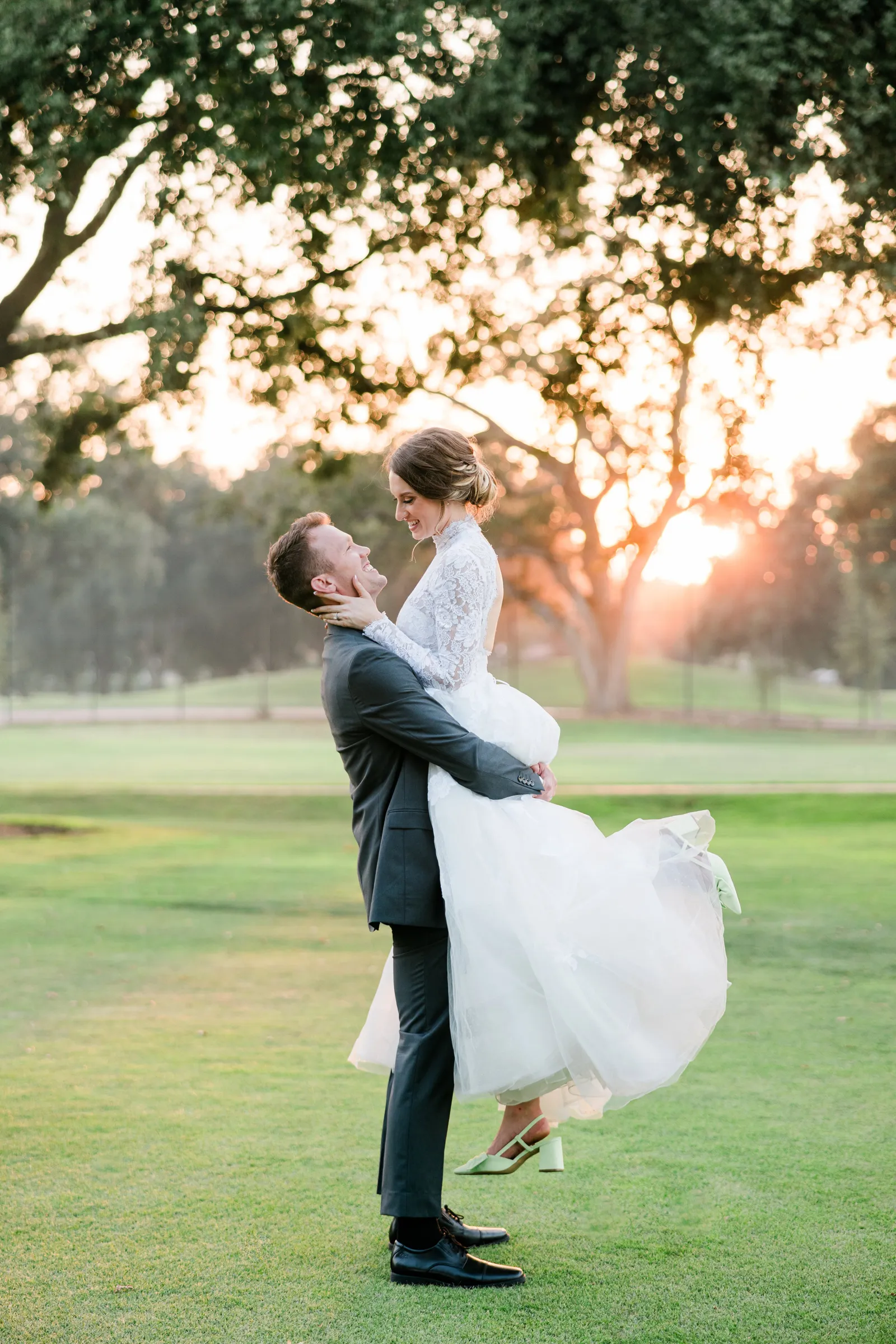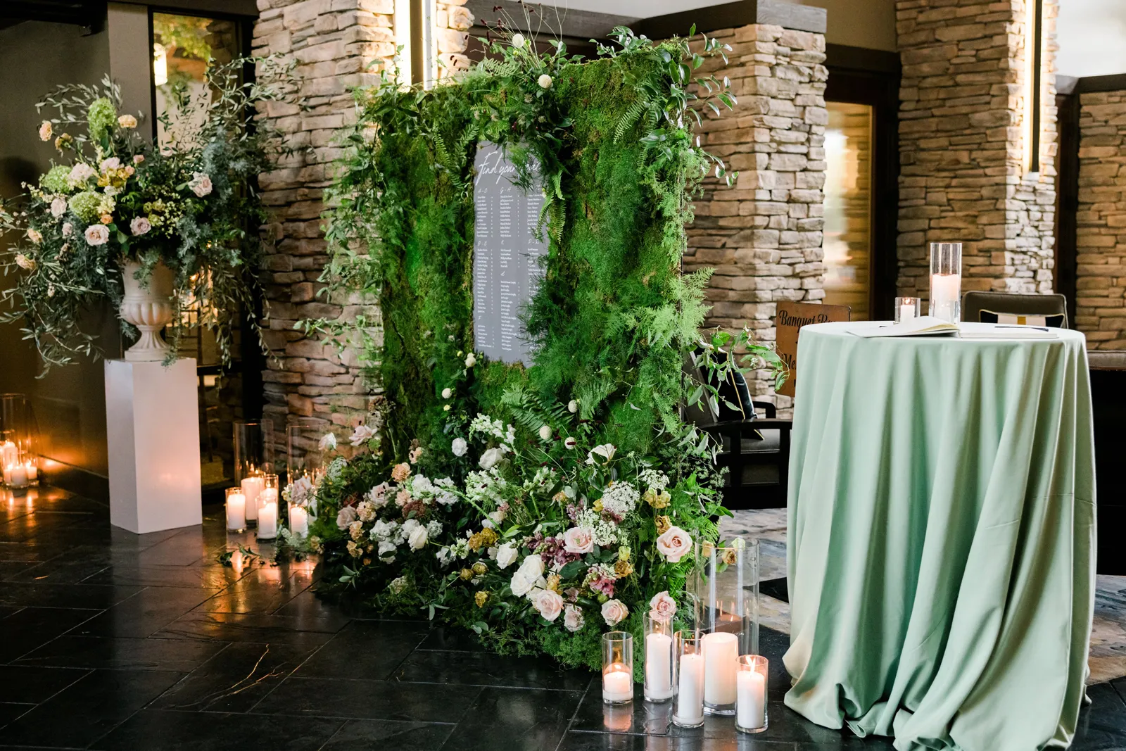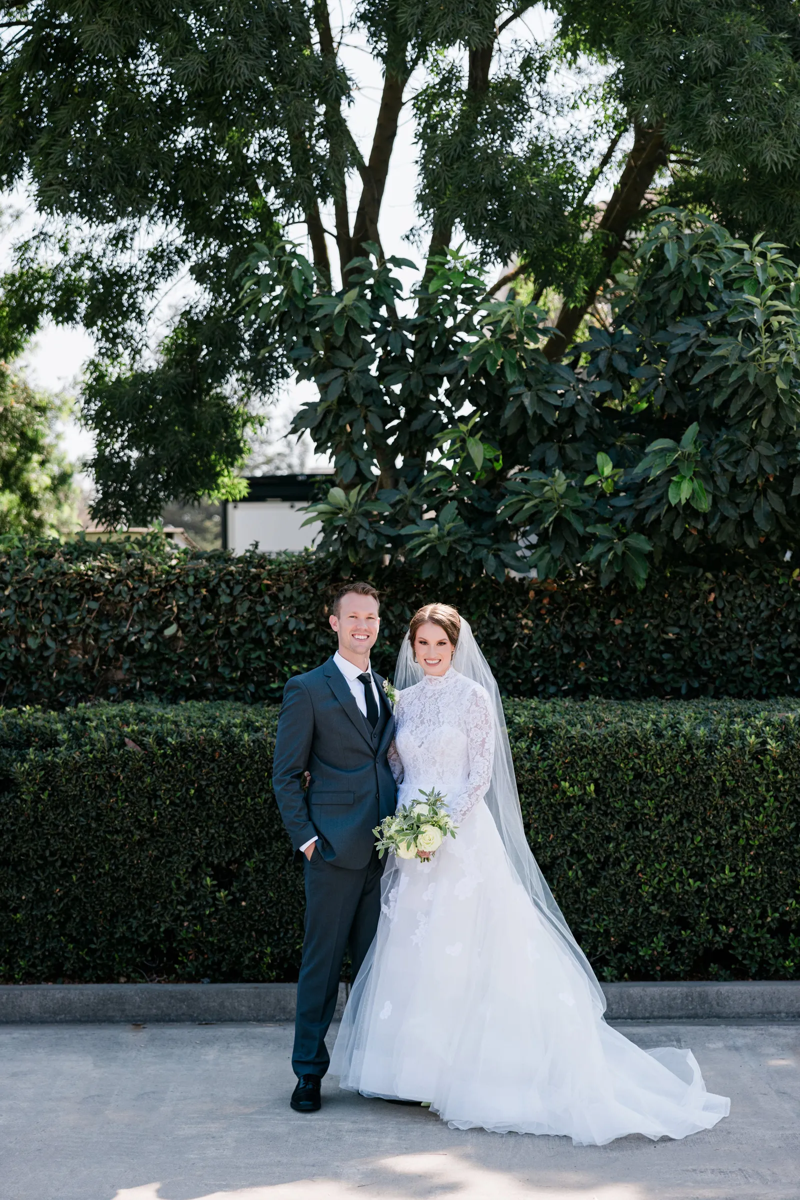 We knew that we wanted a traditional church ceremony, and we knew ahead of time that we wanted to use Garuda Blue for our live band. Also, I had a specific wedding dress style in mind (lace sleeves and a turtleneck), which is why I knew I found “the one” when I tried on my wedding gown at Miosa’s. I also wanted to incorporate green into the wedding as much as I could, (since that was the theme) and I loved how the bridesmaid dresses from Lulu’s turned out, as well as the green wedding shoes and the bridal bouquet which was created using green roses!