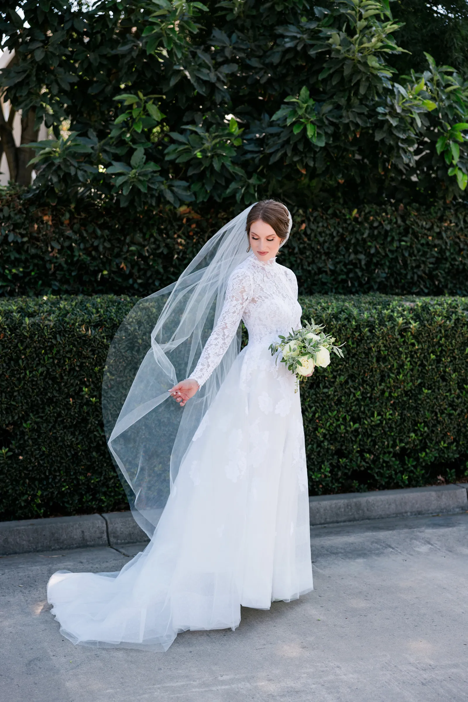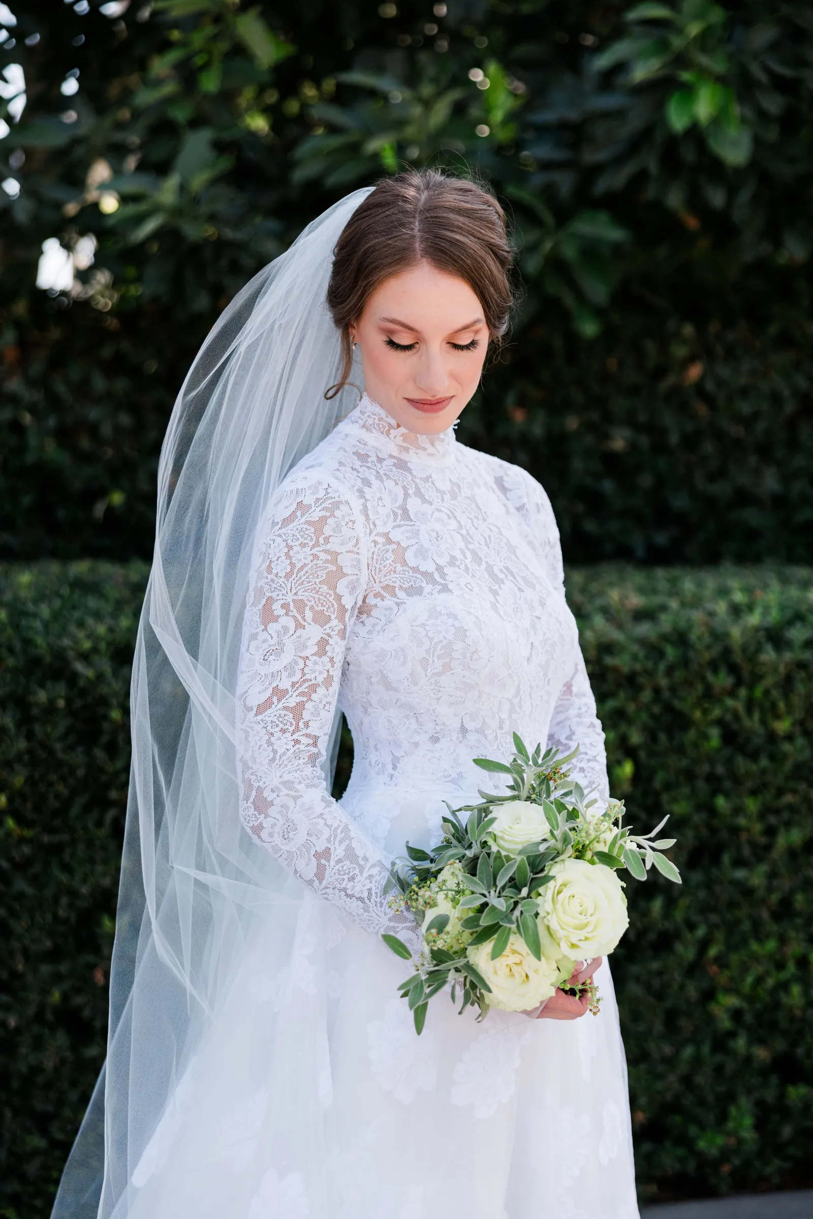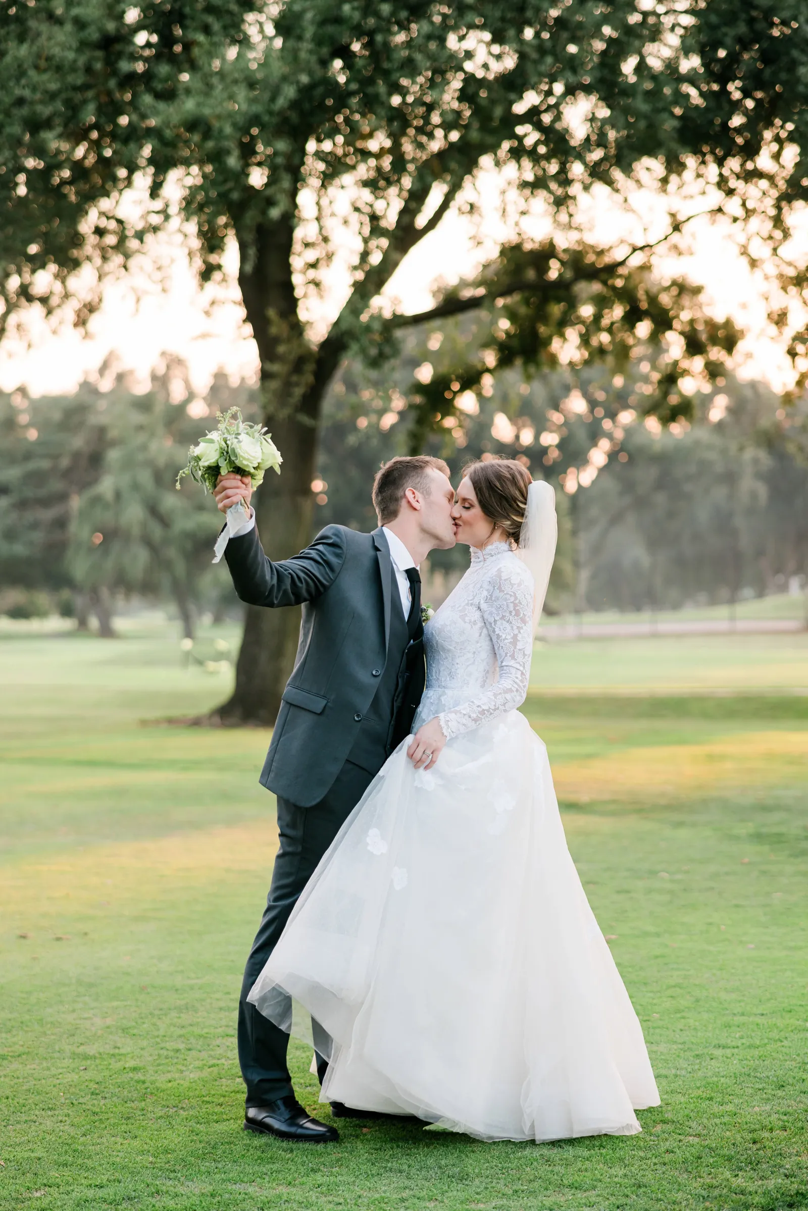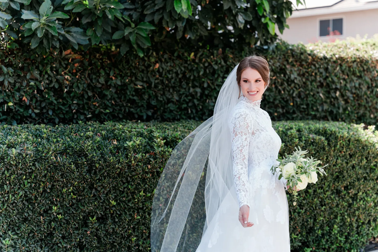 We knew that we wanted a traditional church ceremony, and we knew ahead of time that we wanted to use Garuda Blue for our live band. Also, I had a specific wedding dress style in mind (lace sleeves and a turtleneck), which is why I knew I found “the one” when I tried on my wedding gown at Miosa’s. I also wanted to incorporate green into the wedding as much as I could, (since that was the theme) and I loved how the bridesmaid dresses from Lulu’s turned out, as well as the green wedding shoes and the bridal bouquet which was created using green roses!