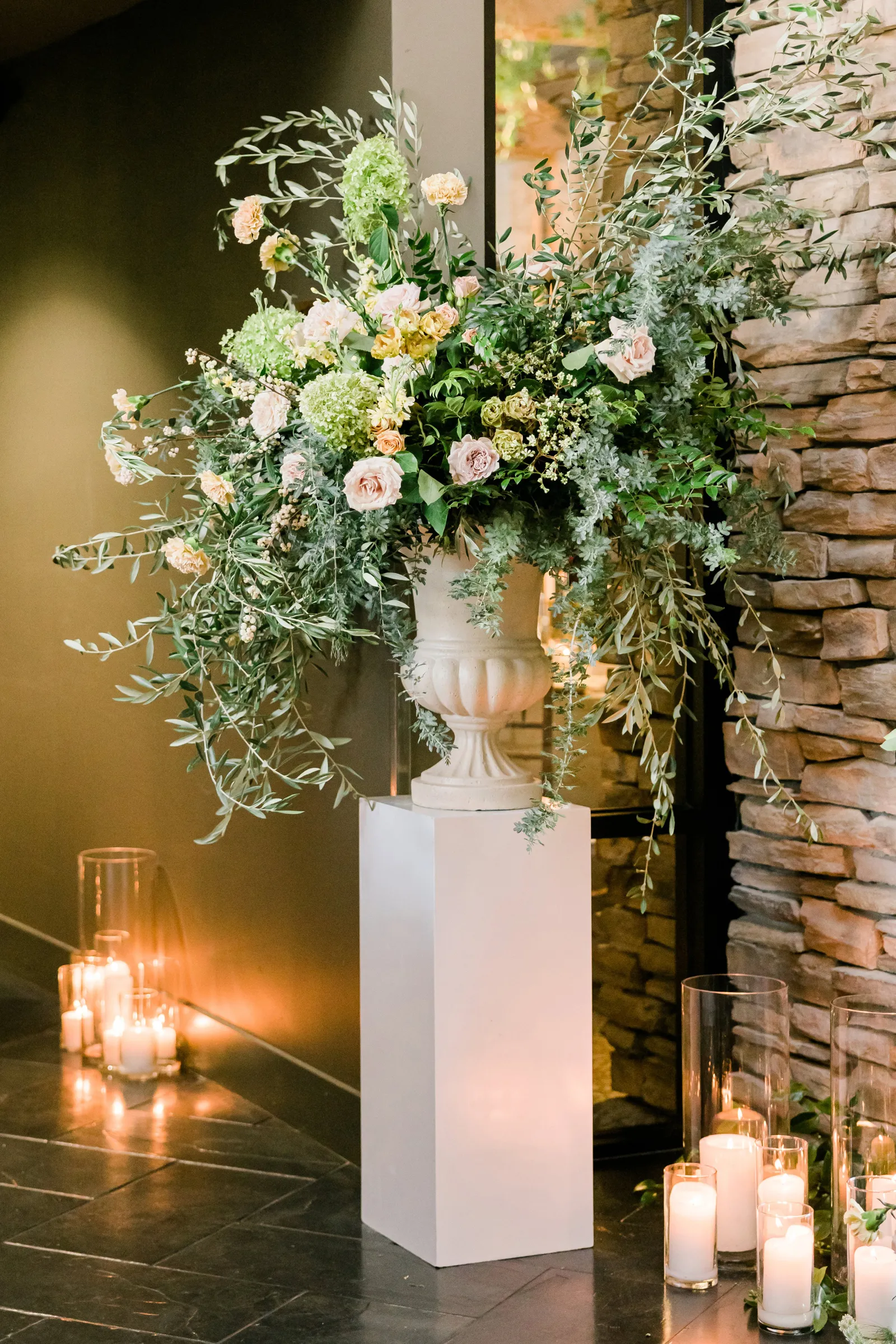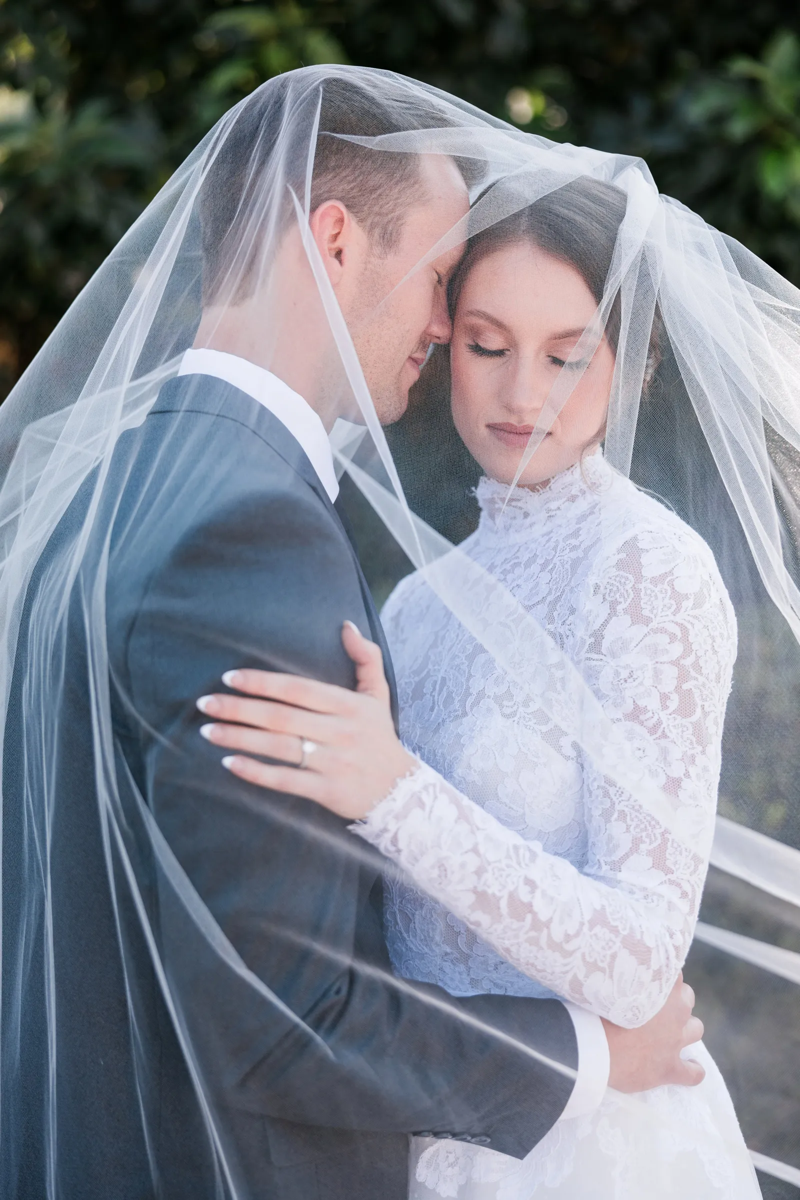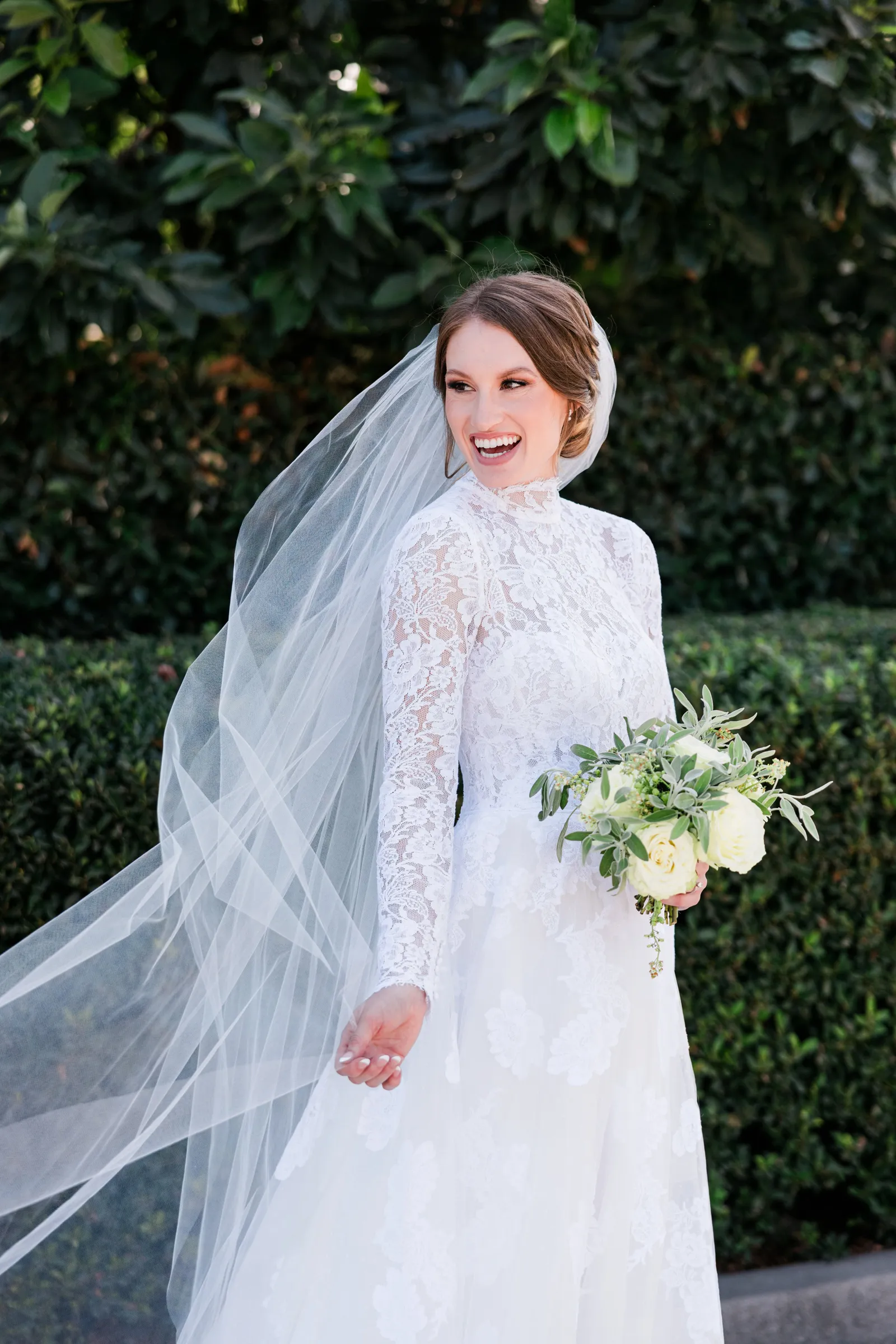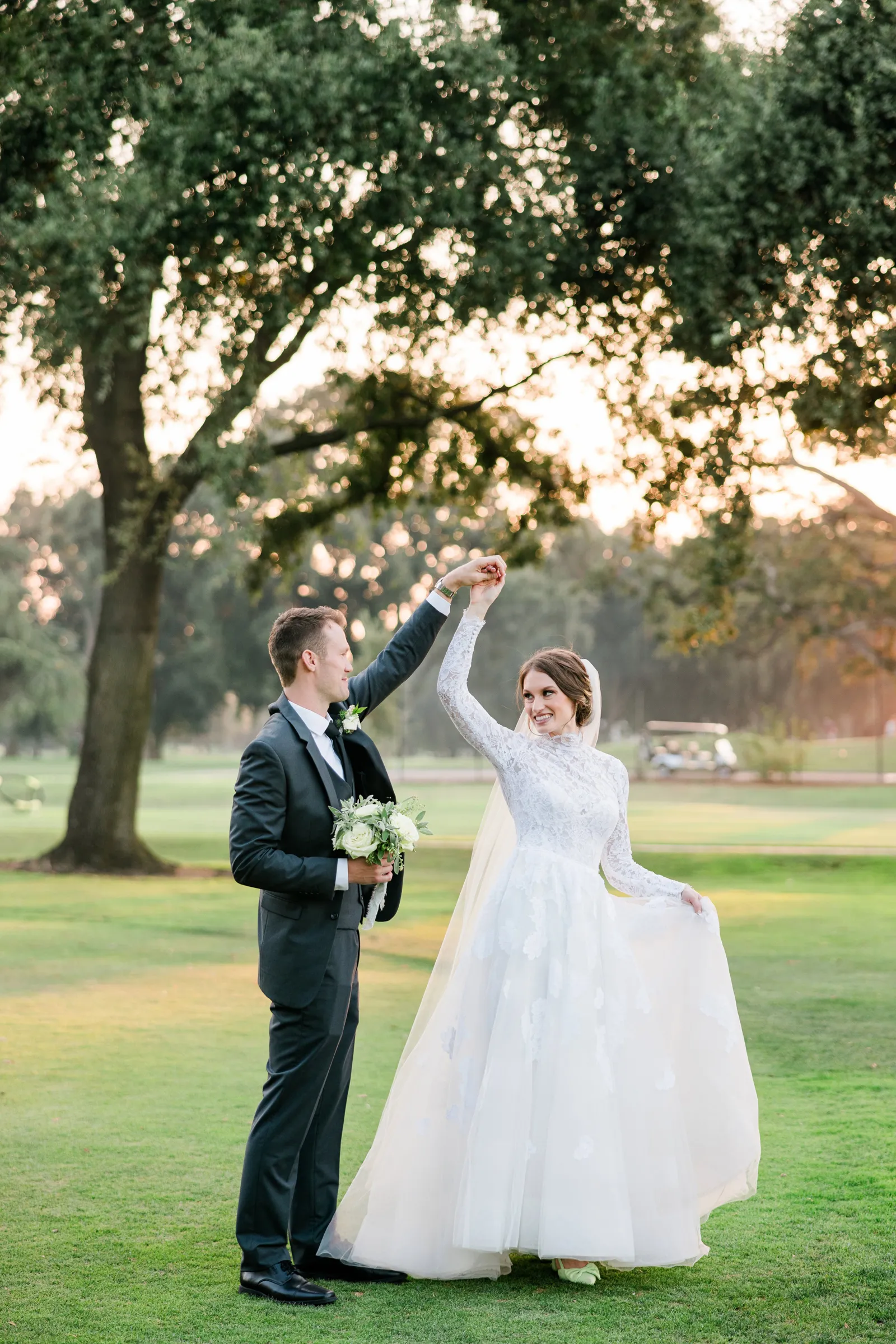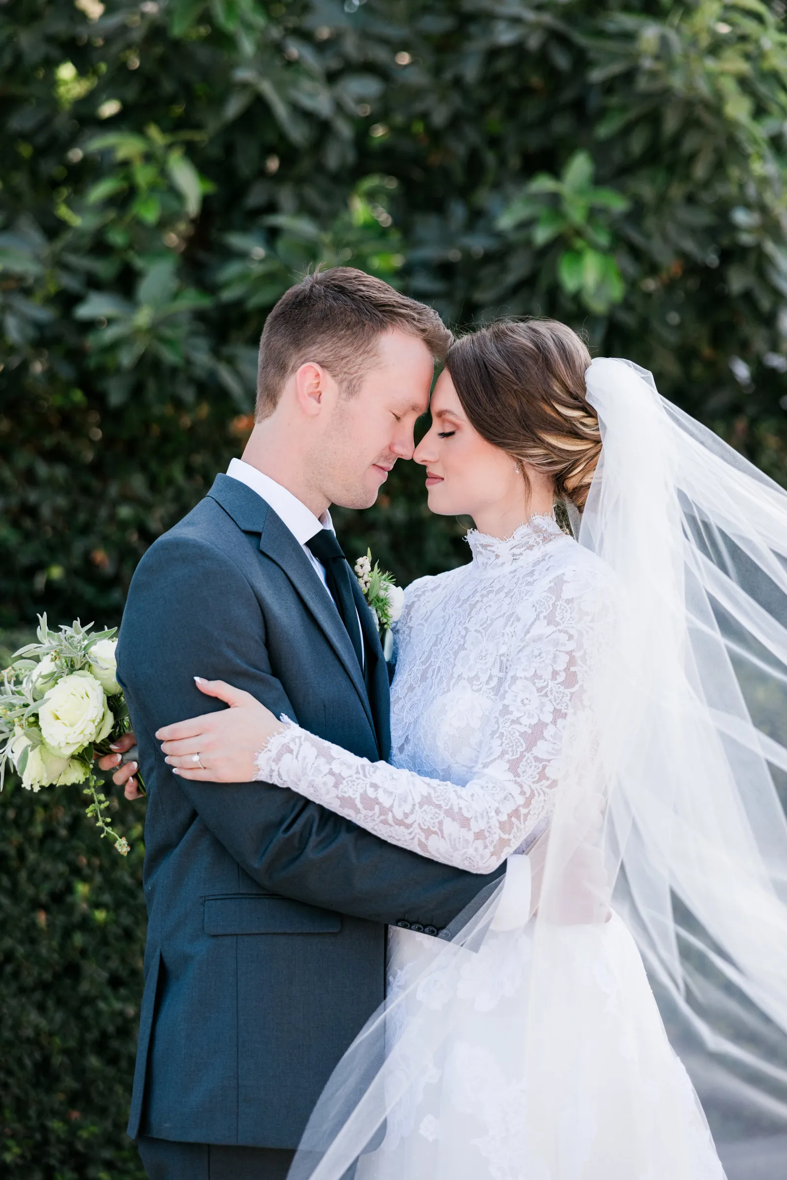 We knew that we wanted a traditional church ceremony, and we knew ahead of time that we wanted to use Garuda Blue for our live band. Also, I had a specific wedding dress style in mind (lace sleeves and a turtleneck), which is why I knew I found “the one” when I tried on my wedding gown at Miosa’s. I also wanted to incorporate green into the wedding as much as I could, (since that was the theme) and I loved how the bridesmaid dresses from Lulu’s turned out, as well as the green wedding shoes and the bridal bouquet which was created using green roses!