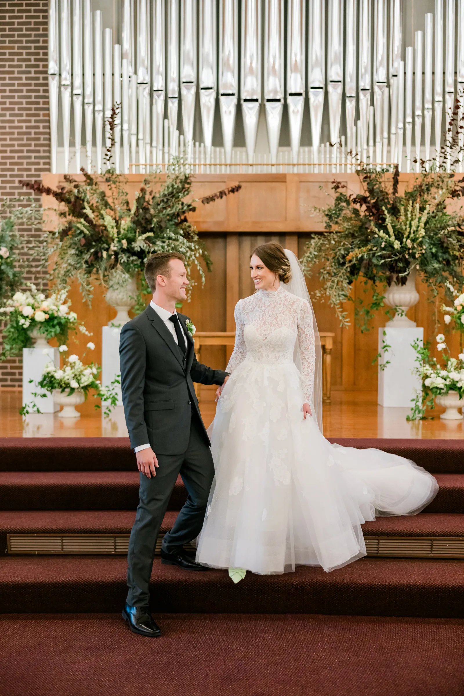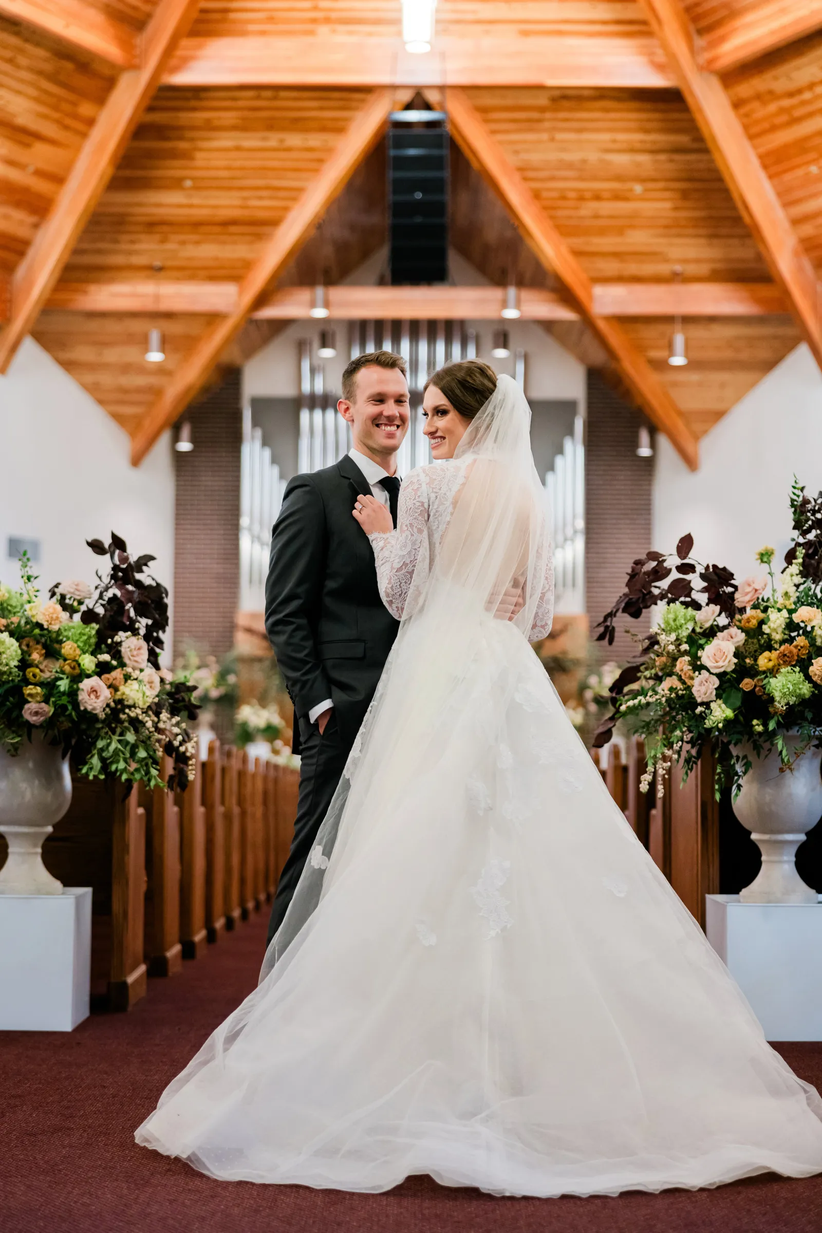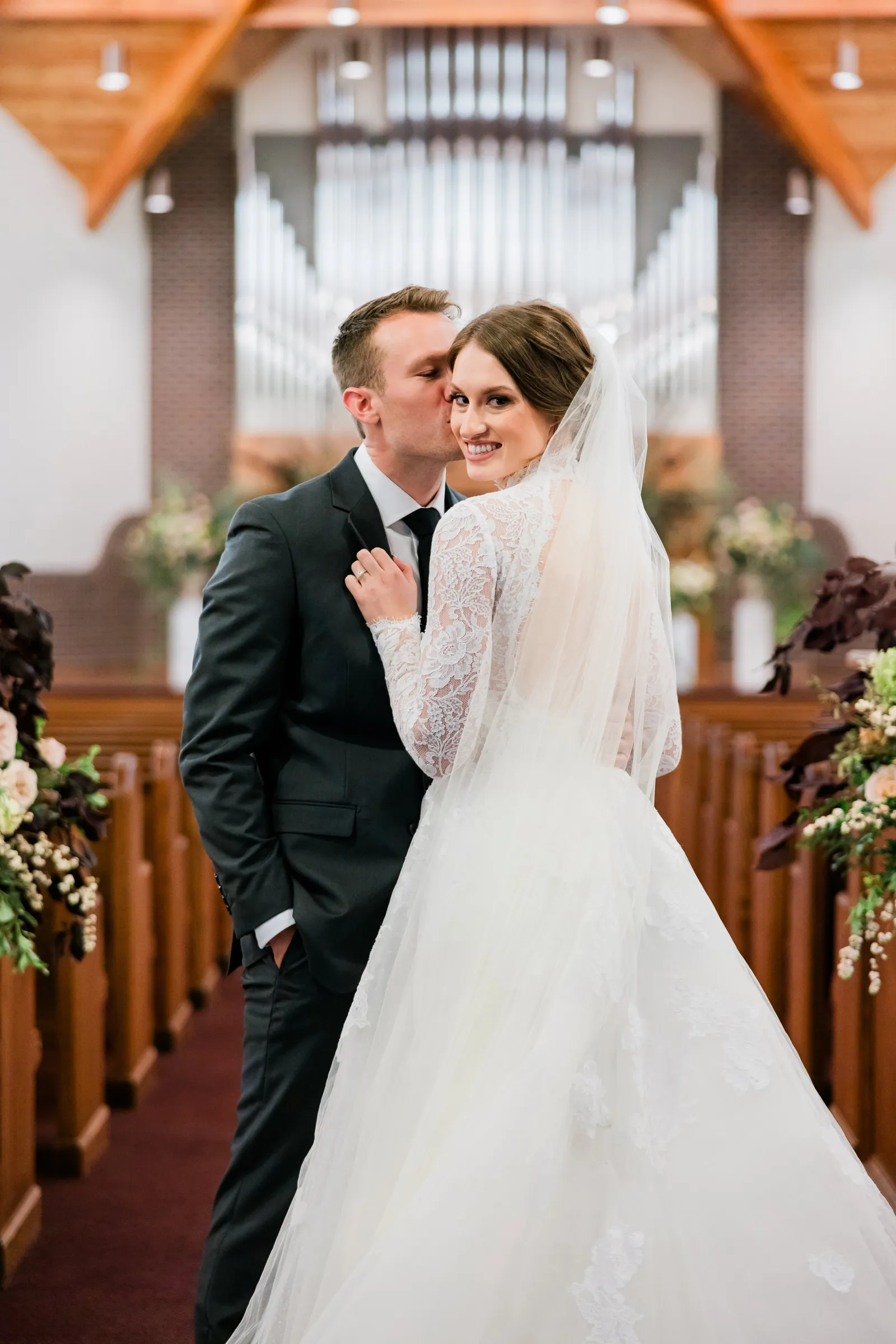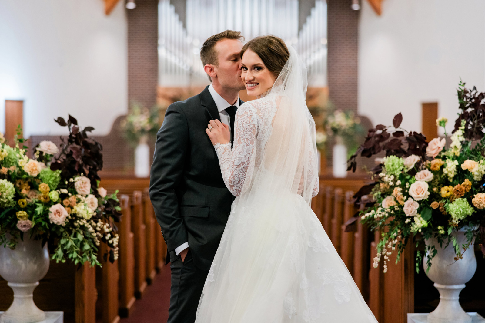 Our wedding ceremony was a traditional setting. We had the ceremony in our local church, our pastor officiated, and our church organist accompanied the ceremony. We very much appreciated the ceremony message that our pastor gave, which was based on Ephesians 5. The message spoke of the covenant of marriage and the husband and wife’s complimentary roles. For music, we chose “Wedding Processional” from Sound of Music as the bridal processional song choice, and as our recessional song choice, we chose Rondo in G, which was a fun, classic organ piece that we loved! We lit a unity candle during the ceremony as well, which we thought was a special symbolic moment for us!