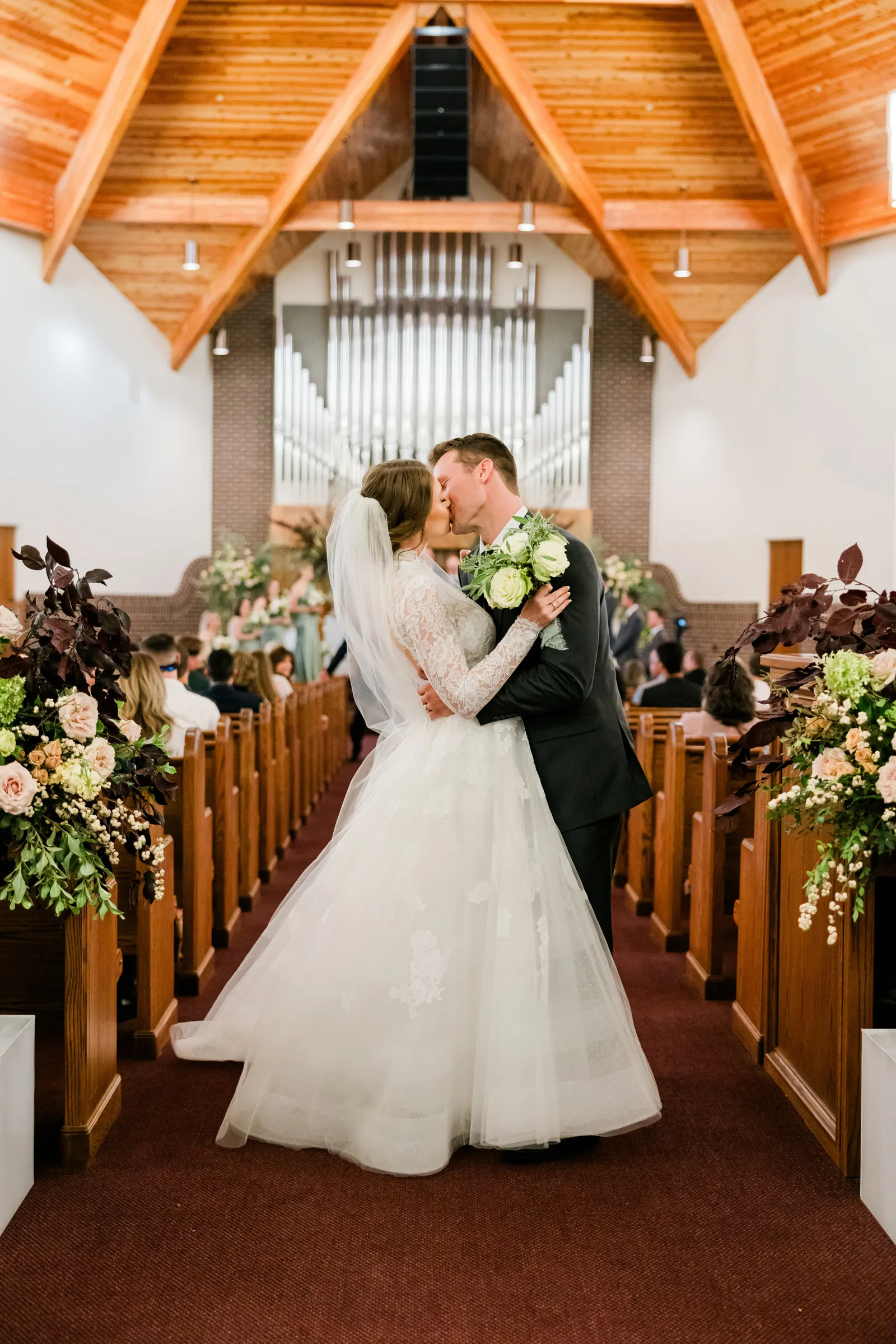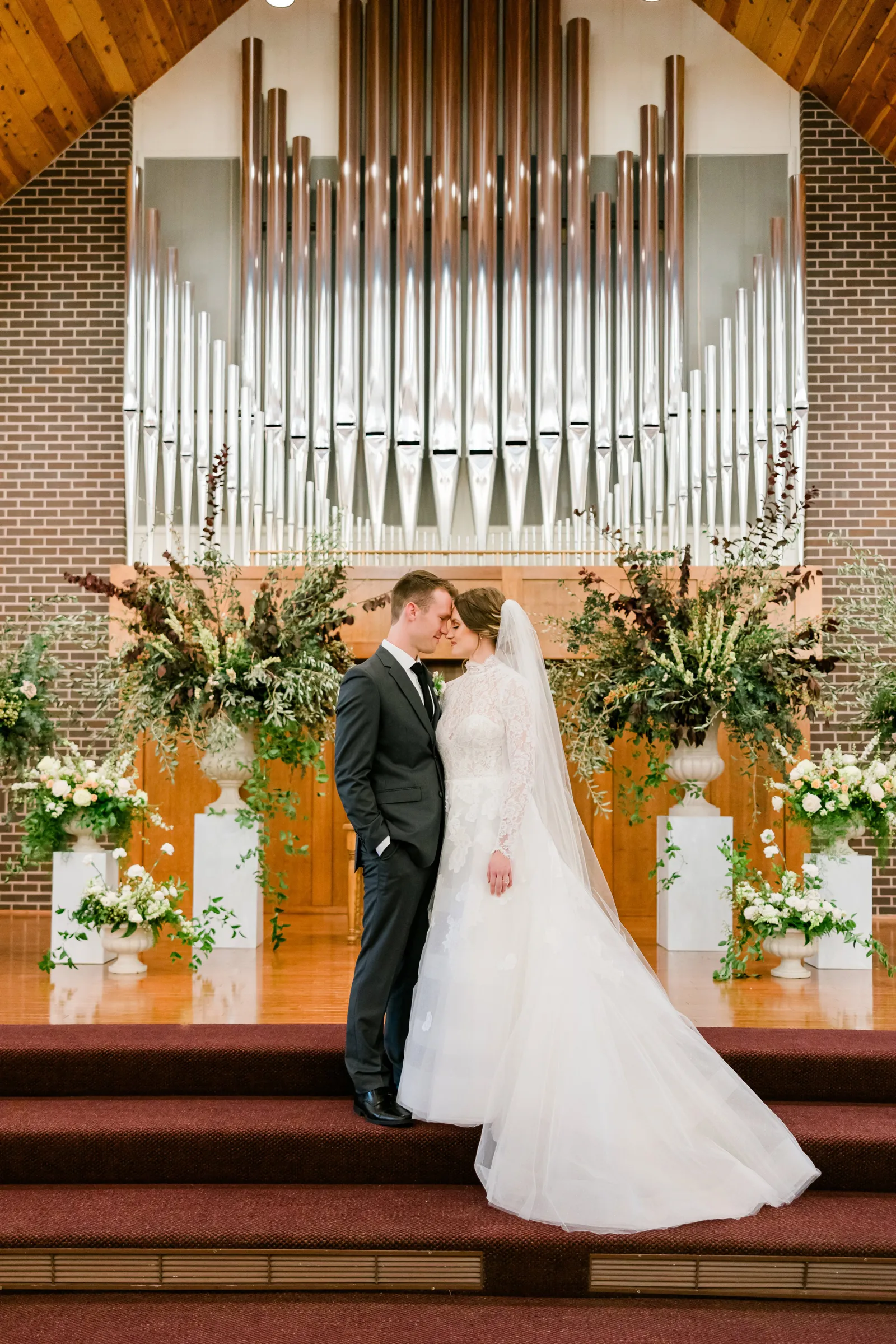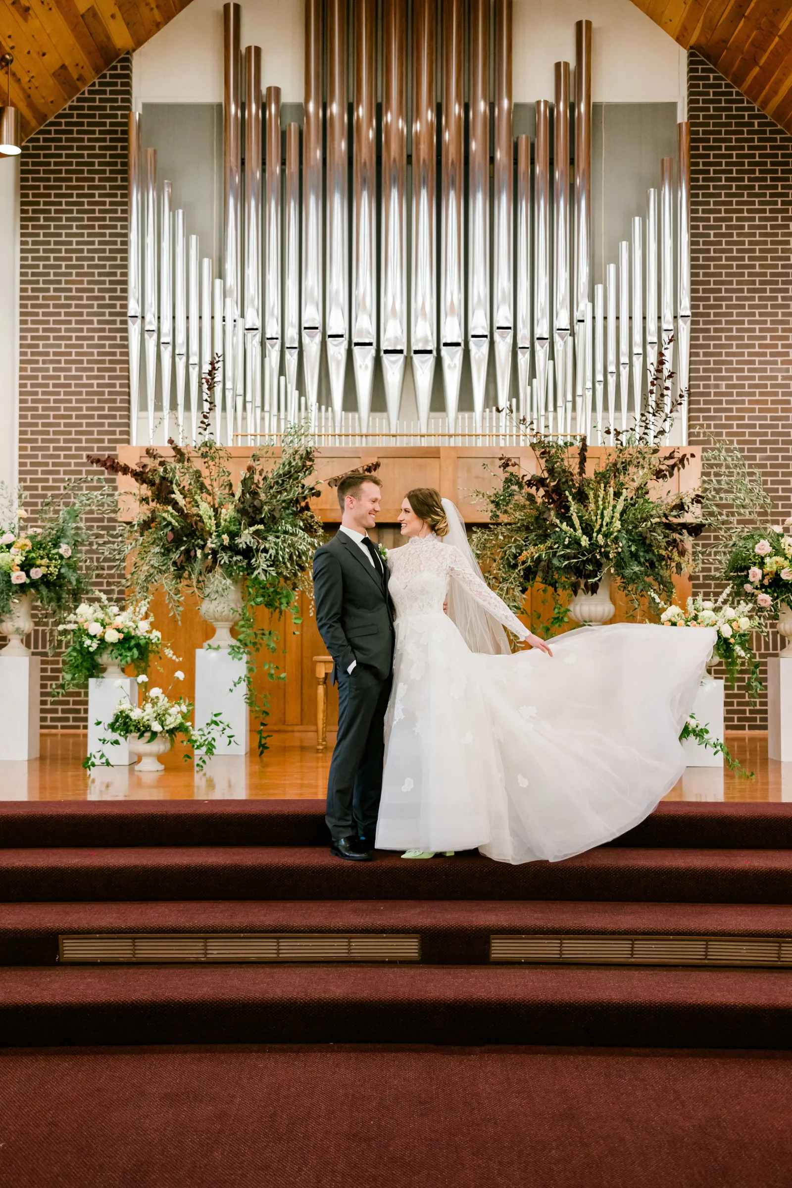 Our wedding ceremony was a traditional setting. We had the ceremony in our local church, our pastor officiated, and our church organist accompanied the ceremony. We very much appreciated the ceremony message that our pastor gave, which was based on Ephesians 5. The message spoke of the covenant of marriage and the husband and wife’s complimentary roles. For music, we chose “Wedding Processional” from Sound of Music as the bridal processional song choice, and as our recessional song choice, we chose Rondo in G, which was a fun, classic organ piece that we loved! We lit a unity candle during the ceremony as well, which we thought was a special symbolic moment for us!