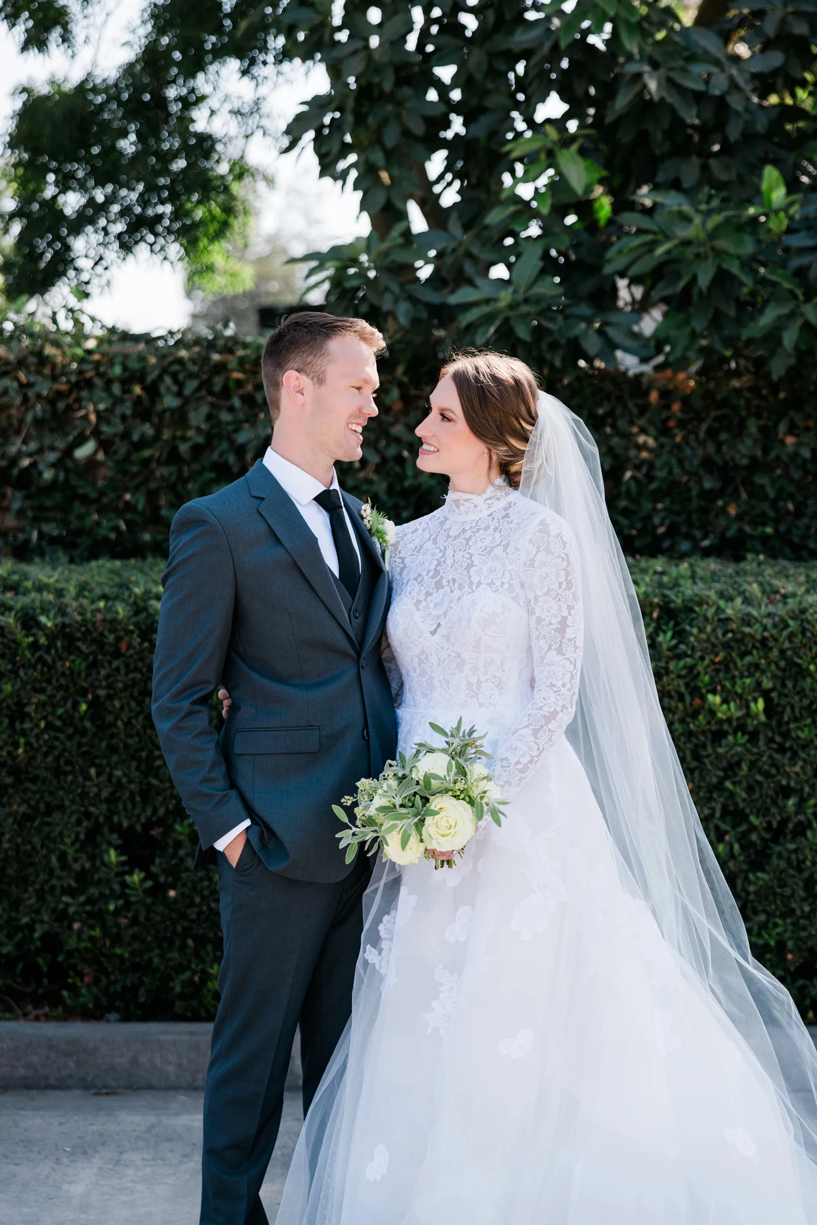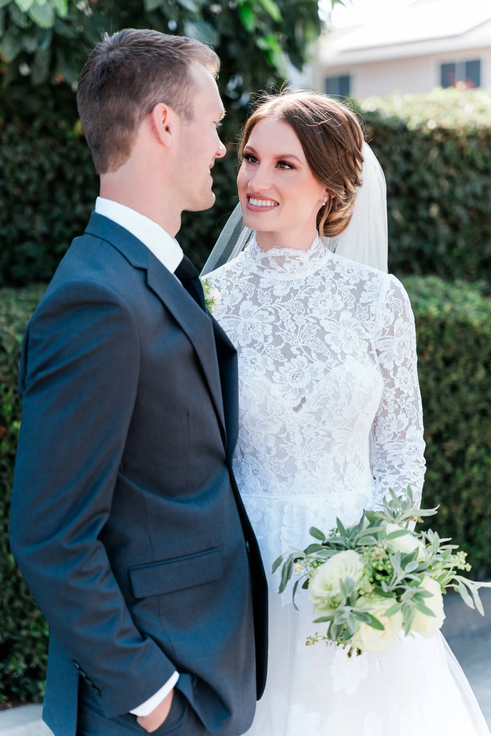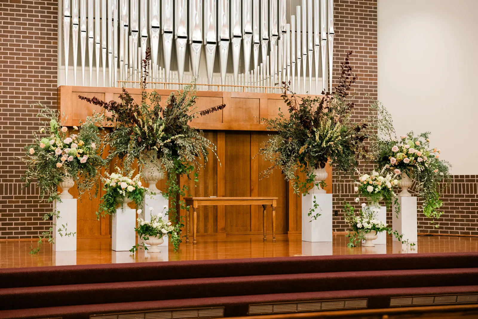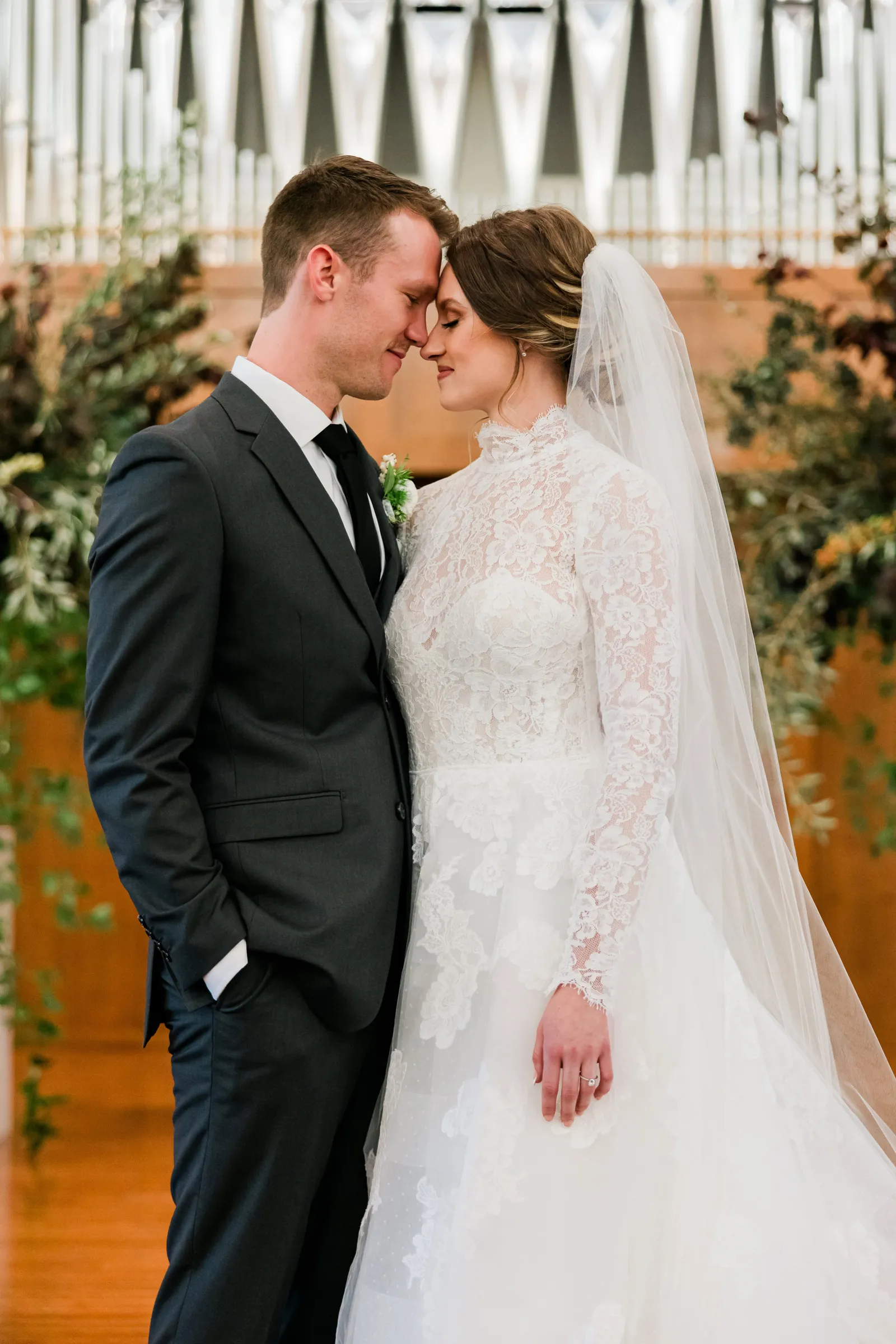Our wedding ceremony was a traditional setting. We had the ceremony in our local church, our pastor officiated, and our church organist accompanied the ceremony. We very much appreciated the ceremony message that our pastor gave, which was based on Ephesians 5. The message spoke of the covenant of marriage and the husband and wife’s complimentary roles. For music, we chose “Wedding Processional” from Sound of Music as the bridal processional song choice, and as our recessional song choice, we chose Rondo in G, which was a fun, classic organ piece that we loved! We lit a unity candle during the ceremony as well, which we thought was a special symbolic moment for us!